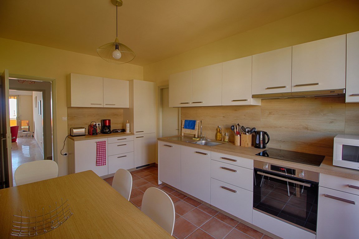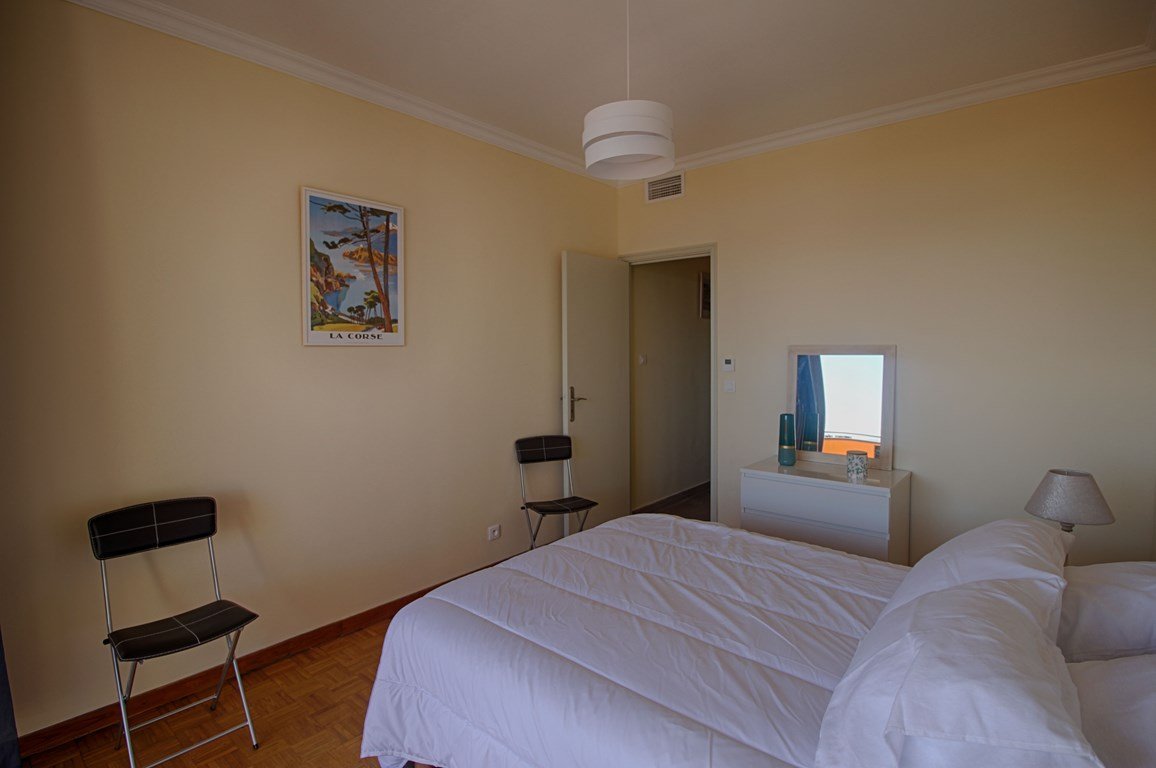Ajaccio (2A) Apartment - approximately 100m2 - up to 6 people Located in the very center of Ajaccio, close to the market, which is held every day of the week, the Maison Bonaparte, the old port and a few steps from the Saint François beach, the apartment offered is ideal for spending a very pleasant holiday in Ajaccio. The apartment is composed as follows: an entrance, a fully equipped kitchen with adjoining pantry opening onto a terrace, a living-dining room opening onto a shaded terrace giving you a very beautiful sea view, three bedrooms, a bathroom. water, a bathroom and a separate WC. - Sleeps 6: 2 double beds 140 and 2 beds 90 Fully air-conditioned apartment: each bedroom and the living room The plus of this apartment: a shaded terrace offering a lovely sea view, in a quiet residential residence in the city center, and a ideal location allowing you to do everything without the hassle of a car. IMPORTANT INFORMATION: end of stay cleaning, linen and towels are included in the price. Only kitchen towels are not provided.