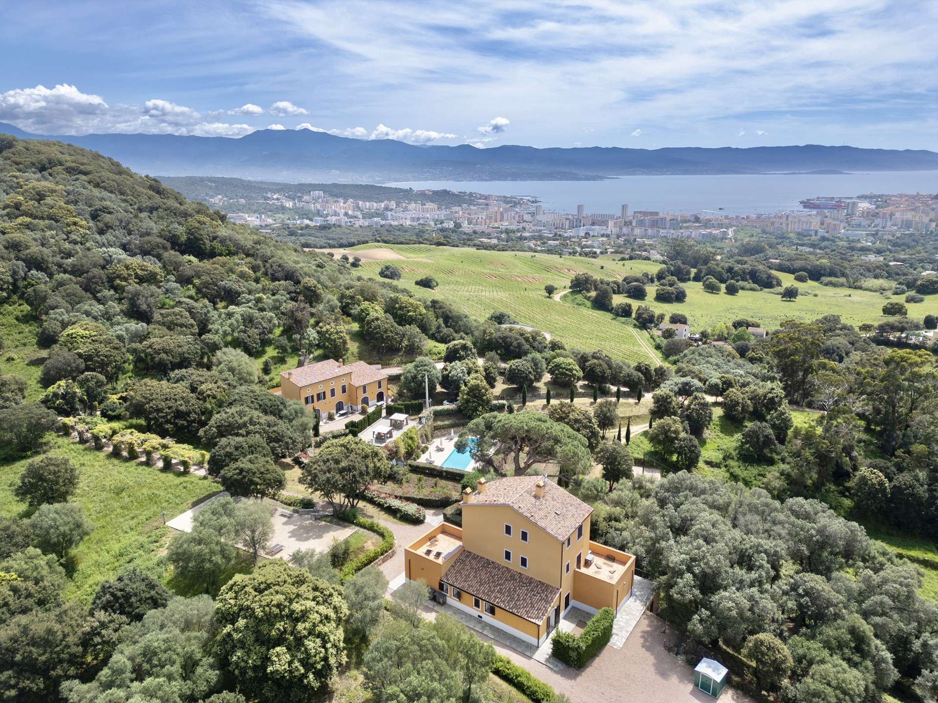 Very nice apartment - 84 m² - up to 6 people. On the heights of Ajaccio, ideally located in the calm of a dead end, to radiate on all the tourist sites of southern Corsica, between city and countryside. The apartment is composed as follows: on one level: a living room, an open fitted kitchen and a separate WC, on the 1st floor: a bedroom and a shower room and on the 2nd floor two bedrooms (one of which has two double beds). 90) and a bathroom with WC. The advantage of this apartment: you will also benefit from a pleasant partly shaded private terrace, beautiful green spaces grouping relaxation areas, reading corner, and also a very beautiful secure swimming pool open from April 1 to October 31, between 9 a.m. and 7 p.m. IMPORTANT INFORMATION: end of stay cleaning, bed linen and towels are included in the price. Only kitchen towels are not provided.