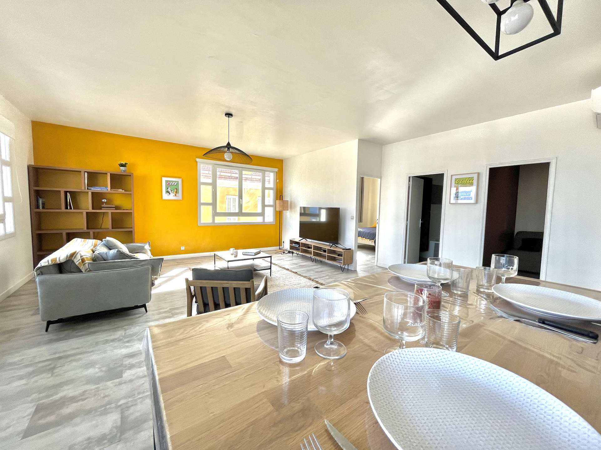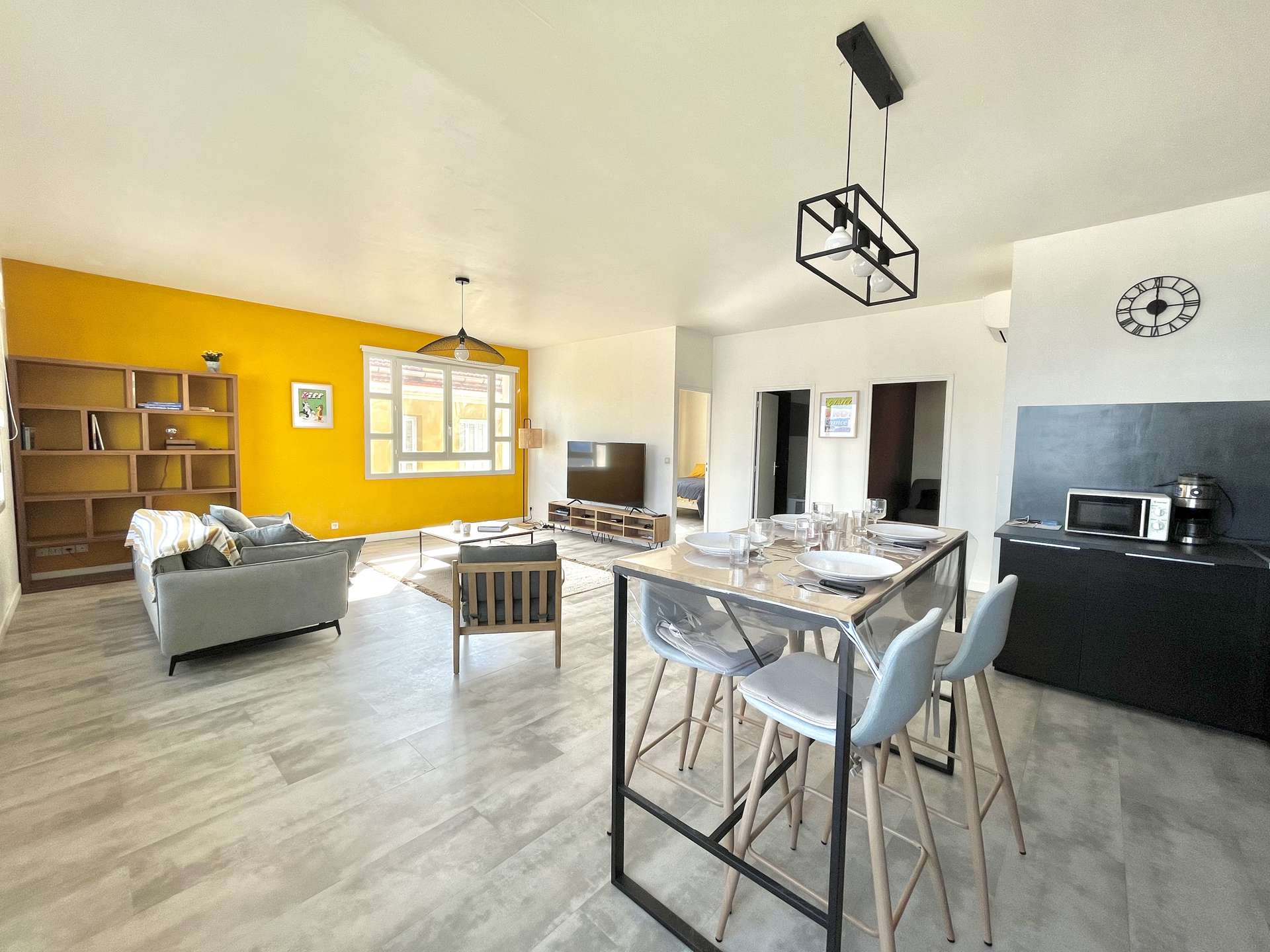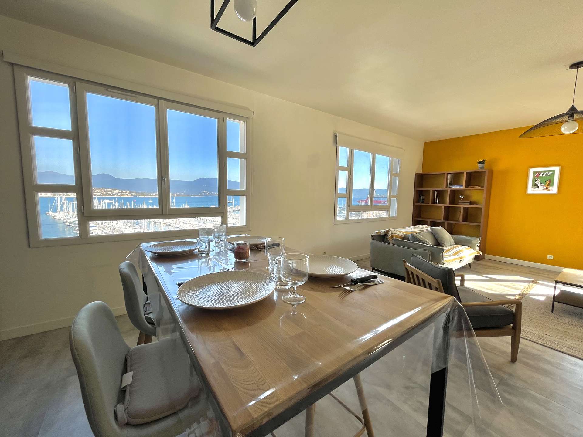Very nice apartment - approximately 75m2 - 4 people Also close to the most beautiful beaches on the route des Sanguinaires, this apartment has a very nice kitchen open to the air-conditioned living / dining room, two bedrooms, a bathroom bathroom and a separate toilet. 4 beds: 1 double bed in 140, and 1 BZ in 120. Equipment: internet - flat screen TV - air conditioning in the day part. The advantage of this apartment: its location on the main artery of downtown Ajaccio. IMPORTANT INFORMATION: end of stay cleaning, linen and towels are included in the price. Only kitchen towels are not provided.