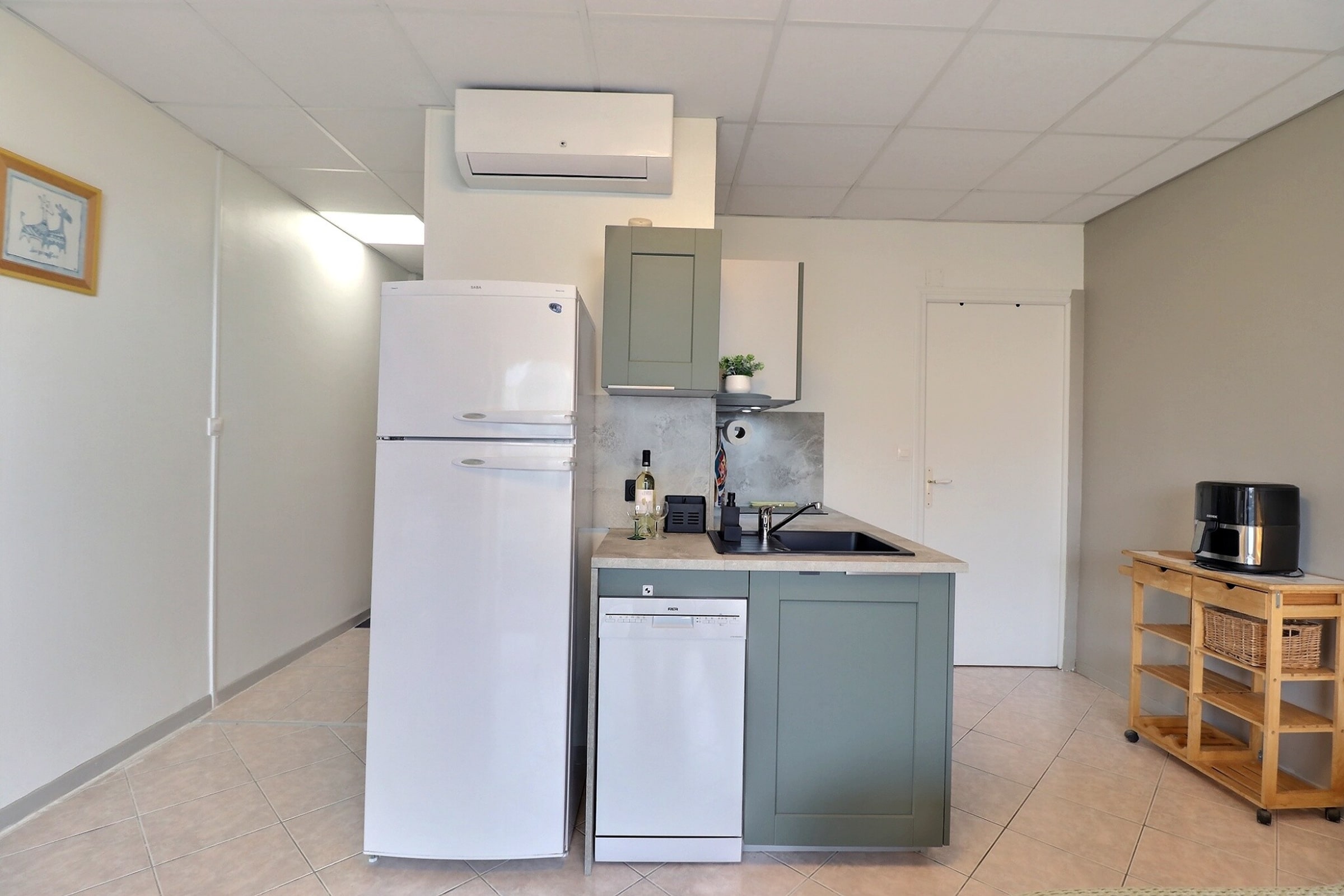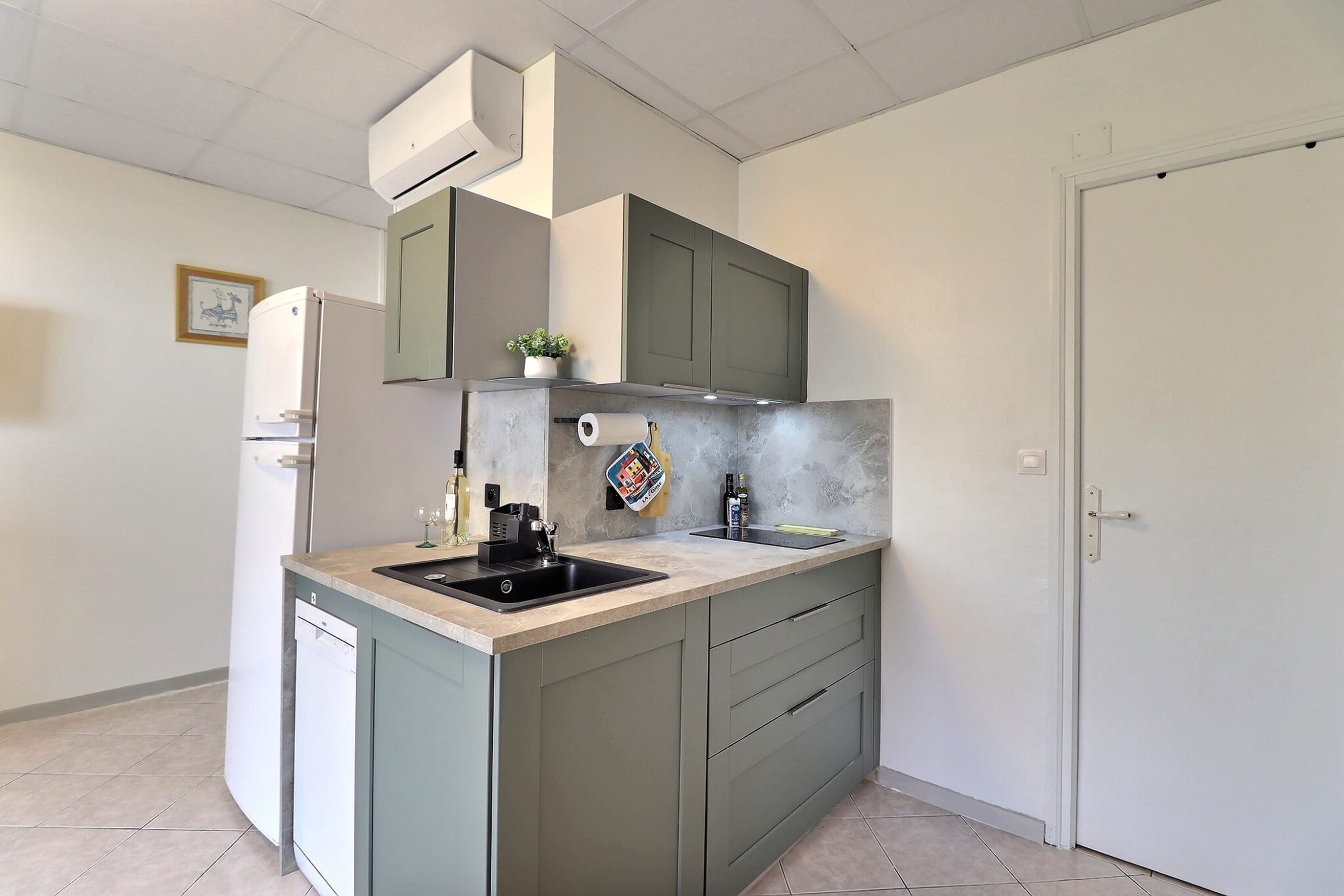 The modern, fully integrated kitchen allows you to enjoy complete independence during your stay, combining functionality with sleek design.