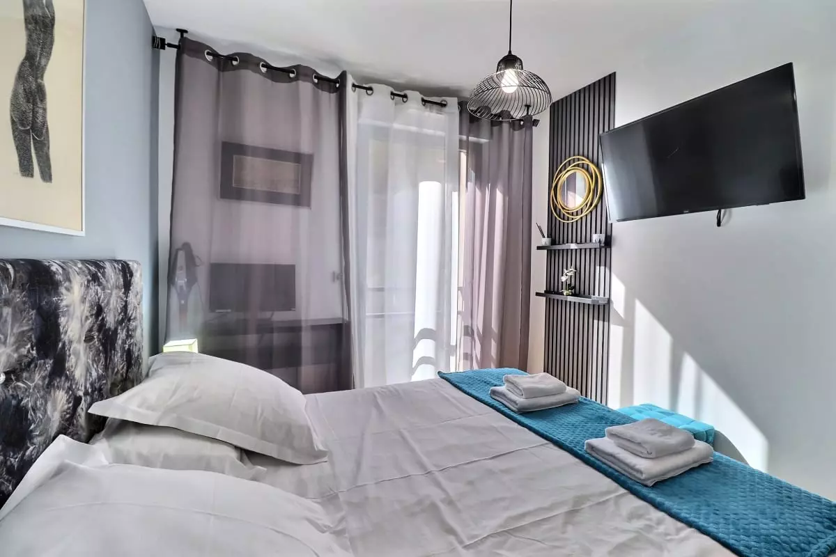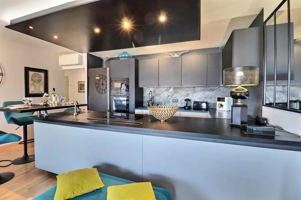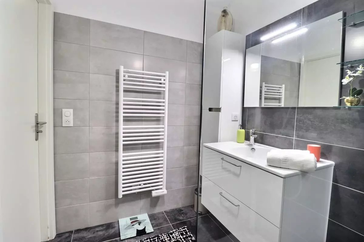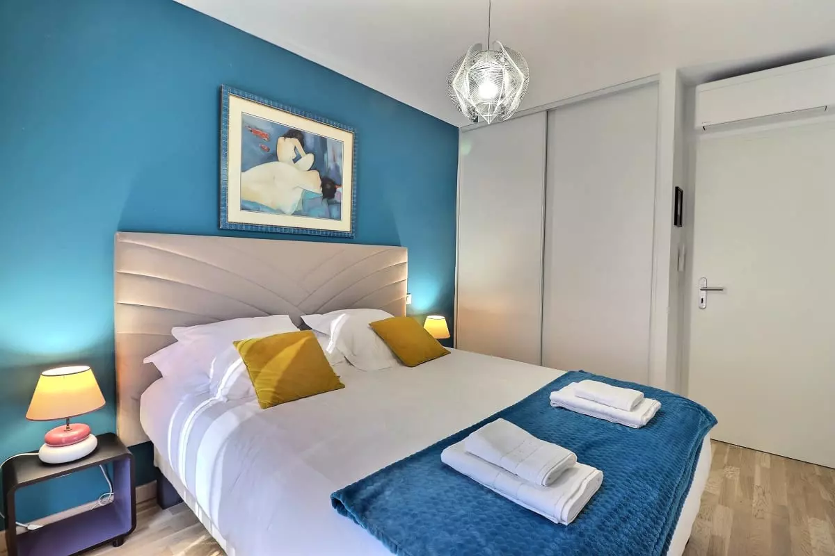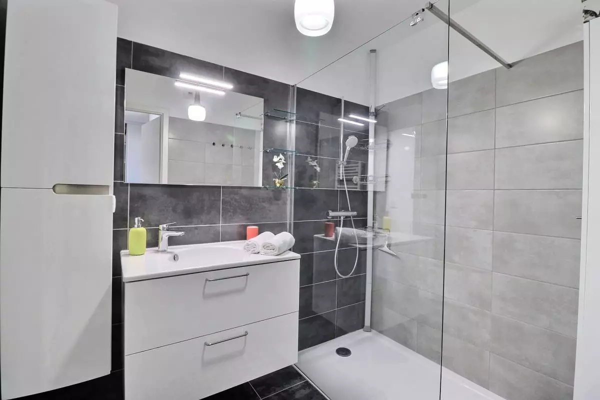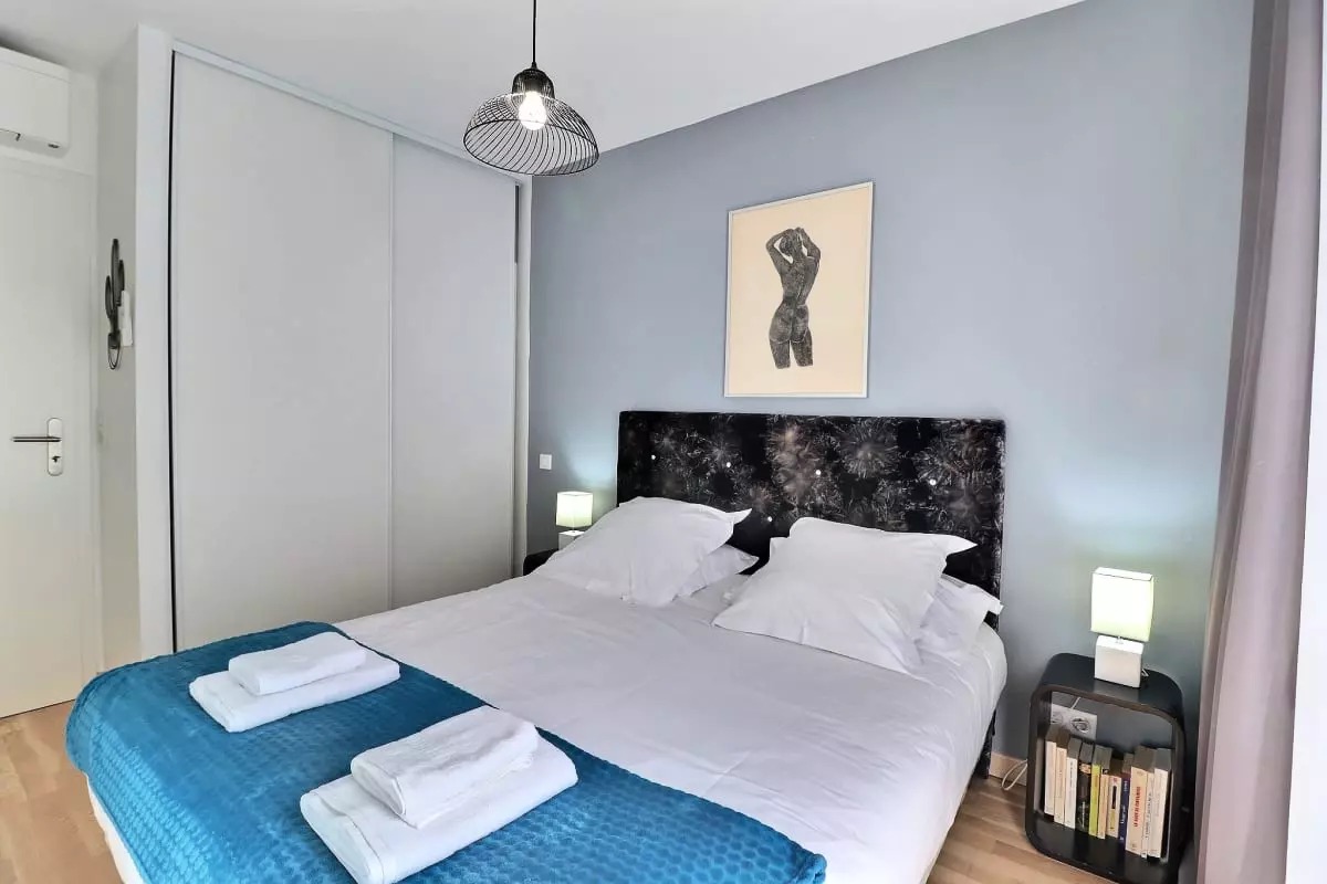 On the bedroom side, two inviting rooms each offer a queen-size bed (160 cm) and an atmosphere conducive to rest. The layout is well-balanced, storage is integrated, and comfort is optimal. Here, every detail has been carefully considered to guarantee une conciergerie and a high-quality stay.