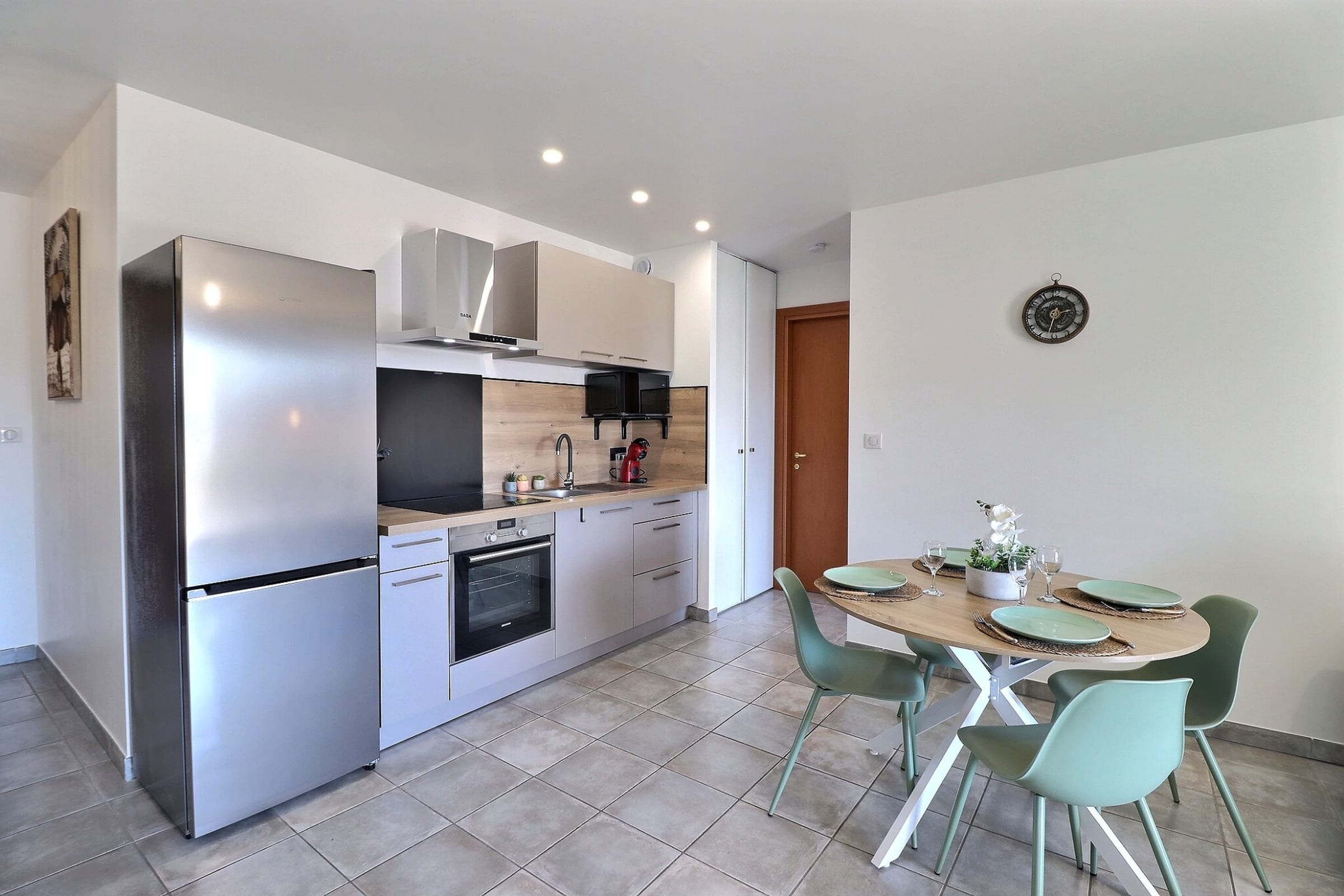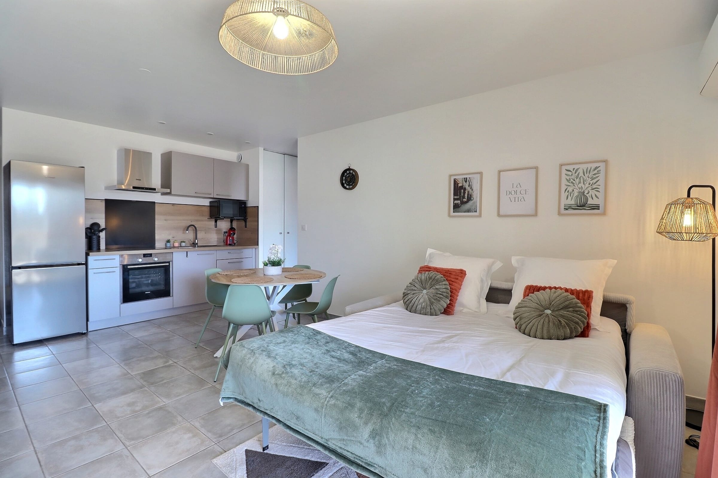 From the moment you arrive, the tone is set: a soothing atmosphere, enhanced by subtly integrated shades of green, echoing the surrounding maquis. The space has been designed as a functional and harmonious retreat, where every detail contributes to a seamless and comfortable experience.