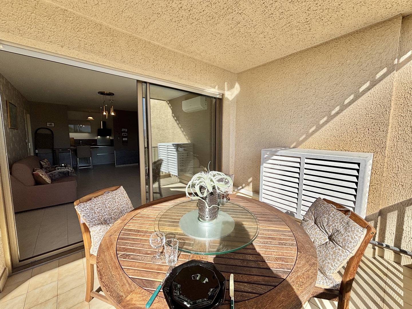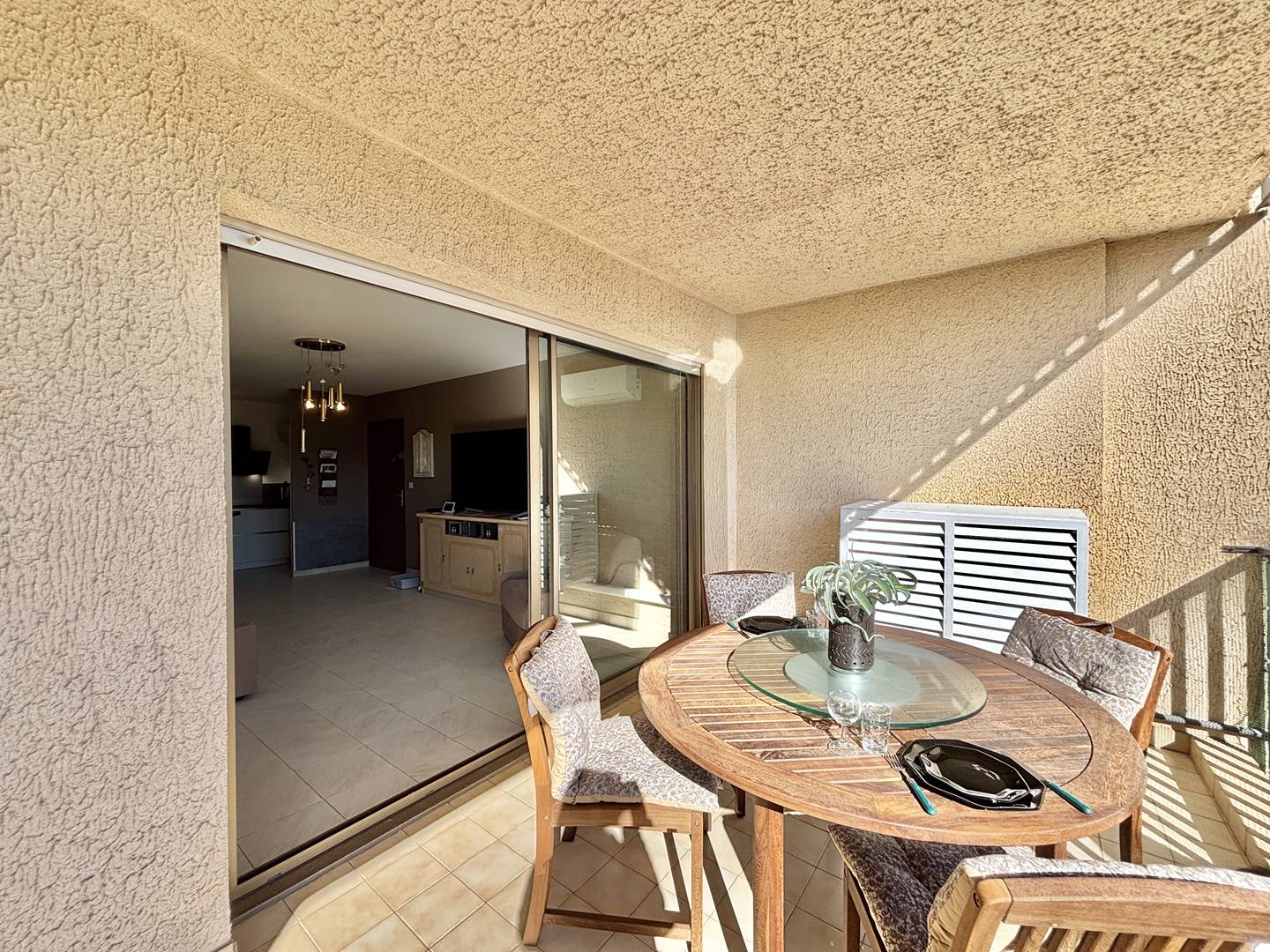 The apartment's added benefits: numbered and secure parking space and air conditioning in the living room.