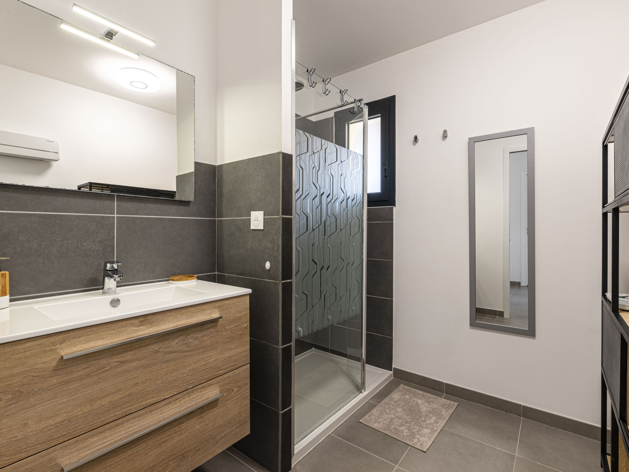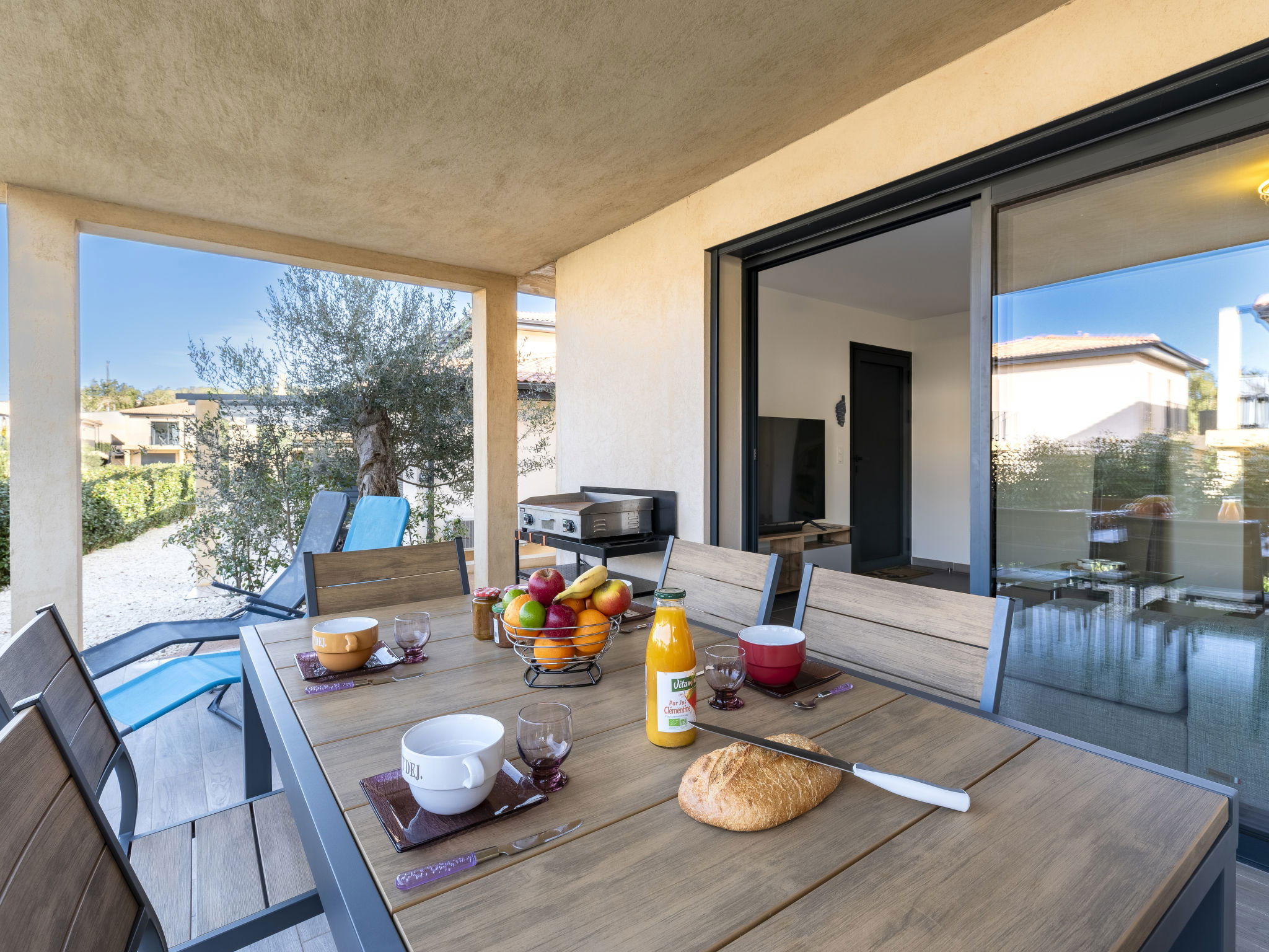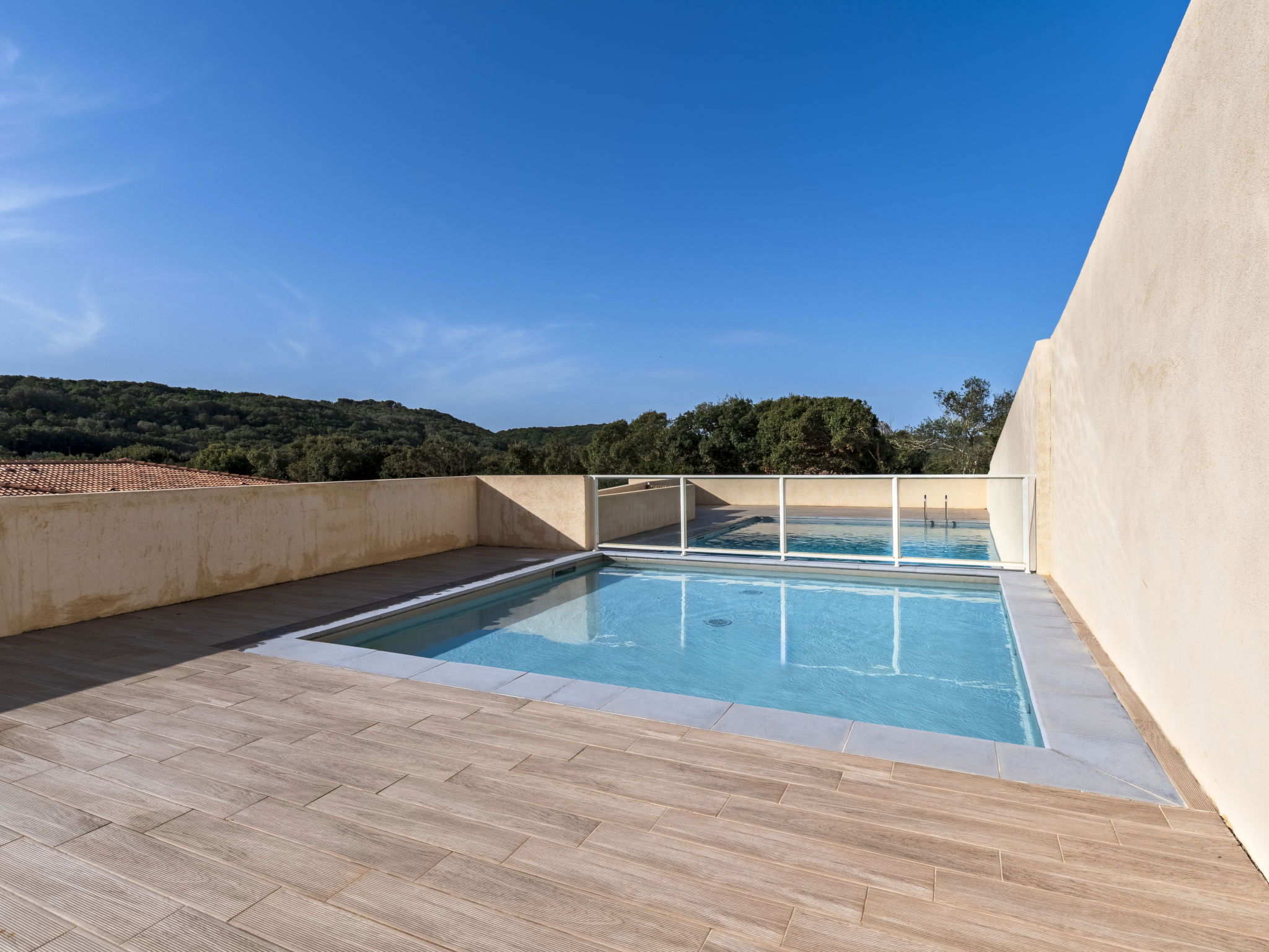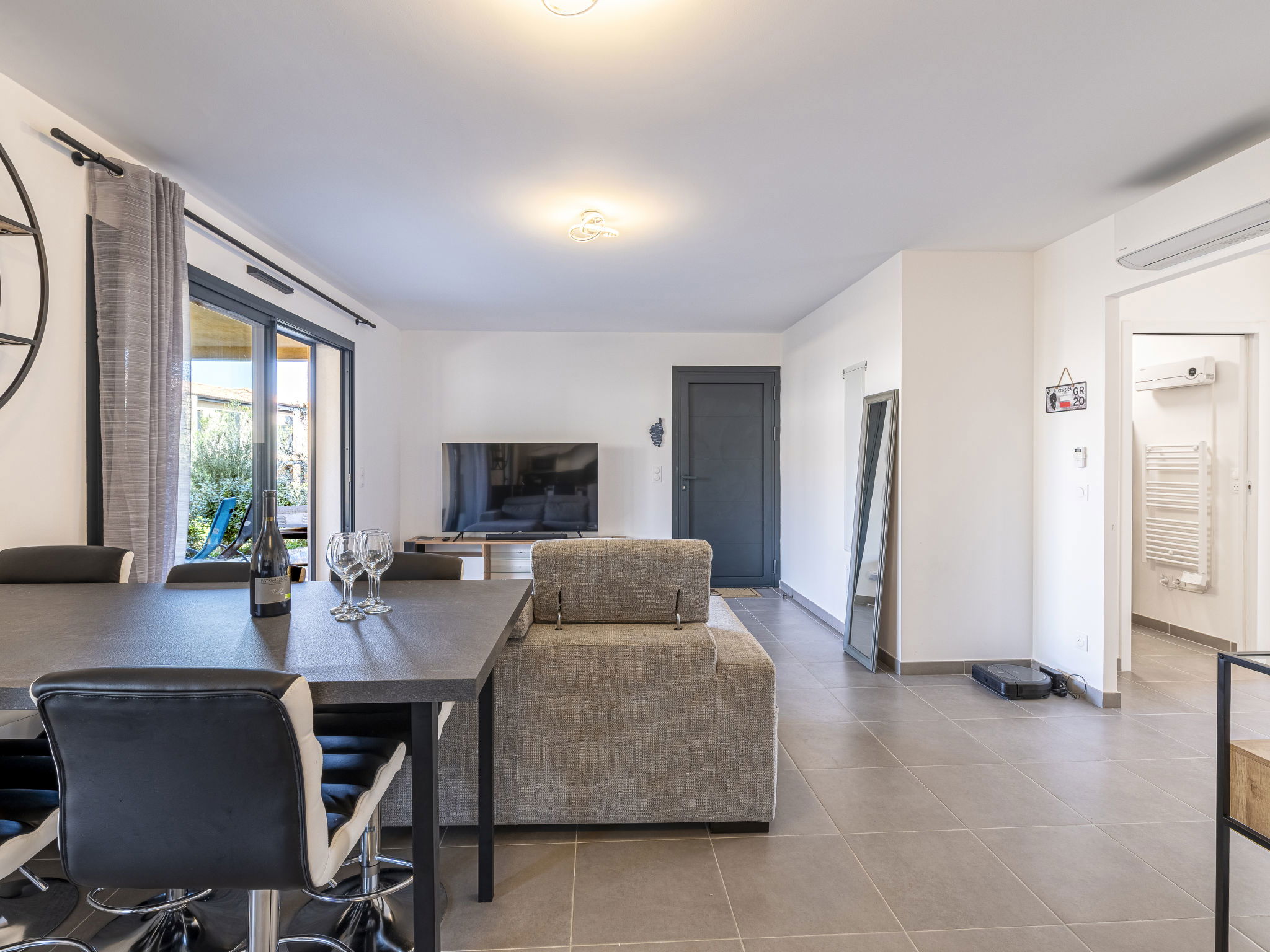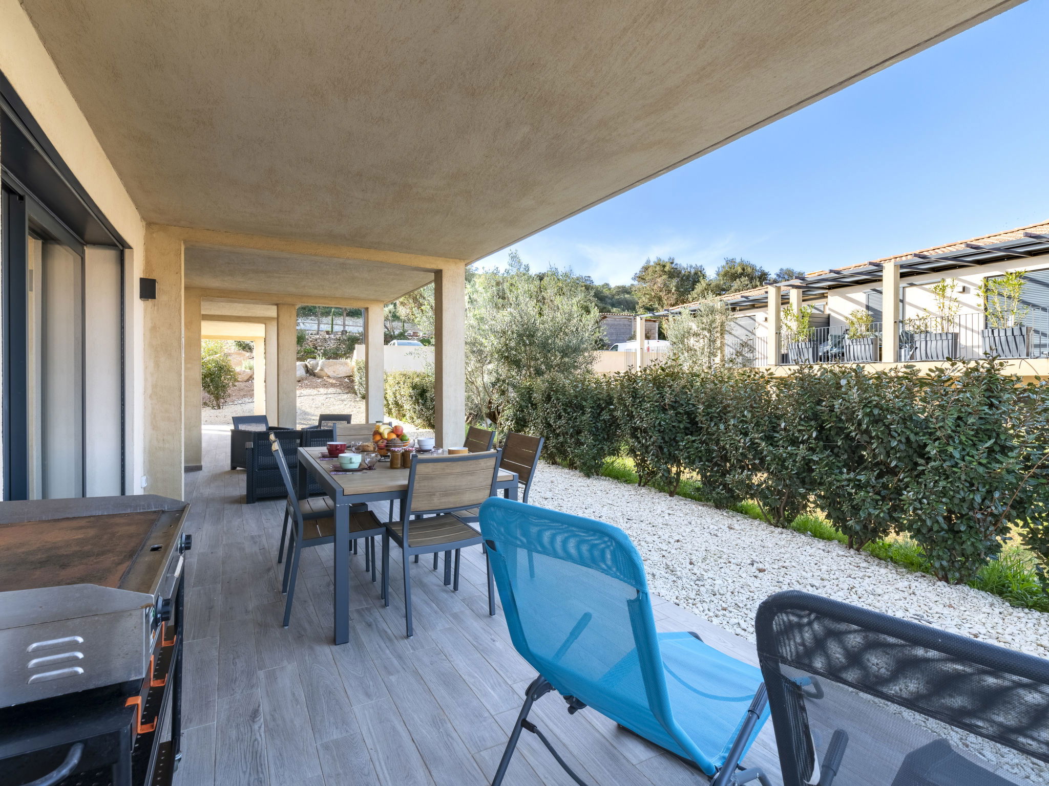 "Foce Dell Edera 2", 3-room apartment 68 m2, on the ground floor. Modern furnishings: living/dining room with panoramic window with TV " 2.6 km, sandy beach "Plage de Paraguan" 2.2 km. Sports harbour 3.5 km, golf course (18 hole) 8 km. Nearby attractions: Ville de Porto-Vecchio 26 km, Plage du petit Sperone 9 km, Plage de Sant'Amanza 7 km. Well-known lakes can easily be reached: Etang de Balistra 10 km. Hiking paths: Bruzzi 20 km. Please note: car recommended. Residence with electric gates.
