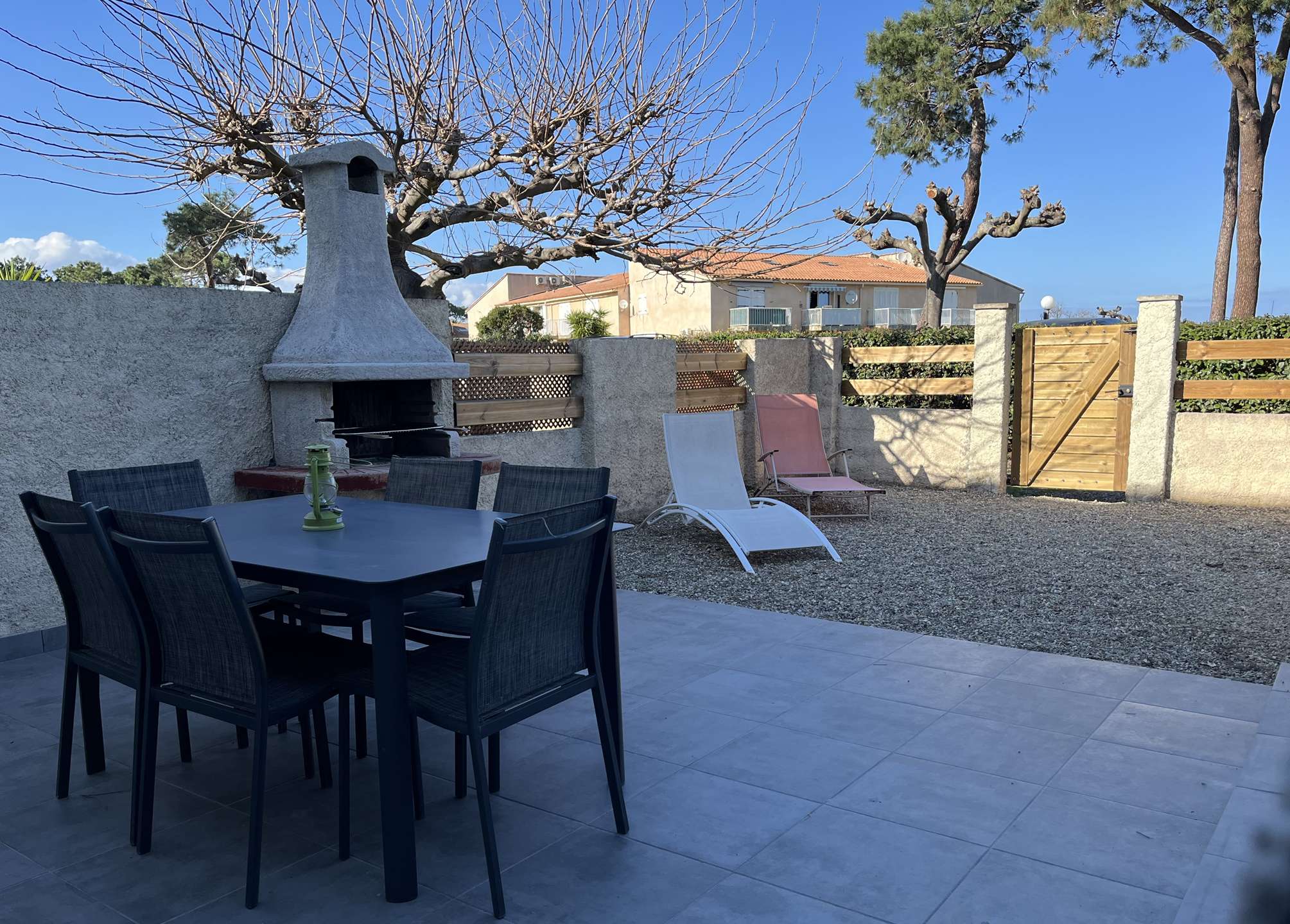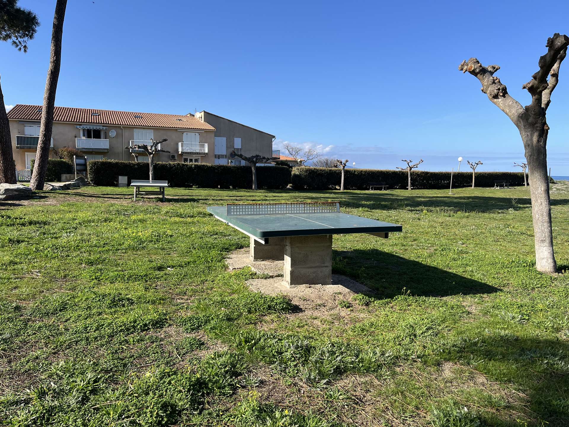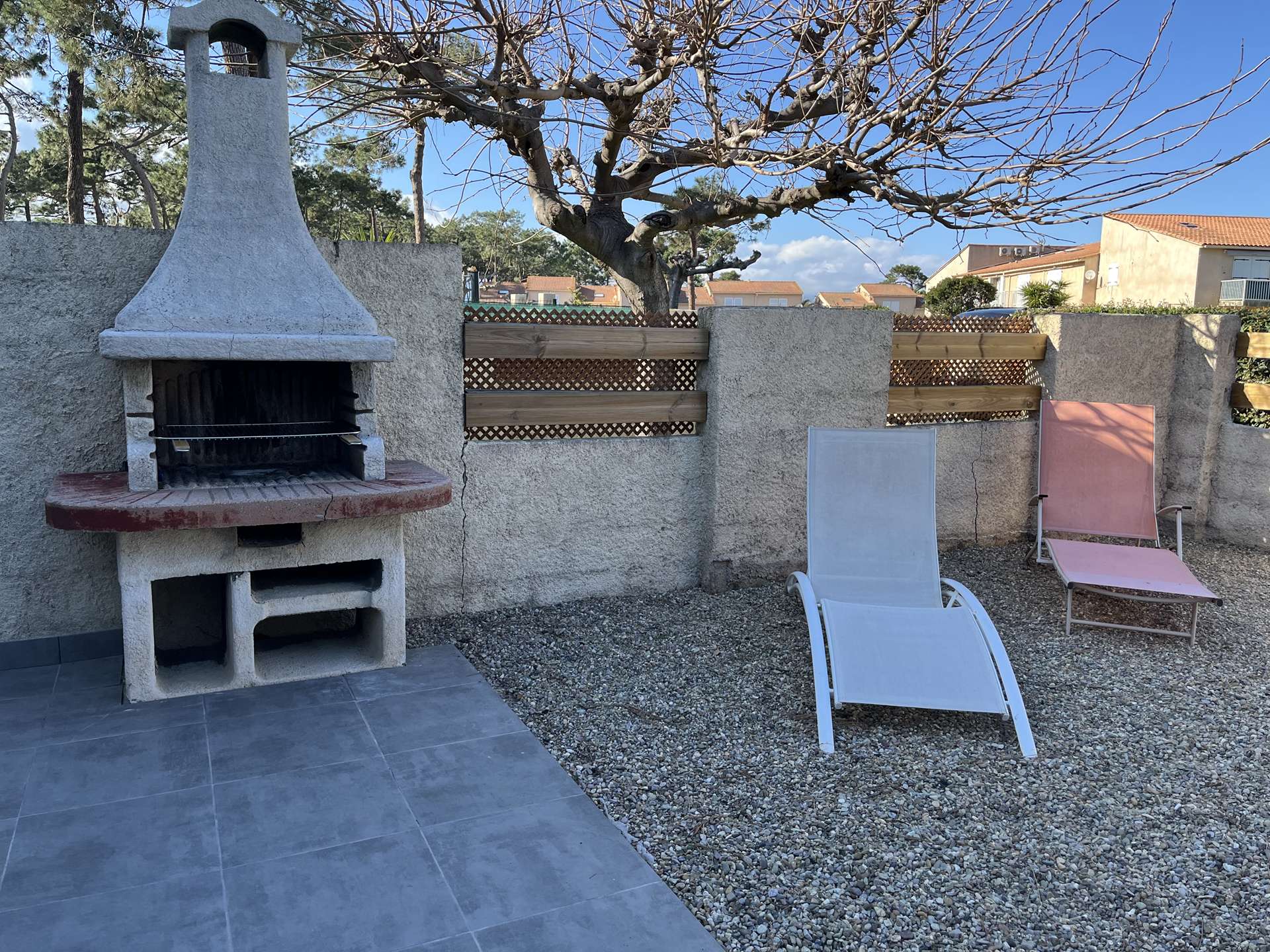 On the lagoon cord, in a seaside residence, 3-room duplex including an air-conditioned living room with open fitted kitchen, opening onto a terrace and garden with barbecue; a bathroom with shower and WC (washing machine).