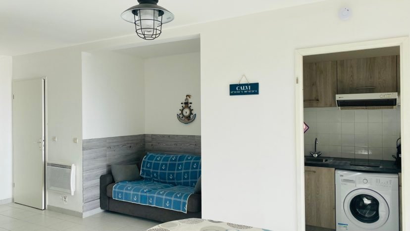 Calvi (2B) - Résidence les Asphodèles 2-room apartment - 42 m² - up to 4 people Located in the residence Les Asphodèles about 700 meters from the beach. The apartment, on the 1st floor without lift, consists of an equipped kitchen, a living room with a sofa bed, a shower room with WC, a bedroom with a double bed. The advantage of this apartment: Thanks to the private parking lot of the residence, it is easily possible to park a vehicle. Citadel and beach access on foot. Cleaning, bed linen and towels are included in the price.