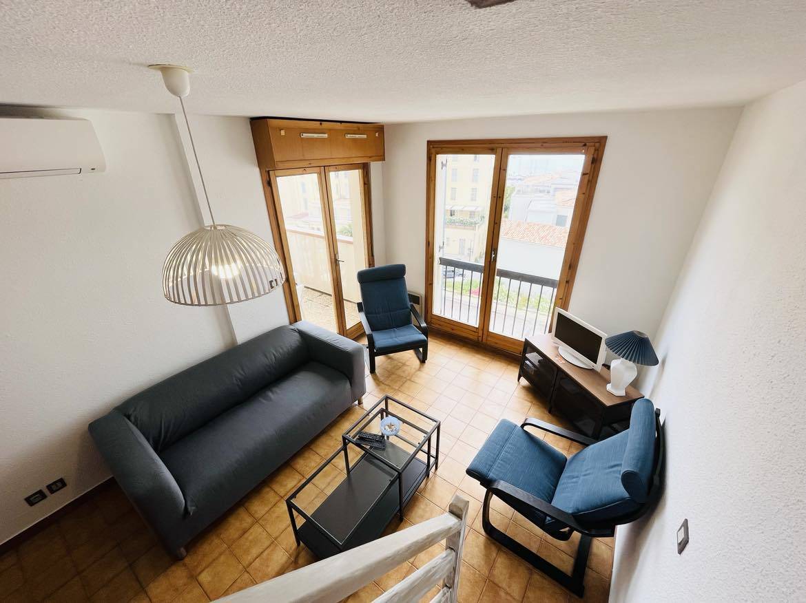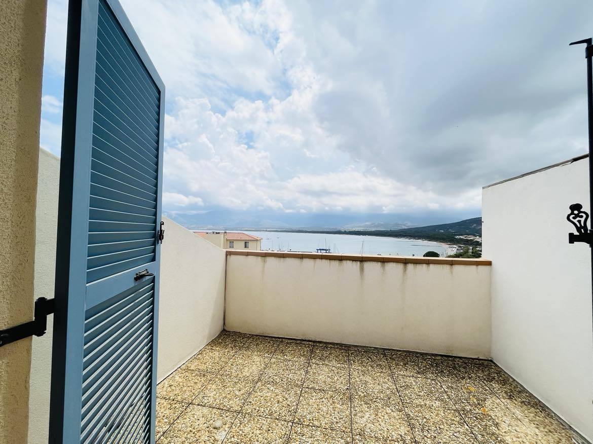 Calvi(2B) - Residence Santa Giulia 2 room apartment - 42 m² - up to 5 people Located in the secure residence "Santa Giulia" about 600 meters from the beach. The apartment, on the 3rd and last floor accessible by lift, is composed of a fitted kitchen, an air-conditioned living room, a bathroom, a bedroom with a double bed and terrace access, a sleeping area with a single bed, a mezzanine floor with two single beds and terrace access. The advantage of this apartment: From its two terraces with sea view you can fully enjoy your holidays. Beach access on foot. Cleaning, bed linen and towels are included in the price.