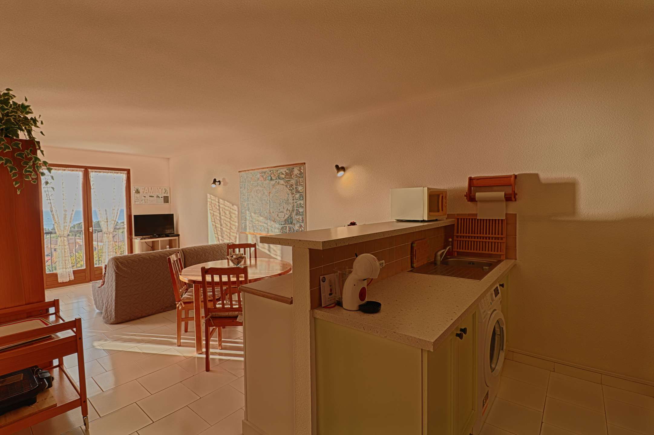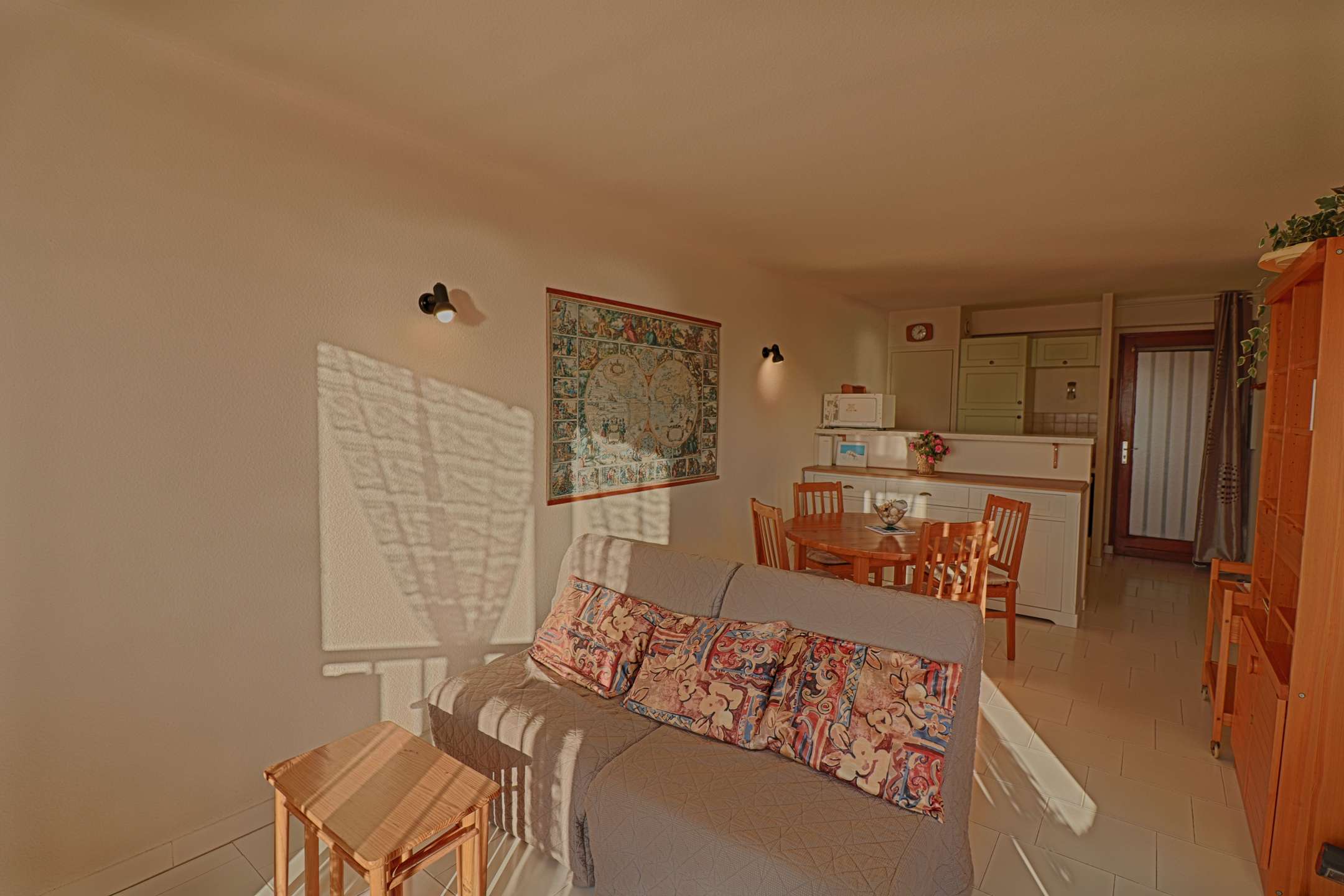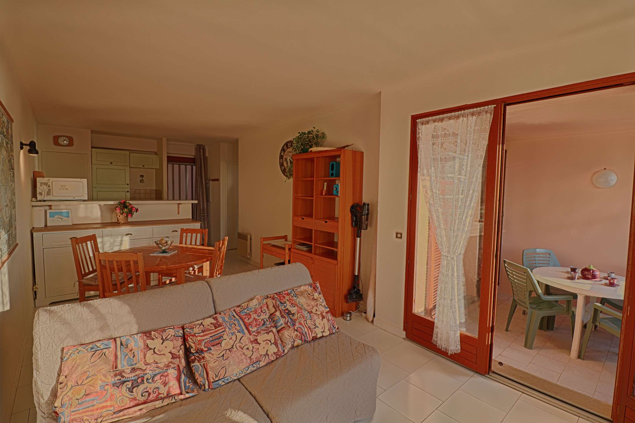 Porticcio ( 2A) - Apartment 9 Apartment - approximately 40m² for up to 4 people Located a few steps from the most intimate sandy beach, in one of the most popular residences in Porticcio: the Les Couchants residence. This apartment is composed as follows: an entrance, an equipped kitchen open to the living-dining room, a bedroom, a bathroom and a separate toilet. The advantage of this apartment: the calm and green setting of this residence with communal swimming pool and tennis courts. The sea view from the terrace. A parking space. End-of-stay cleaning, bed linen and towels are included in the price.