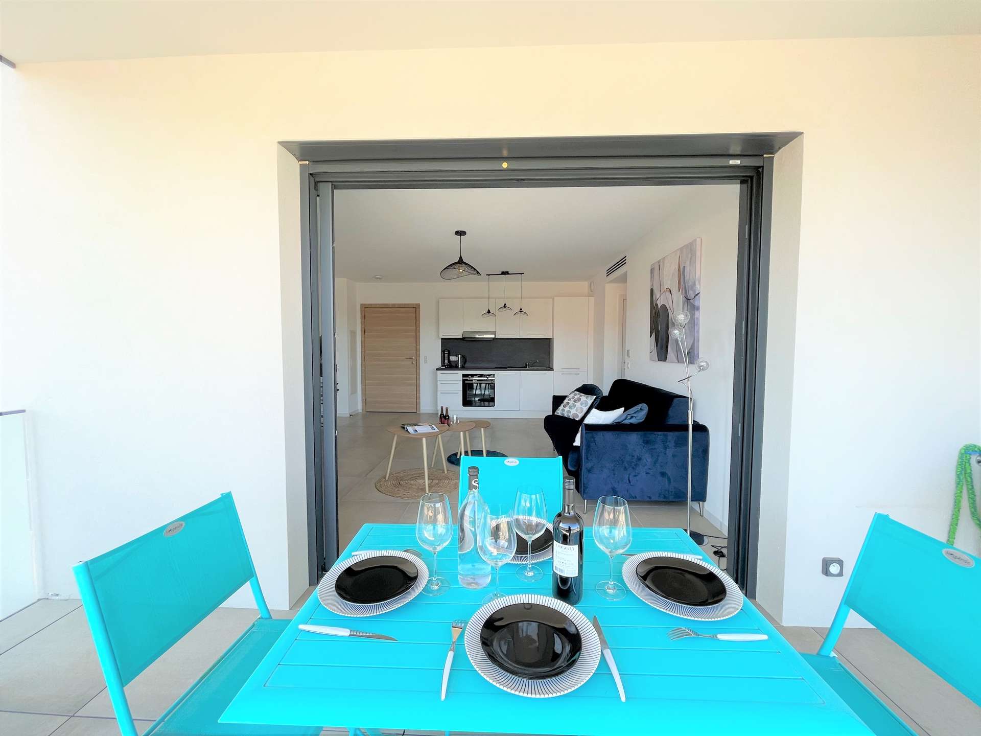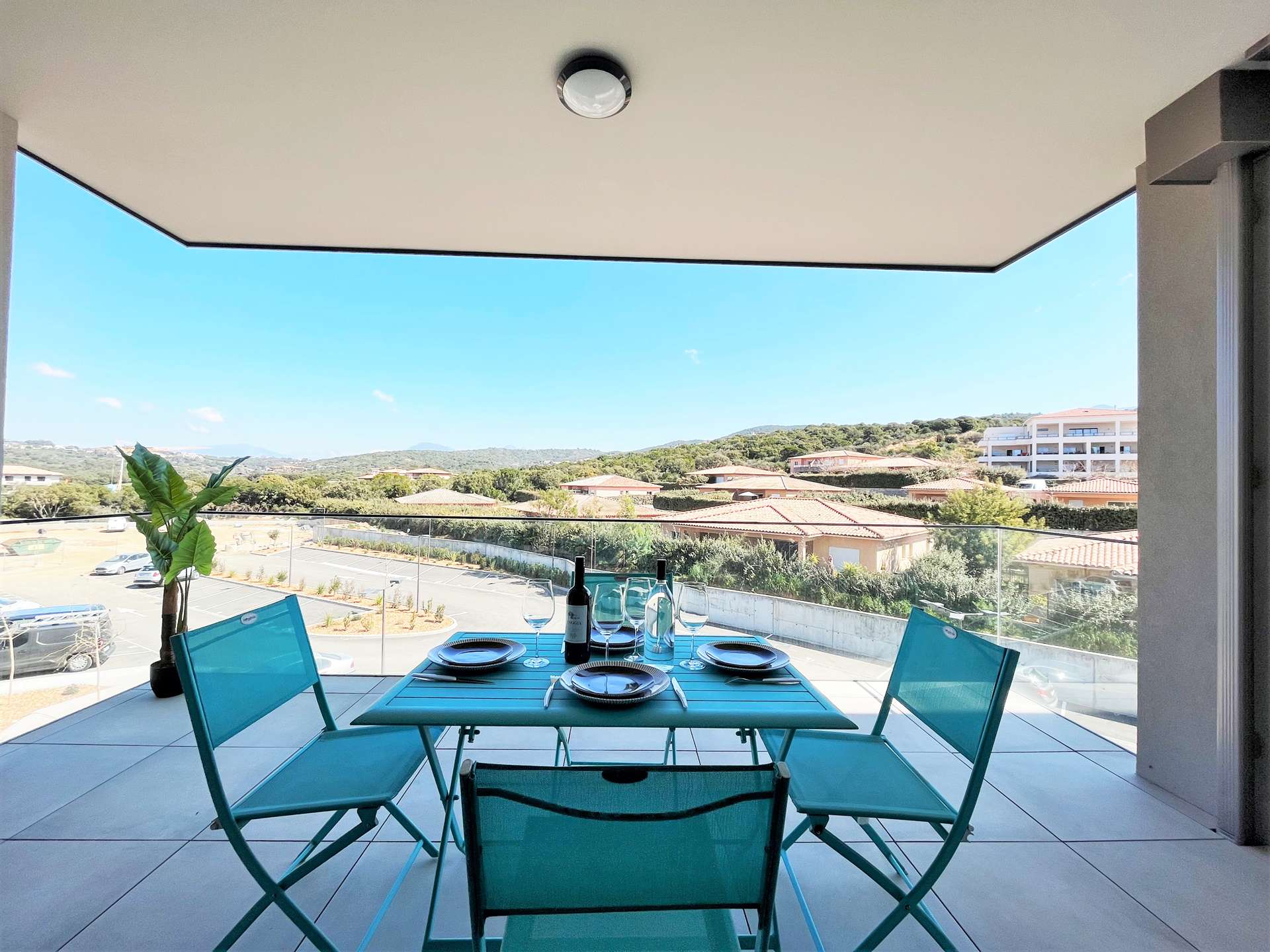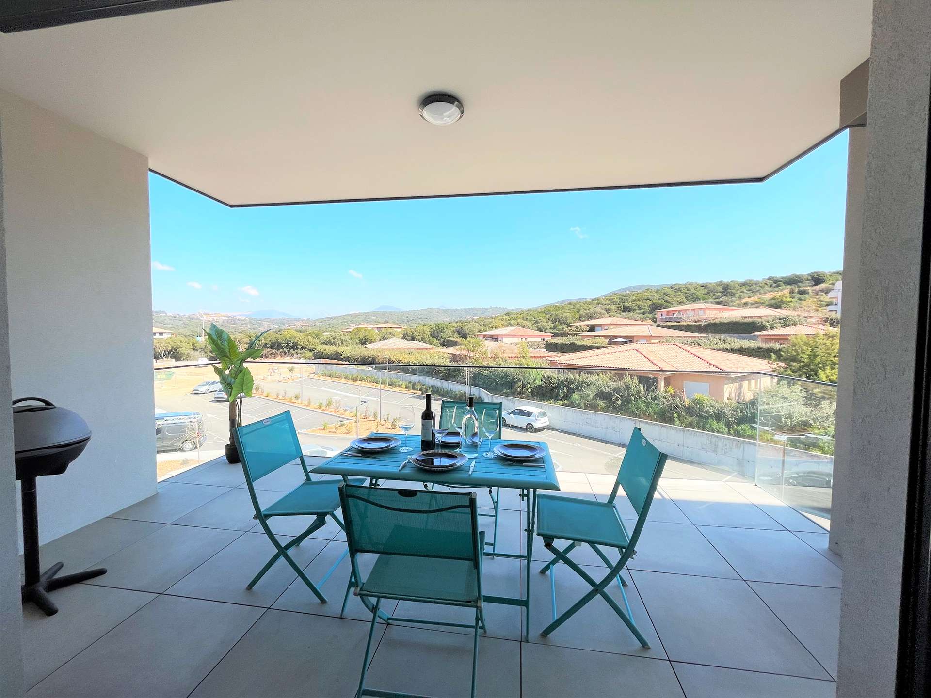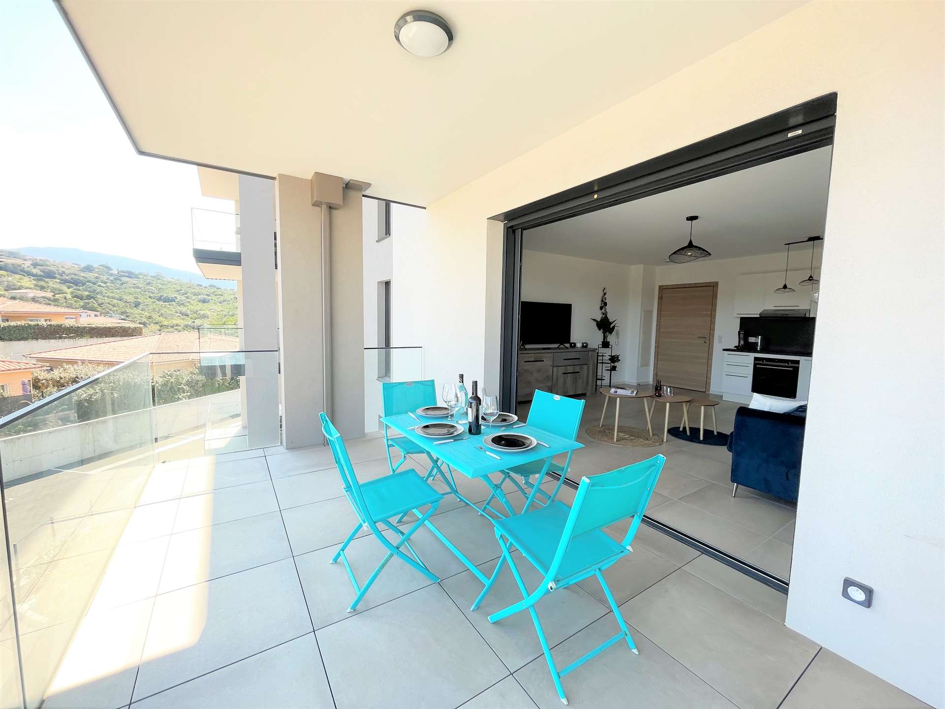PORTICCIO (2A) - Agosta beach Apartment - approximately 47m2 - up to 4 people Located in the luxury residence "Les jardins de Livia", just 650m from Agosta beach, we offer you a quality apartment, tastefully decorated, with a living area of 46m², and offering a pretty terrace equipped with a barbecue of around 10m². It includes: a day area with fitted kitchen open to the living room, opening onto the terrace, a shower room, a separate WC, and a bedroom. The advantage of this apartment: a shaded terrace - the beach only 650m away - shops in the immediate vicinity - an allocated parking space End-of-stay cleaning, bed linen and towels are included in the price.