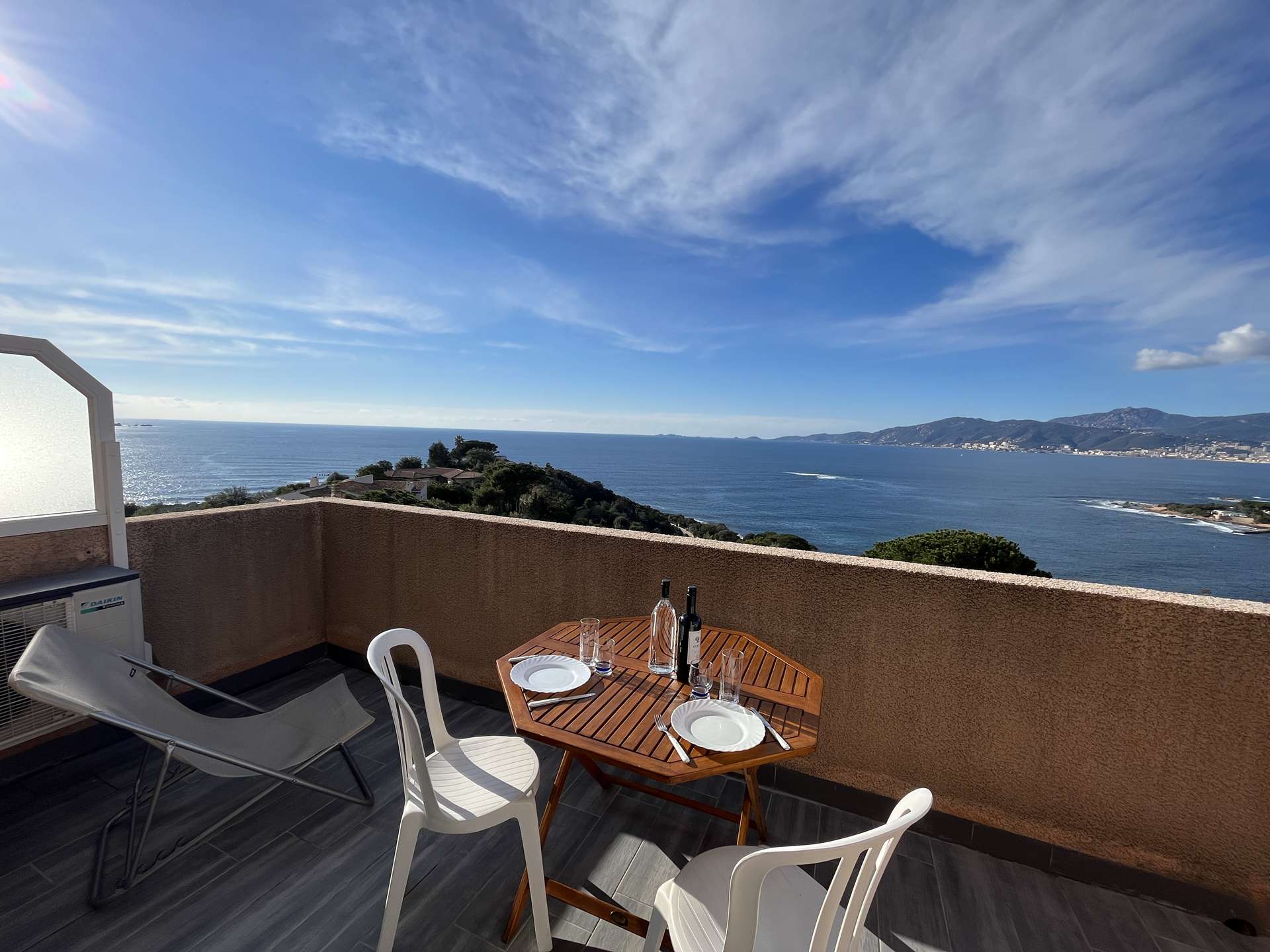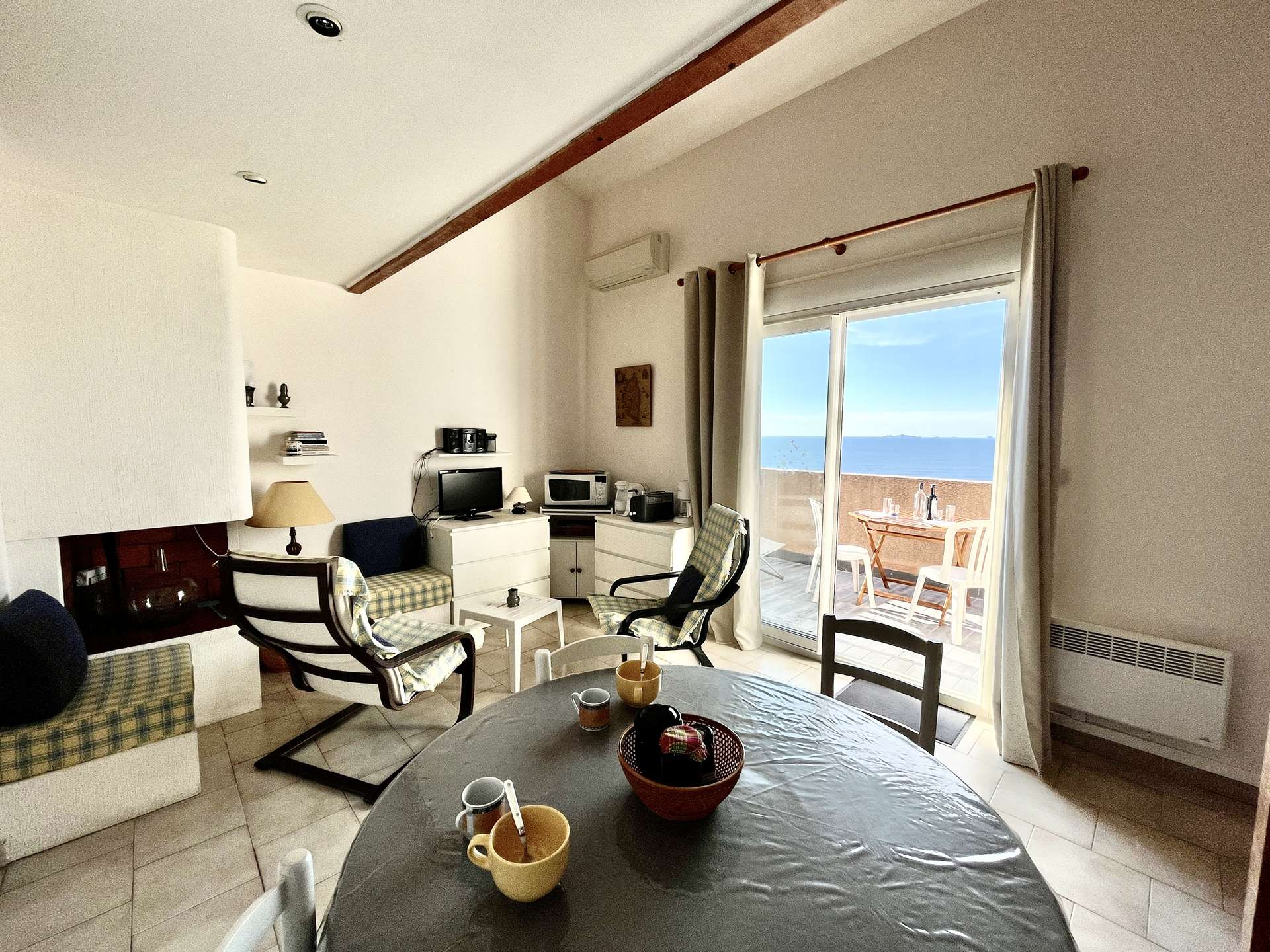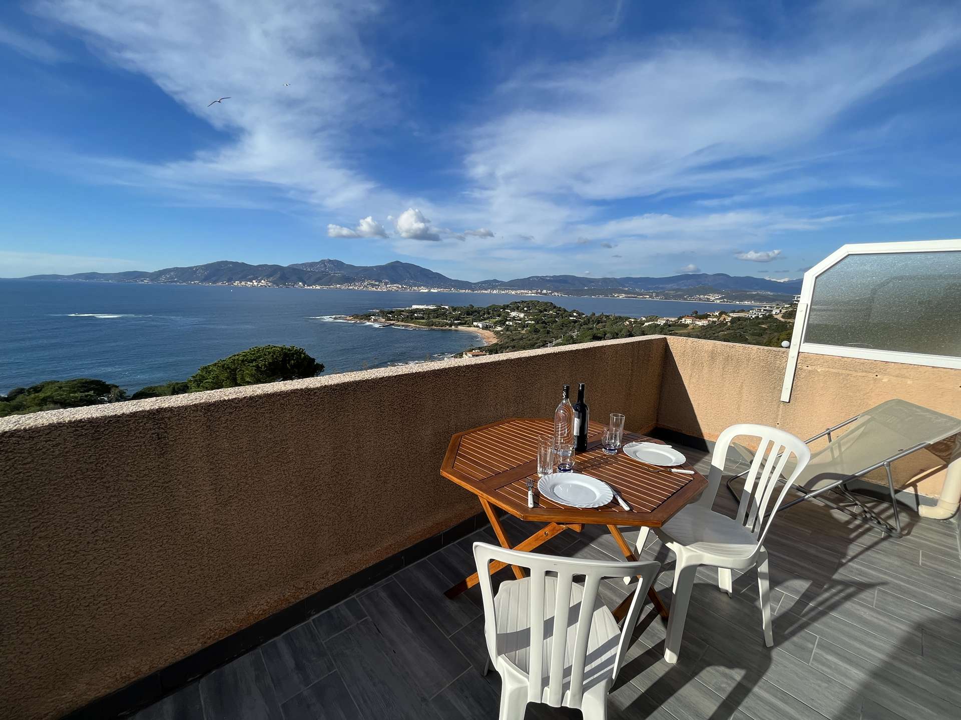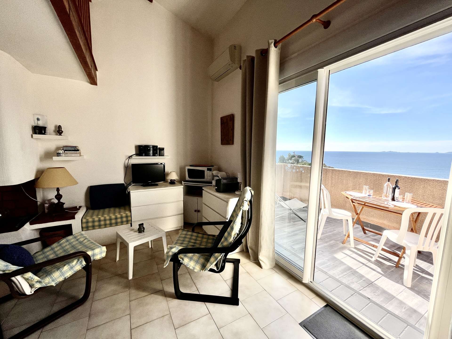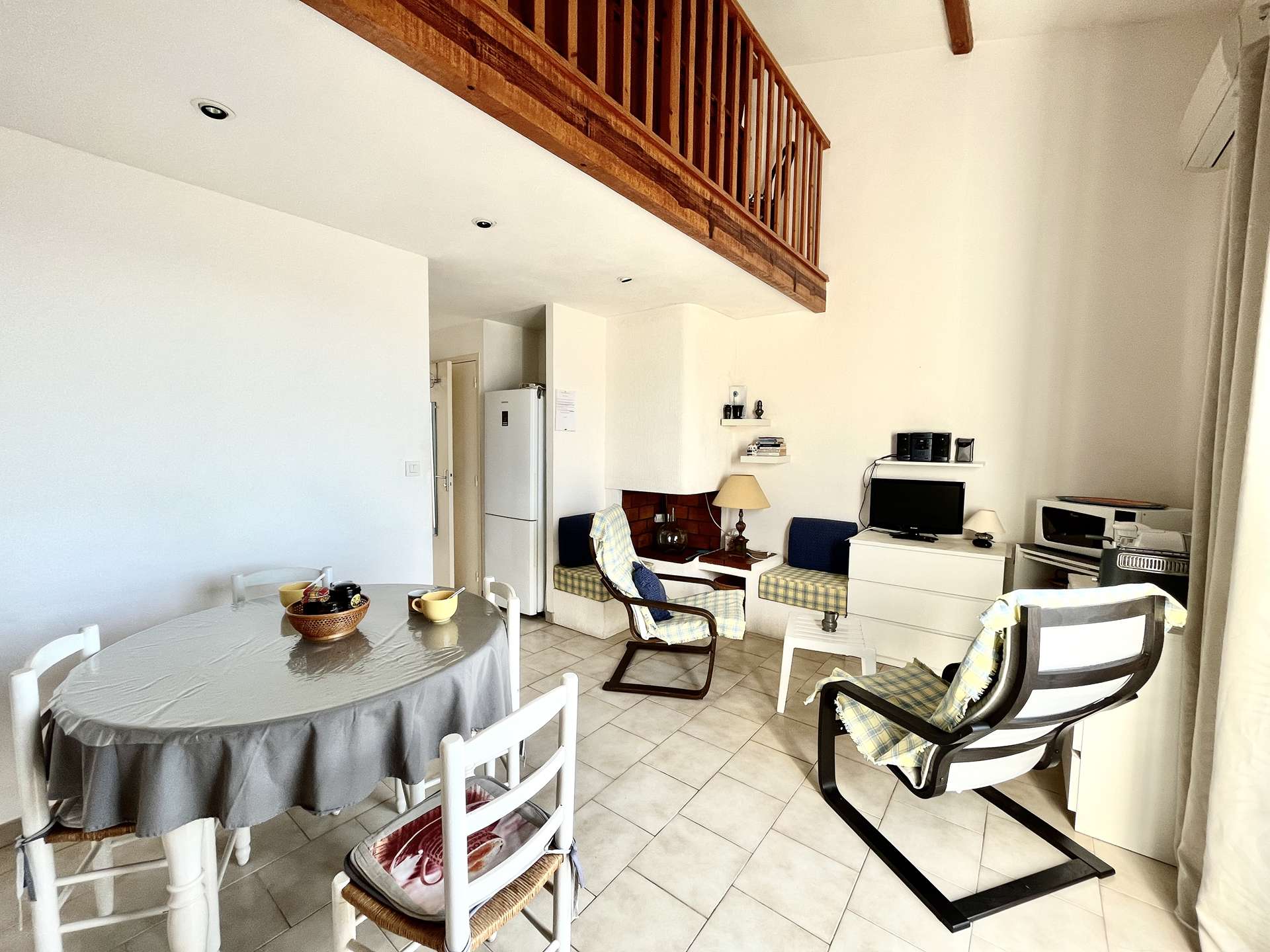 PORTICCIO Center (2A) - Hameau du Soleil Apartment - approximately 31m2 - up to 2 people In a quiet residential environment, the Residence Les Hameaux du Soleil will place you in the immediate vicinity of the center of the seaside resort of PORTICCIO. This air-conditioned apartment, with an area of approximately 31m², is composed as follows: an entrance, a separate toilet, a shower room, a main room with kitchenette, all opening onto the terrace, and a mezzanine equipped with a a 140 double bed with storage. The advantage of this apartment: a beautiful 10m² terrace offering you a breathtaking sea view over the golf course of Ajaccio. IMPORTANT INFORMATION: End of stay cleaning, bed linen and towels are included in the price.