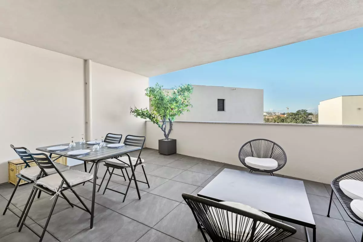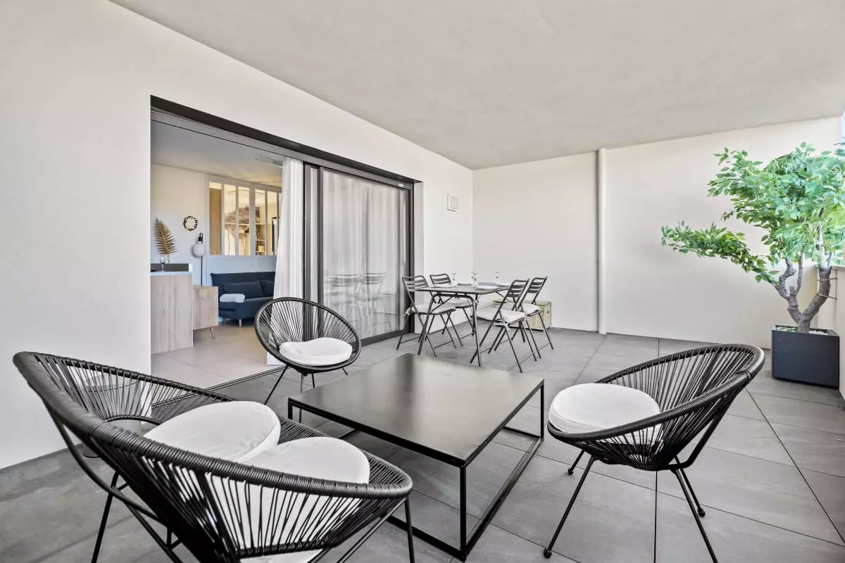 Outside, the large, east-facing furnished terrace is perfect for al fresco dining or relaxing in the shade. Imagine yourself enjoying a grilled meal on the plancha or simply relaxing on the comfortable sofas with a good book.