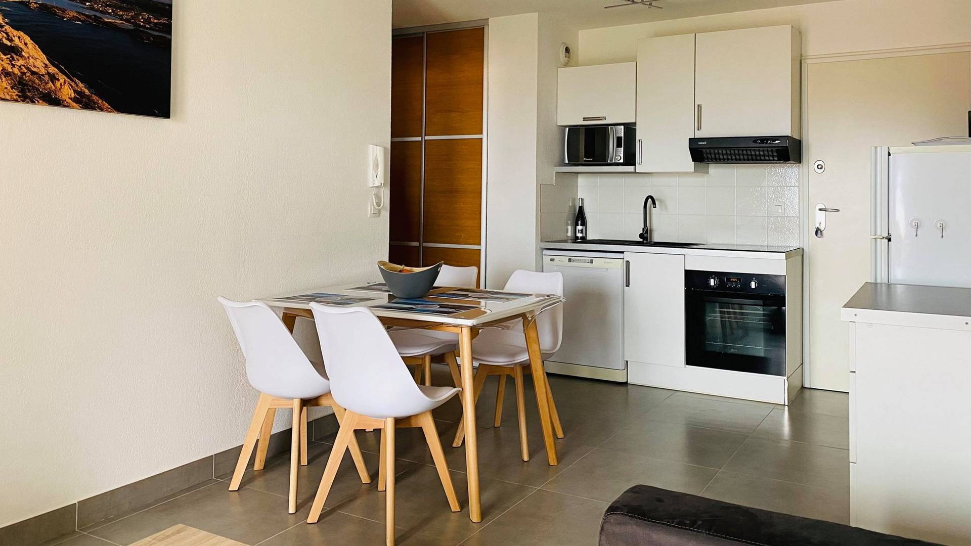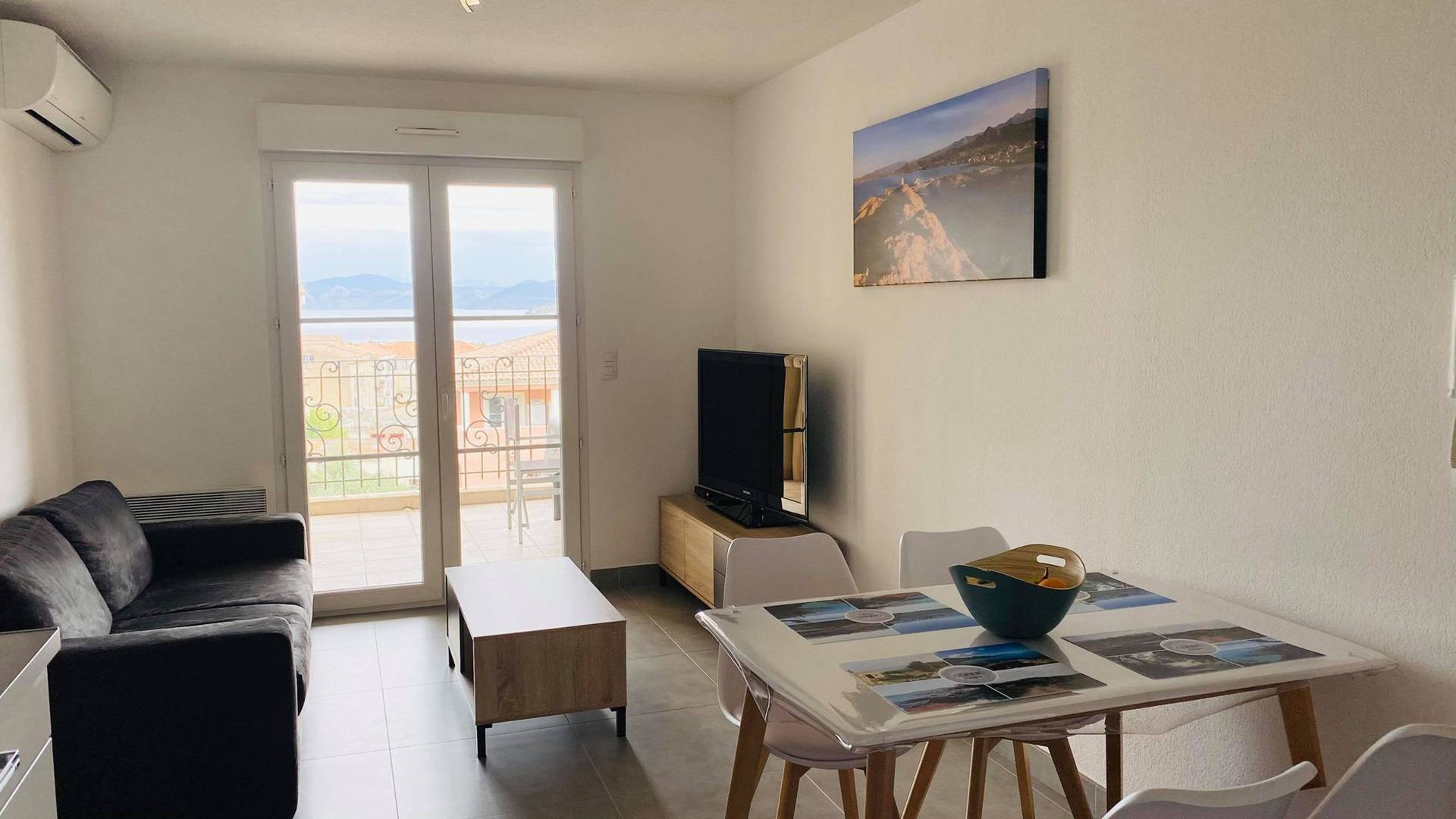 L'Ile Rousse (2B) Pleasant 2 room apartment - 37 m² - up to 4 people Located in the secure residence "Le Clos Des Oliviers" 800 meters from the beach. The apartment, on the ground floor, consists of an equipped kitchen, a living room with a sofa bed, a bathroom with WC, a bedroom with a double bed (160). The advantage of this apartment: has a beautiful terrace with sea and city views, access to the city center on foot via a private passage from the residence. Thanks to private parking in front of the residence, it is easily possible to park a vehicle. Cleaning, bed linen and towels are included in the price