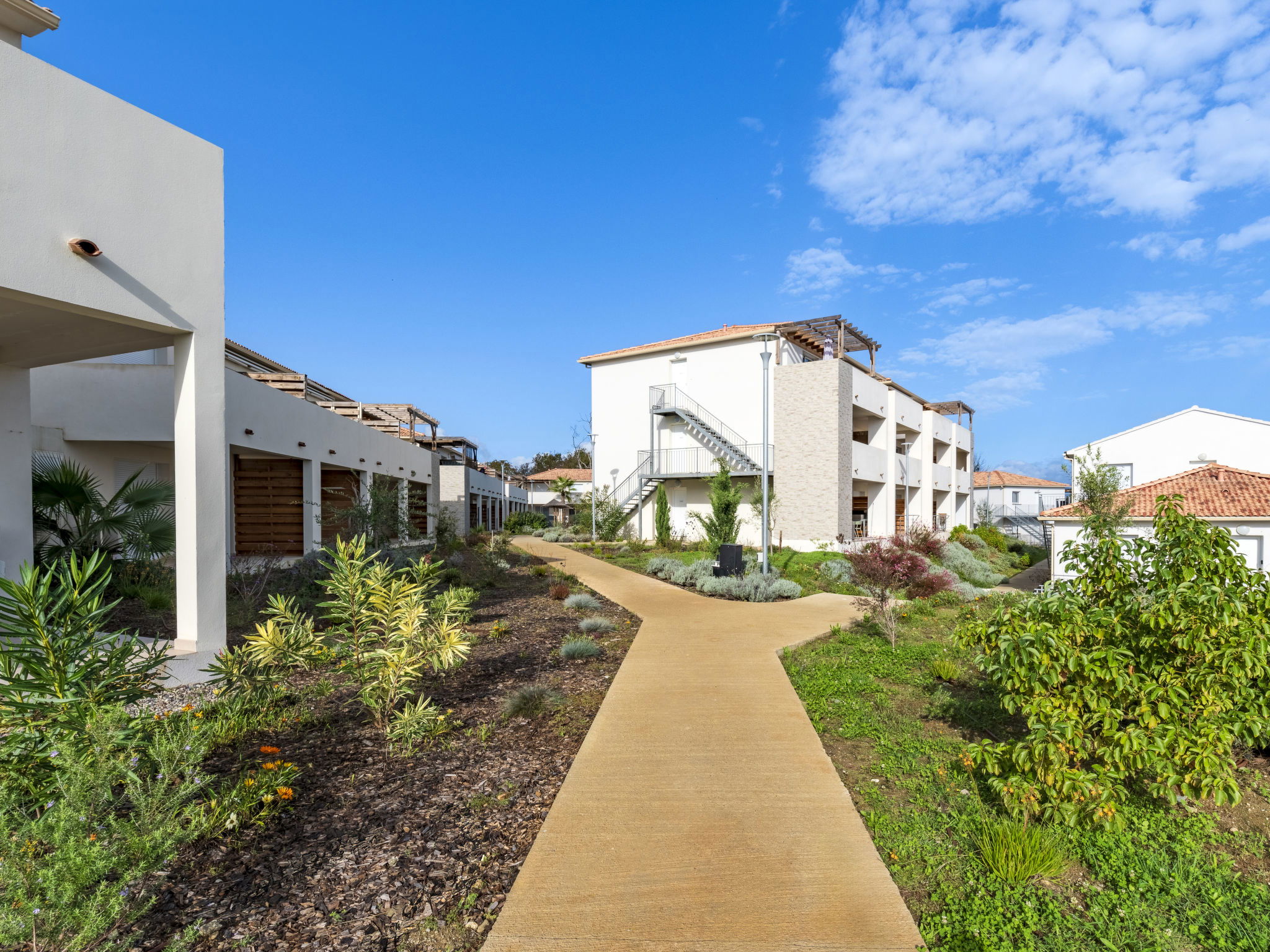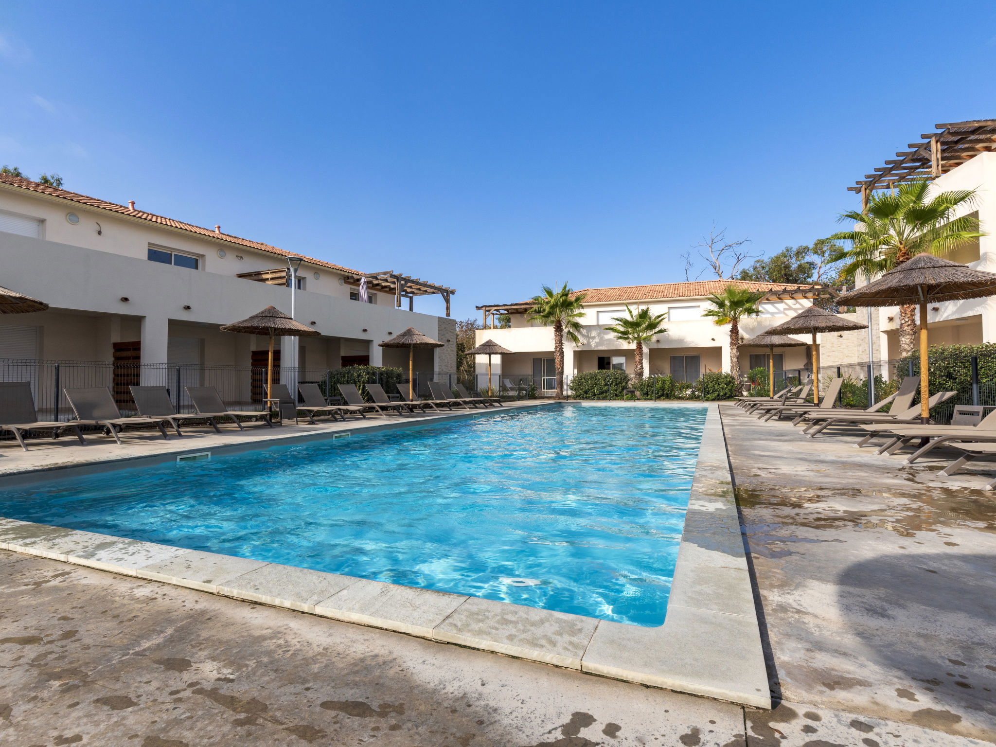 Bravone: Residence "Marina Di Bravone". 80 m from the sea, 80 m from the beach, direct access to the beach. For shared use: swimming pool heated (20 x 6 m, depth 150 cm, seasonal availability: 15.Apr. - 30.Oct.). Outdoor shower. In the complex: washing machine, tumble dryer (for shared use, extra). Parking. Grocery 2.2 km, supermarket 9 km, restaurant 2 km, bus stop 2.7 km, sandy beach "Bravone" 80 m, diving center 6 km. Sports harbour 18 km, riding stable 3 km. Nearby attractions: Marché Bravone (jeudi) 1.8 km. Please note: car recommended.
