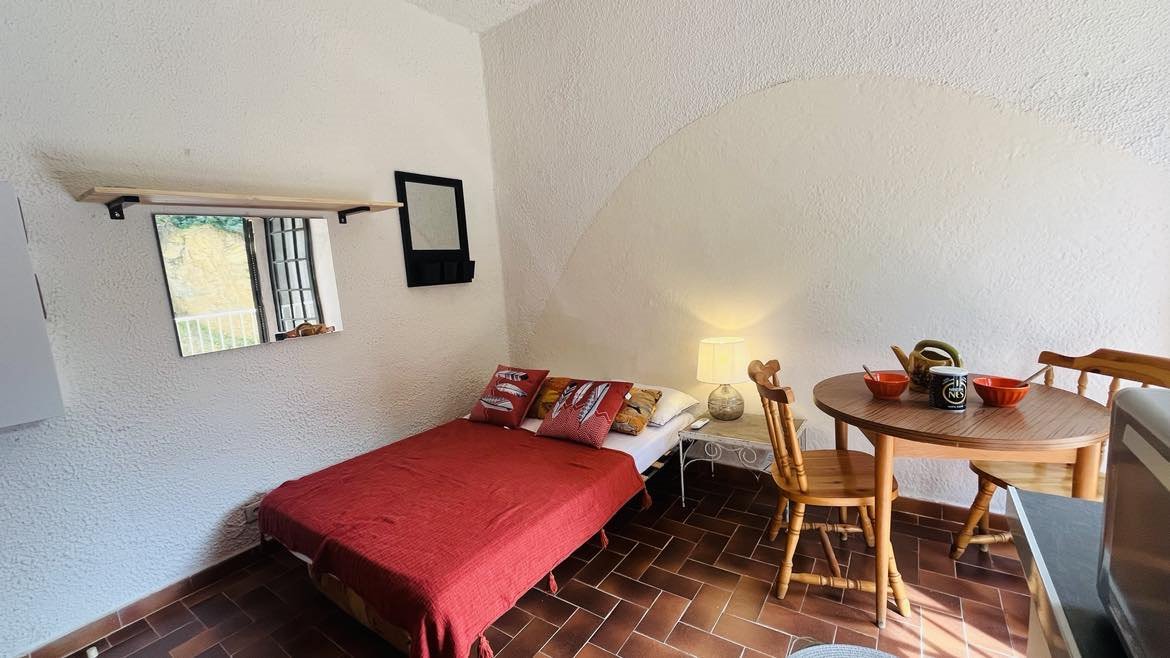 The studio, on the 1st floor, is composed of an equipped kitchen open to the living room with double bed, a bathroom, a separate toilet.
