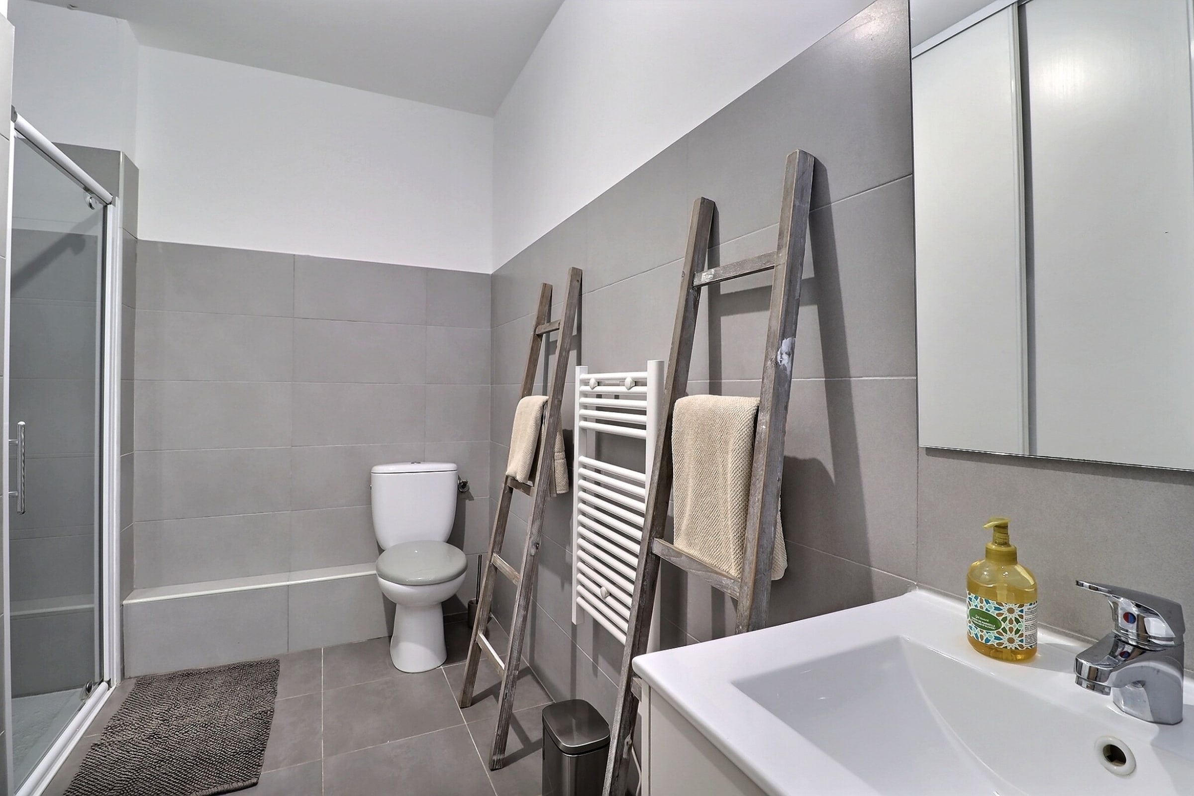 A sleek and modern bathroom completes the space, designed with convenience and simplicity in mind.