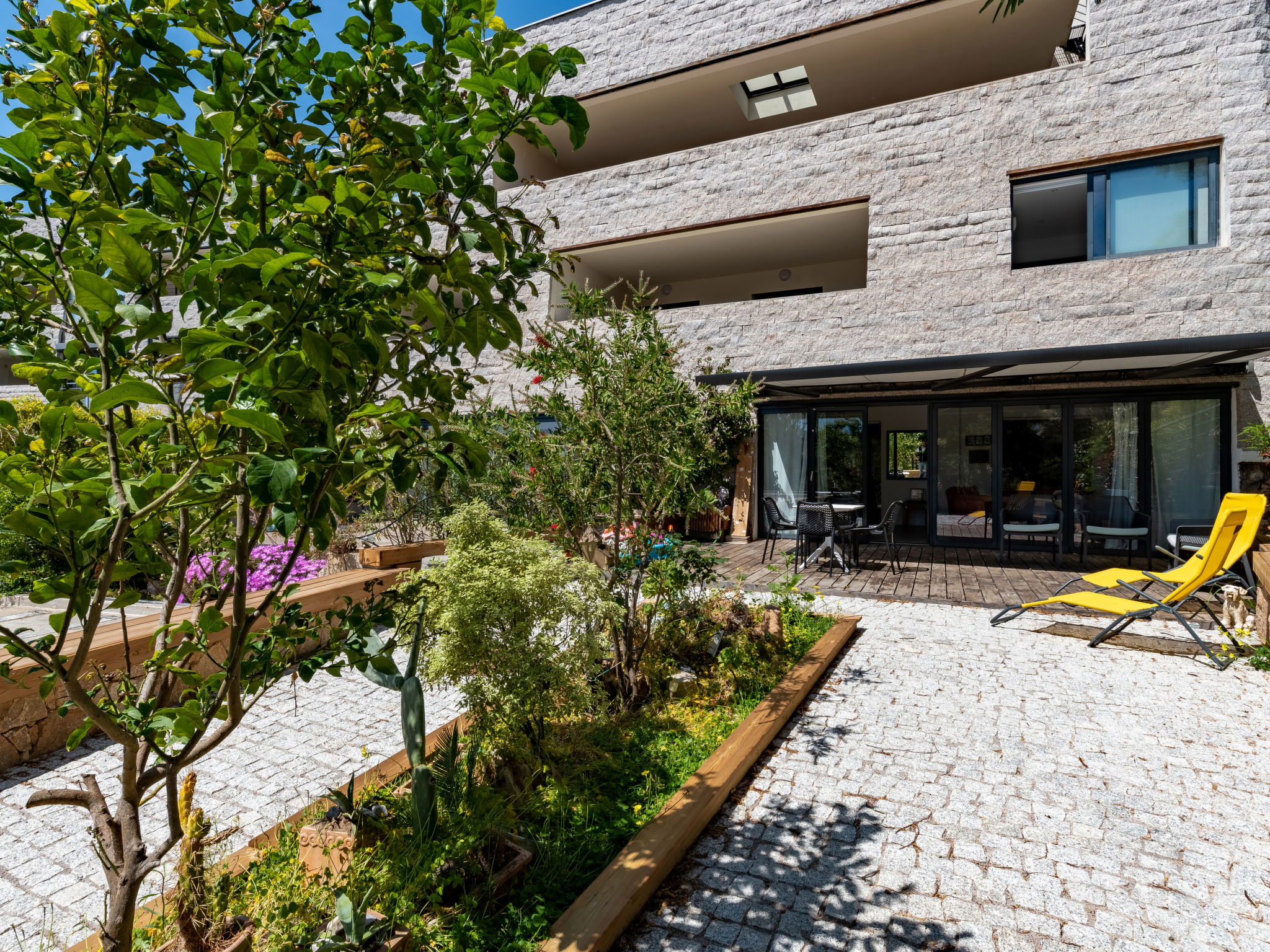 "Bastion", 2-room apartment 80 m2 on 1st floor. Comfortable and beautiful furnishings: living/dining room with TV (flat screen). Exit to the terrace. 1 small room with 2 beds (90 cm, length 190 cm). Alcove with 1 french bed (160 cm, length 200 cm). Open kitchen (3 hot plates, oven, dishwasher, toaster, kettle, microwave, freezer, electric coffee machine). 2 showers/WC. Electric heating, air-conditioning. Terrace 15 m2. Terrace furniture. Facilities: washing machine. Internet (WiFi, extra). Garage space n 100. Please note: telephone for incoming calls only, non-smokers only. Smoke alarm. Instead of an enclosed bedroom, some sleeping areas are located in an open-plan area (gallery, alcove, etc.). 2A247001406A5