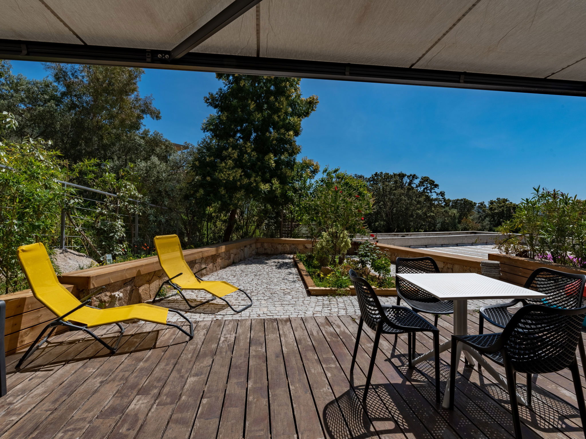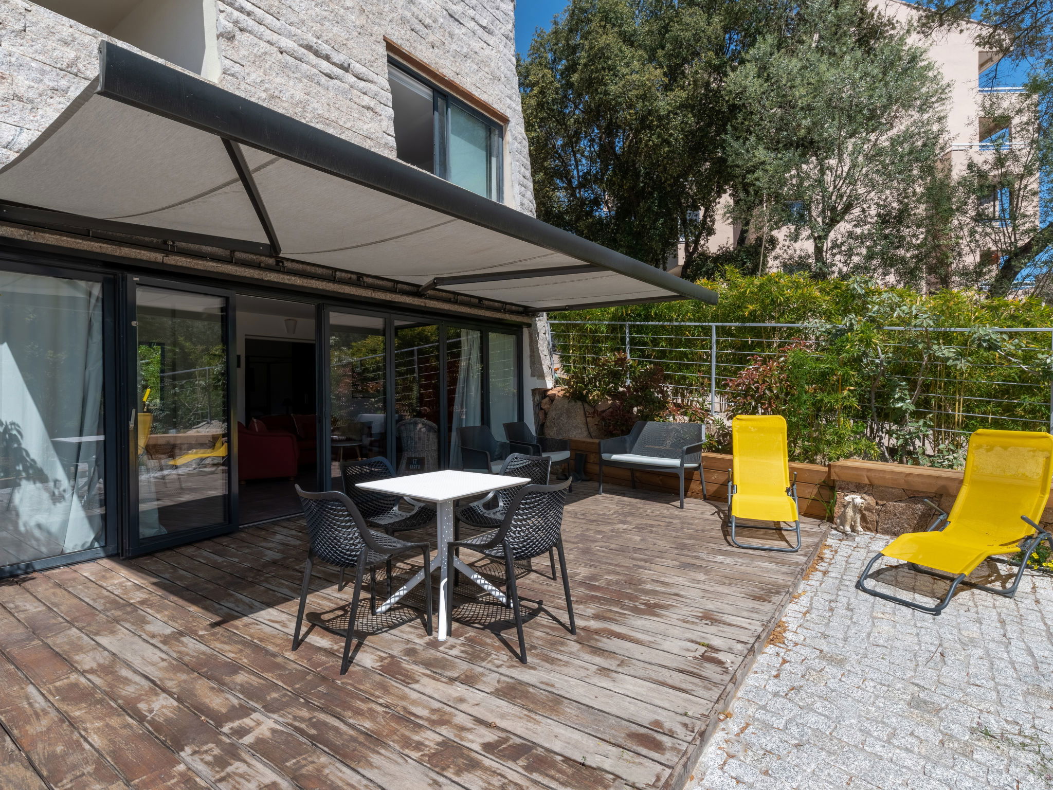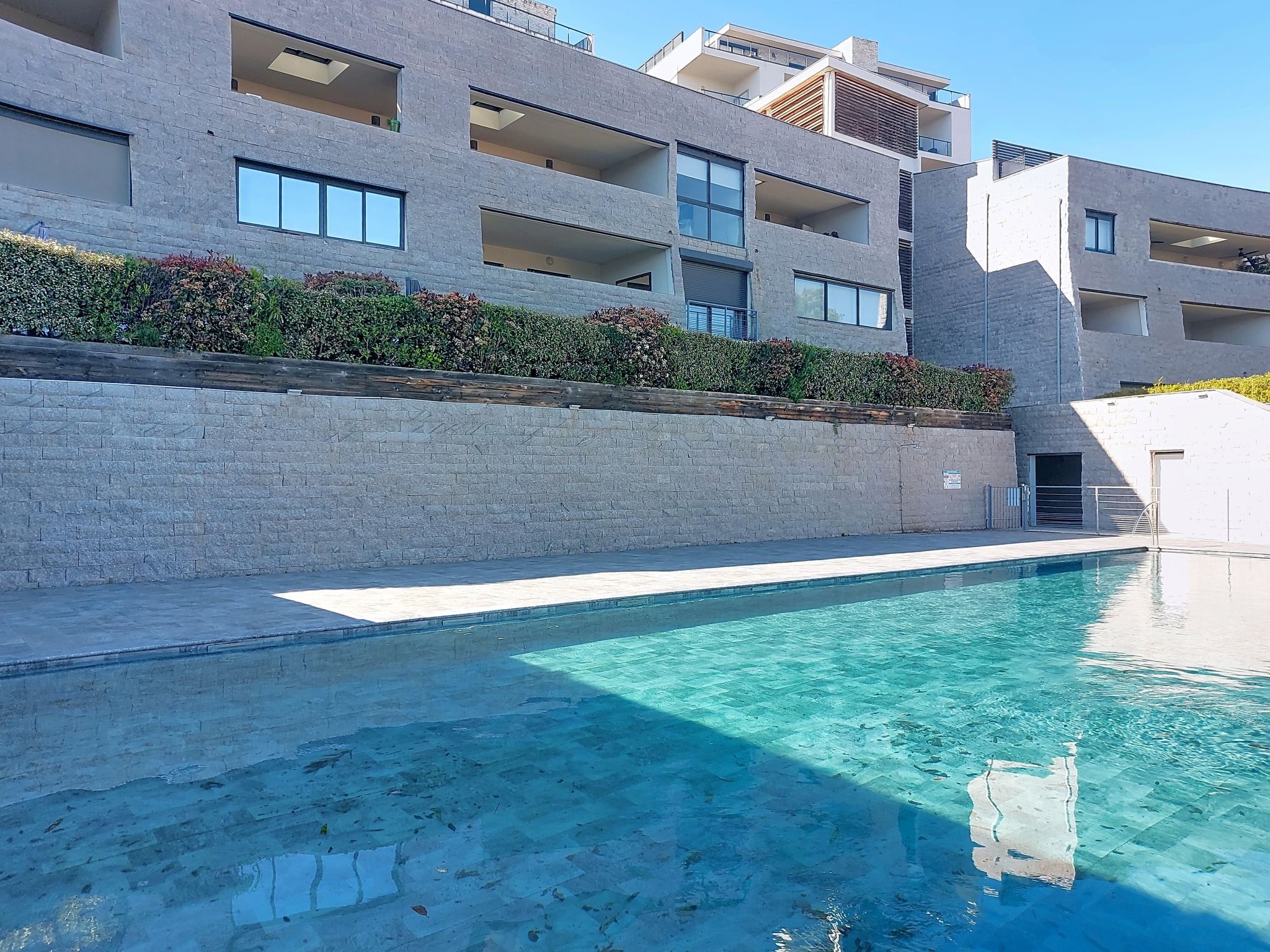 The Palazzu is composed of two buildings: the Bastion (lower part) and the Castle (upper part). Residence "Le Palazzu", built in 2016. 48 apartments in the residence. On the outskirts Porto-Vecchio, in an elevated position on a slope, 1 km from the sea, 10 km from the beach. For shared use: swimming pool (20 x 8 m, depth 160 cm, seasonal availability: 01.May. - 31.Oct.). Pool maintenance by the owner/gardener. In the complex: air conditioning. Steep motor access (via unmade road). Parking. Shop 1 km, grocery 400 m, supermarket 2.5 km, restaurant 400 m, bus stop 230 m, sandy beach 8 km. Marina 1 km, golf course (9 hole) 6 km, tennis 2 km, riding stable 3 km. Nearby attractions: Figari 21 km, Bonifacio 25 km, Solenzara 40 km, Iles Lavezzi. Hiking paths: L'Ospedale, Réserve Naturelle de Bonifacio. Please note: car recommended. Residence with electric gates.