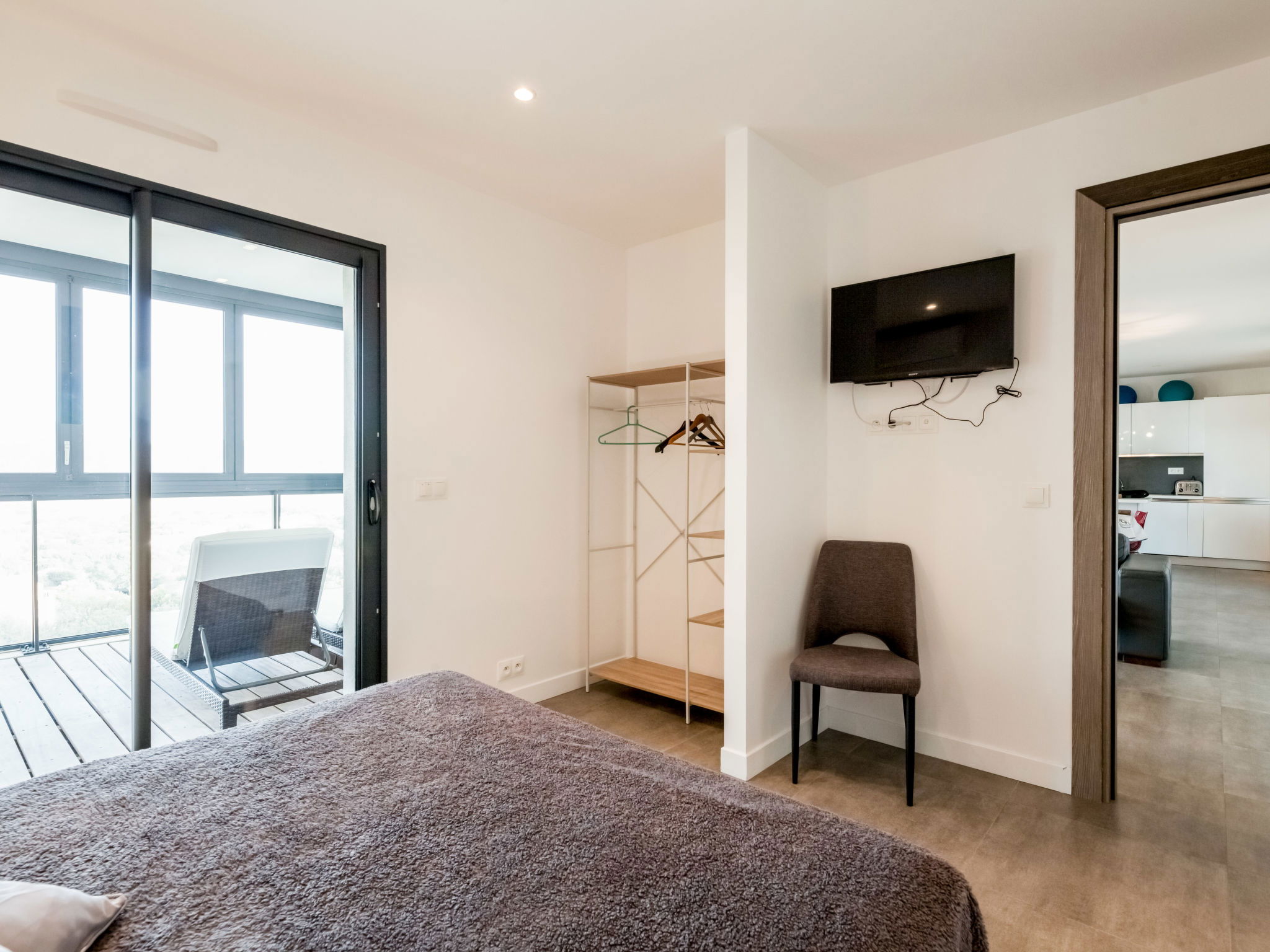 The Palazzu is composed of two buildings: the Bastion (lower part) and the Castle (upper part). Residence "Le Palazzu", built in 2016. 48 apartments in the residence. On the outskirts Porto-Vecchio, in an elevated position on a slope, 1 km from the sea, 10 km from the beach. For shared use: swimming pool (20 x 8 m, depth 160 cm, seasonal availability: 01.May. - 31.Oct.). Pool maintenance by the owner/gardener. In the complex: air conditioning. Steep motor access (via unmade road). Parking. Shop 1 km, grocery 400 m, supermarket 2.5 km, restaurant 400 m, bus stop 230 m, sandy beach 8 km. Marina 1 km, golf course (9 hole) 6 km, tennis 2 km, riding stable 3 km. Nearby attractions: Figari 21 km, Bonifacio 25 km, Solenzara 40 km, Iles Lavezzi. Hiking paths: L'Ospedale, Réserve Naturelle de Bonifacio. Please note: car recommended. Residence with electric gates.