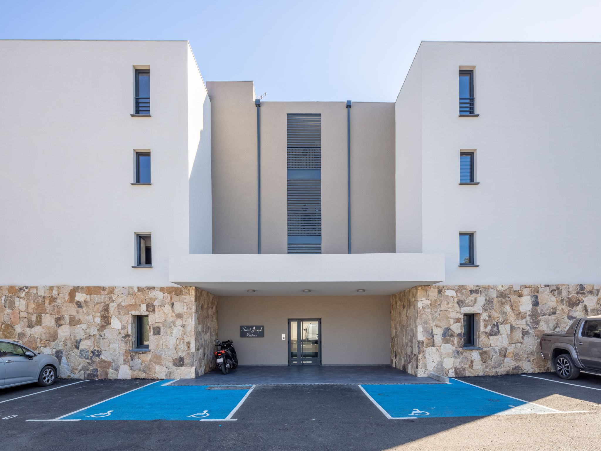 Beautiful residence "St Joseph", 3 storeys, built in 2020. 12 apartments in the residence. On the outskirts Porto Vecchio, 2 km from the sea. Parking at the house. Shop 500 m, grocery 1 km, supermarket 1 km, restaurant 1 km, bakery 1 km, 5 minute walk to the centre, bus stop 220 m, sandy beach "Santa Giulia" 7 km. Sports harbour 2 km, riding stable 2 km. Nearby attractions: Figari 19 km, Bonifacio 27 km, Solenzara 40 km, Iles Lavezzi. Well-known lakes can easily be reached: Lac de l'Ospedale. Please note: car recommended.