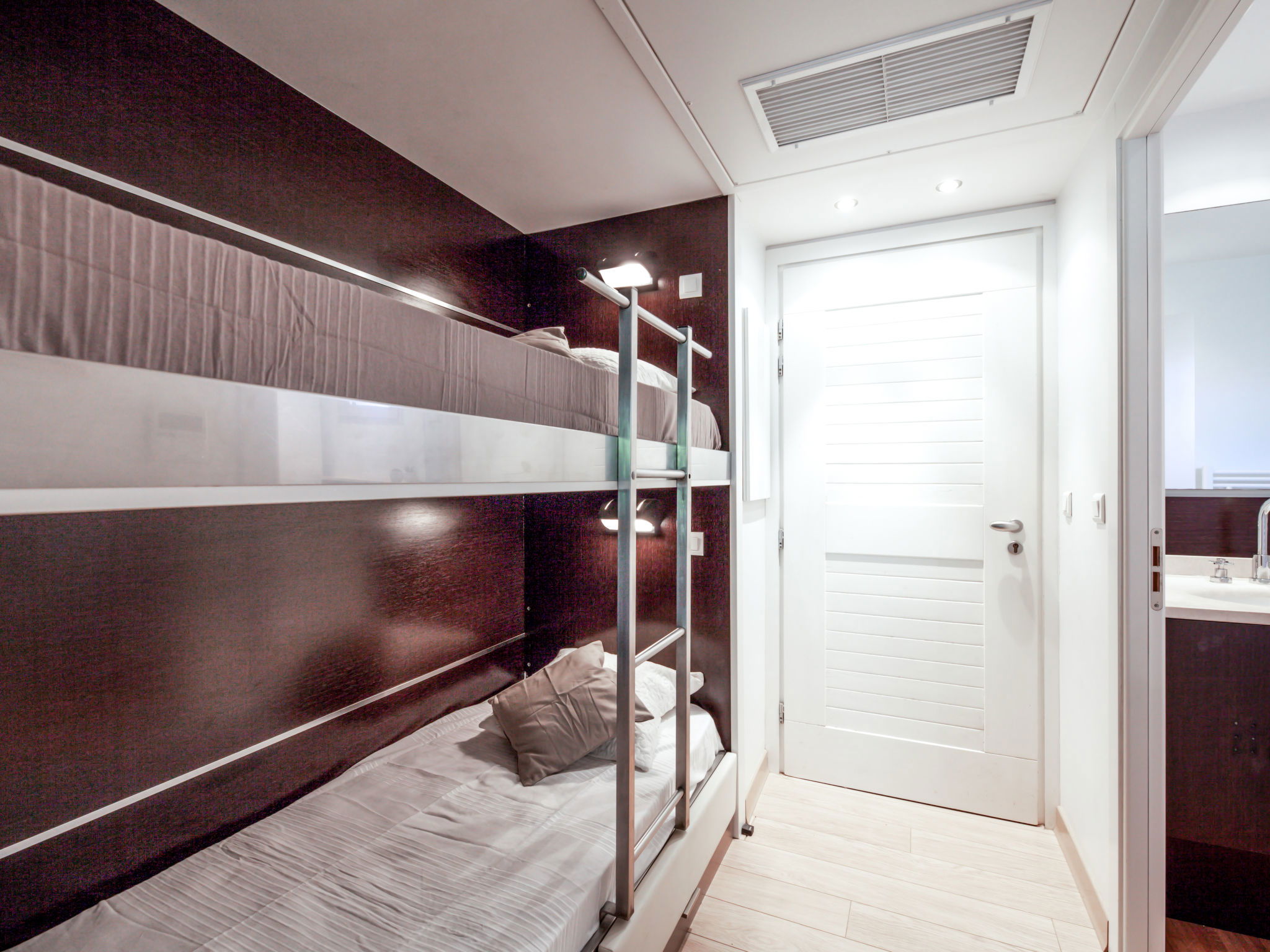 2-room apartment 42 m2, on the ground floor. Beautiful and modern furnishings: living/dining room with TV (flat screen). 1 room with 1 french bed (160 cm, length 200 cm). Entrance hall with 1 x 2 bunk beds (90 cm, length 190 cm). Kitchenette (oven, dishwasher, 2 ceramic glass hob hotplates, toaster, kettle, microwave, freezer, electric coffee machine). Shower/WC. Electric heating, air-conditioning. Terrace 12 m2, patio 20 m2. Terrace furniture, deck chairs (1). Facilities: washing machine, hair dryer. Internet (WiFi, free). Please note: non-smokers only. Smoke alarm. 2A247000812B1