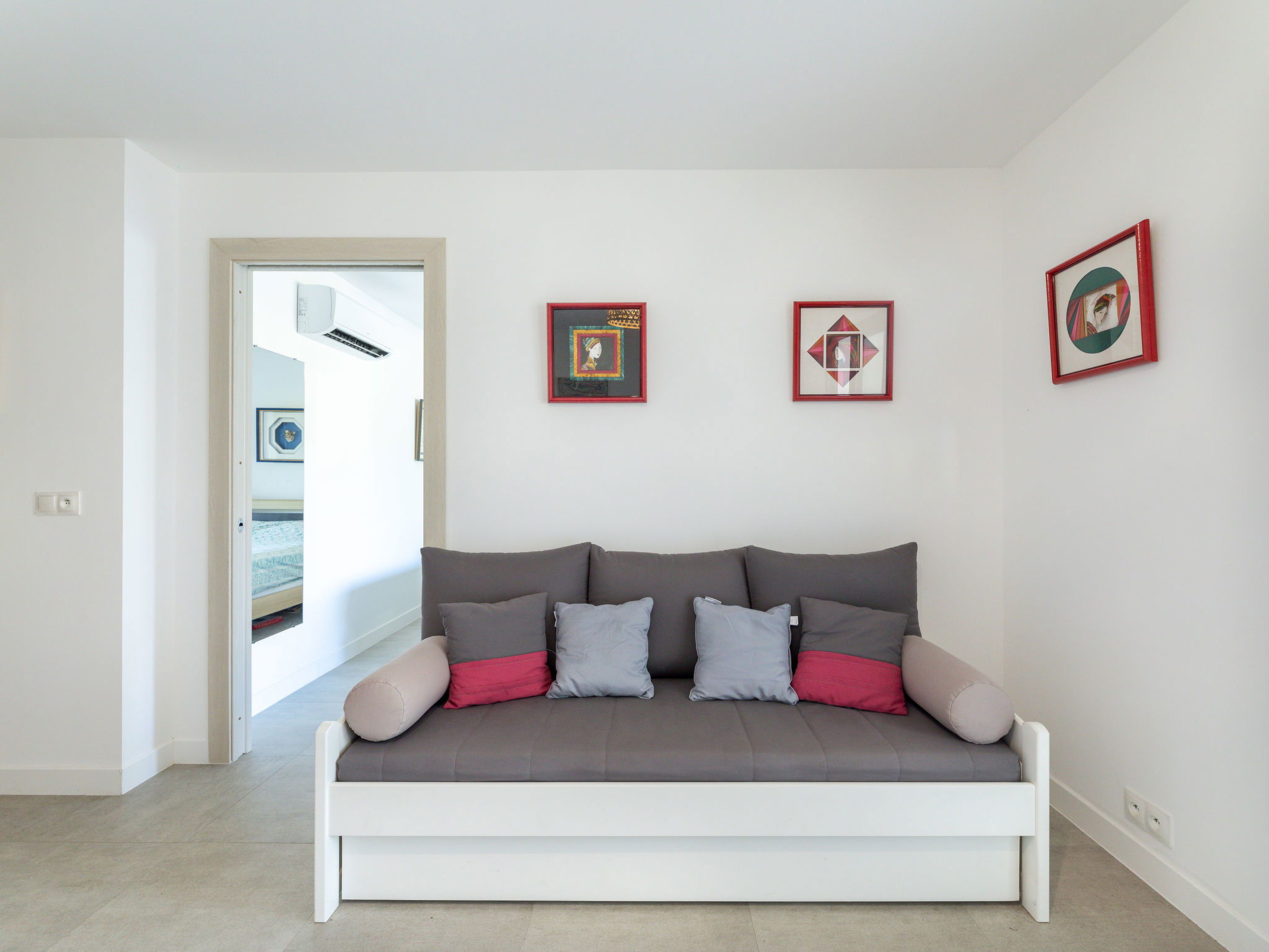 "Bastion", 4-room apartment 80 m2, on the ground floor. Comfortable furnishings: living room with 1 sofabed (90 cm, length 190 cm), TV (flat screen). Exit to the terrace. Dining room. Exit to the terrace. 1 room with 1 double bed (2 x 80 cm, length 200 cm). 1 room with 1 french bed (160 cm, length 200 cm). Open kitchen (3 hot plates, oven, dishwasher, toaster, kettle, microwave, electric coffee machine, cooking island). 2 showers/WC. Electric heating, air-conditioning. Terrace 29 m2, patio 20 m2. Terrace furniture, deck chairs (2). Facilities: washing machine. Internet (WiFi, free). Garage space n 67. Please note: telephone for incoming calls only, non-smokers only. Smoke alarm.
