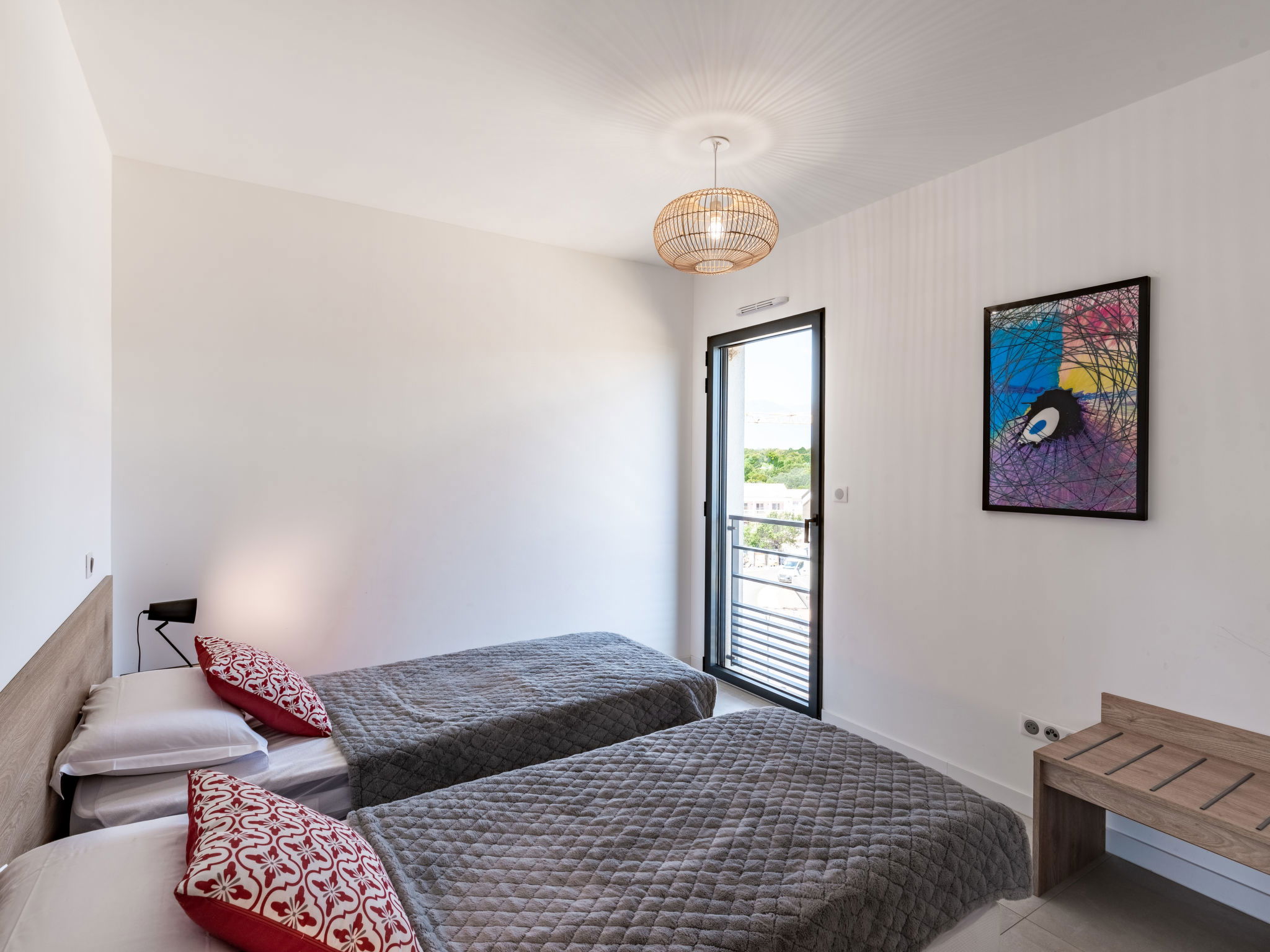 Beautiful residence "Stanatura", 5 storeys, built in 2020. 50 apartments in the residence. On the outskirts, 600 m from the centre of Porto Vecchio, 2 km from the sea, 6 km from the beach. In the complex: lift. Parking. Shop, grocery 50 m, supermarket 1 km, restaurant 200 m, bakery 1 km, bus stop 140 m, sandy beach "Palombaggia" 6 km. Sports harbour 2 km, golf course (9 hole) 7 km, riding stable 2 km. Nearby attractions: Figari 18 km, Bonifacio 26 km, Solenzara 39 km, Iles Lavezzi. Well-known lakes can easily be reached: Lac de l'Ospedale. Please note: car recommended. Heliport nearby.