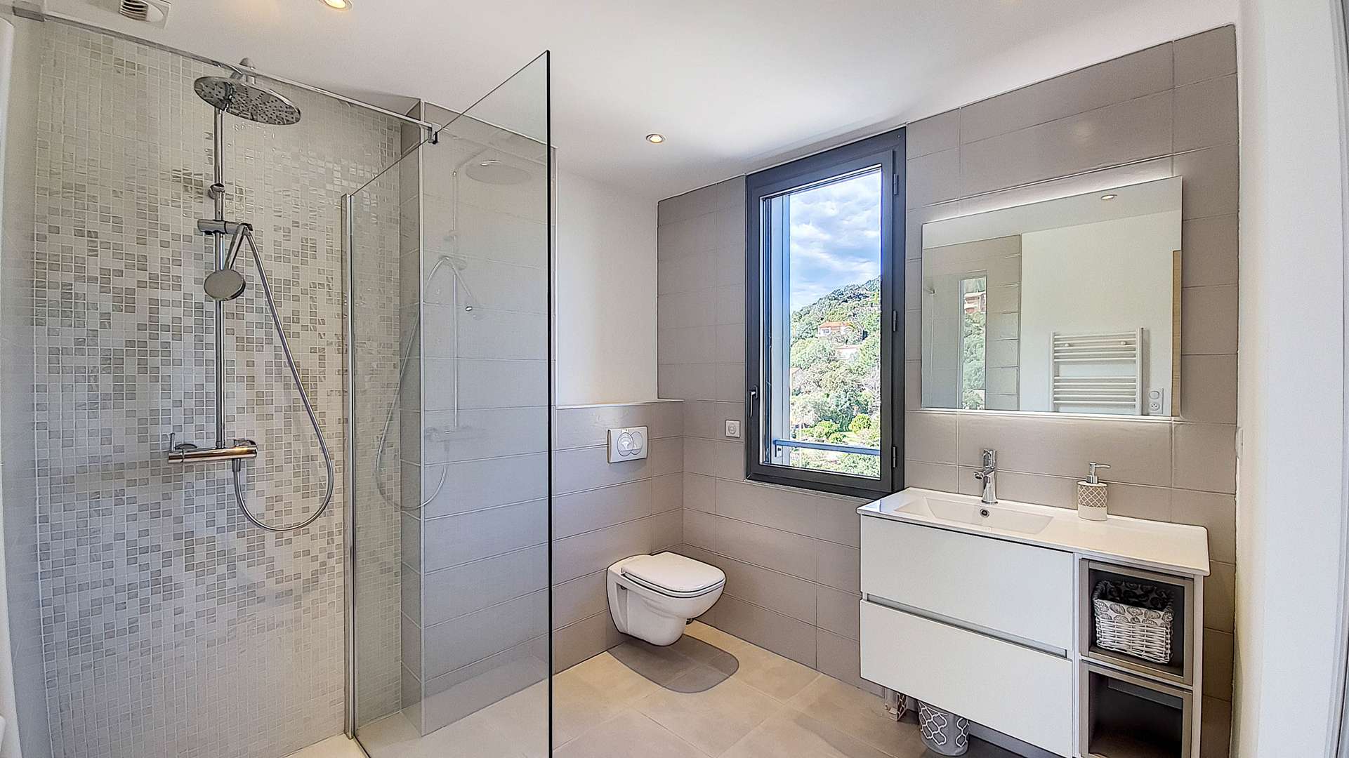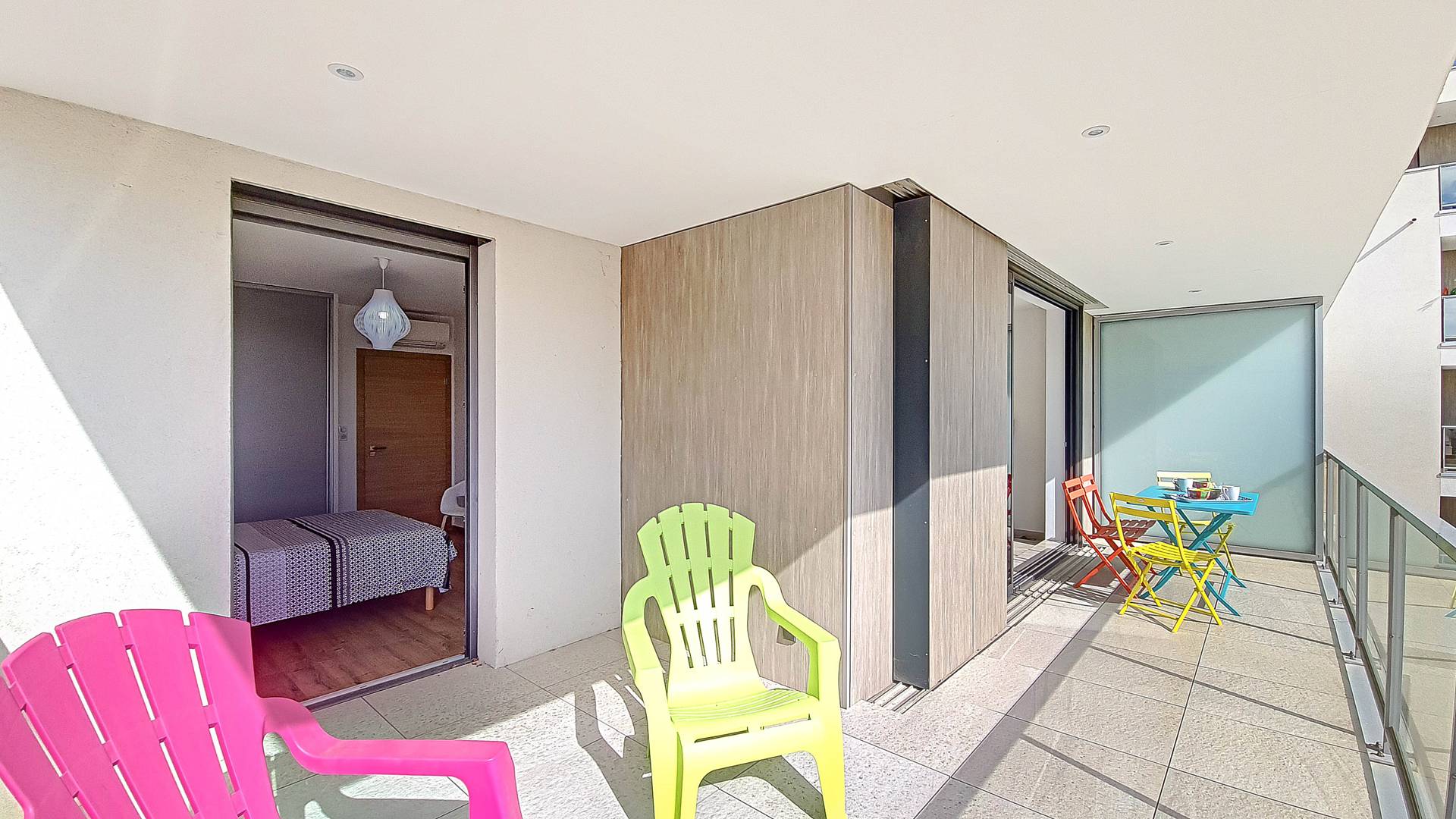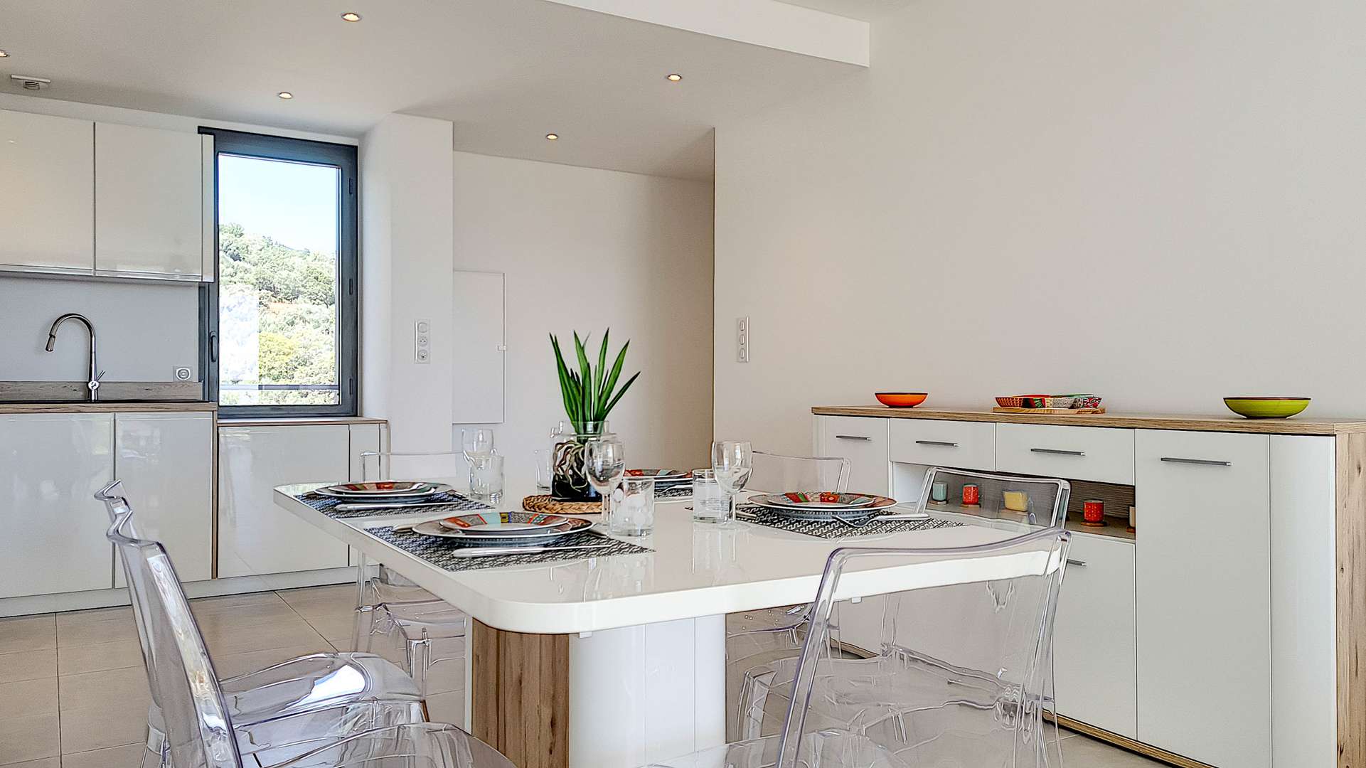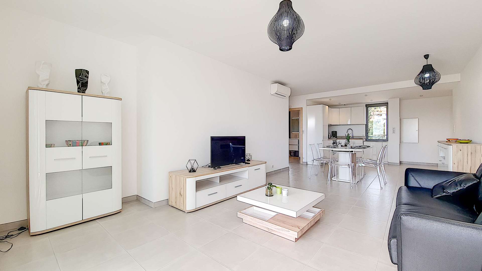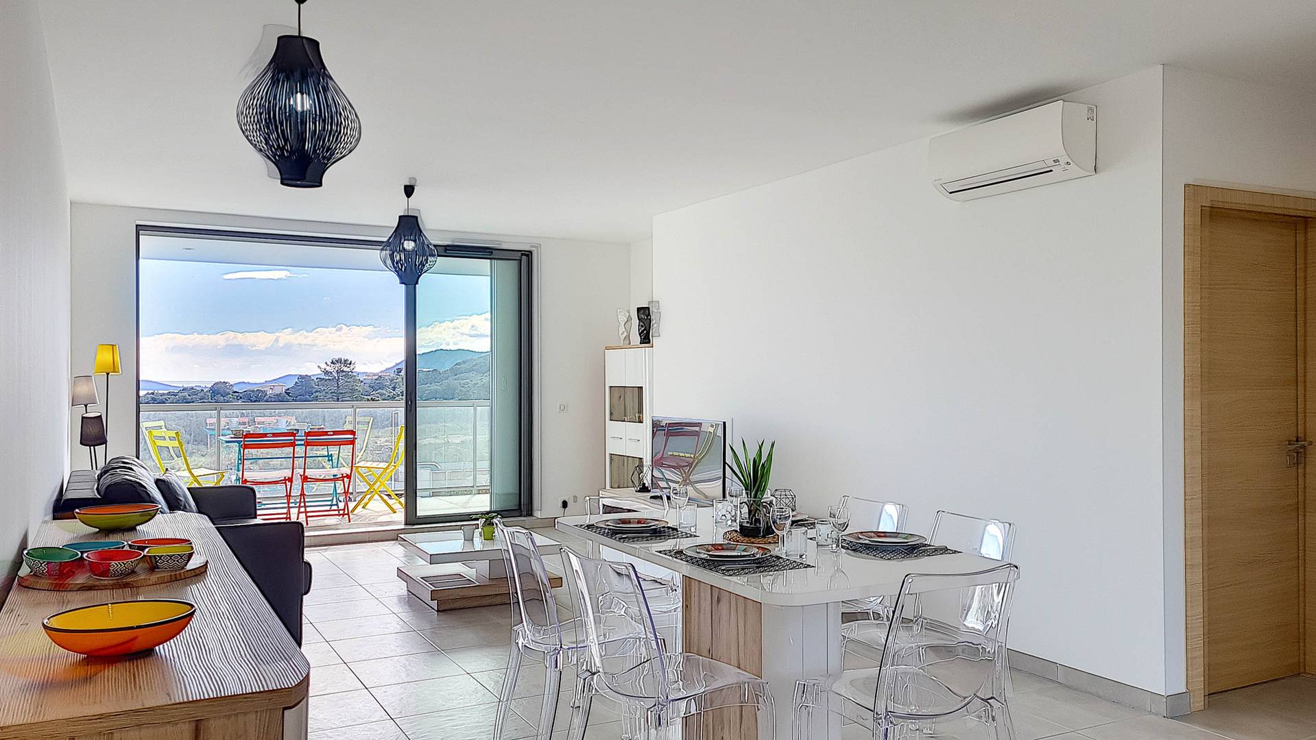This apartment has a lovely living room going out to a terrace with a sea view.