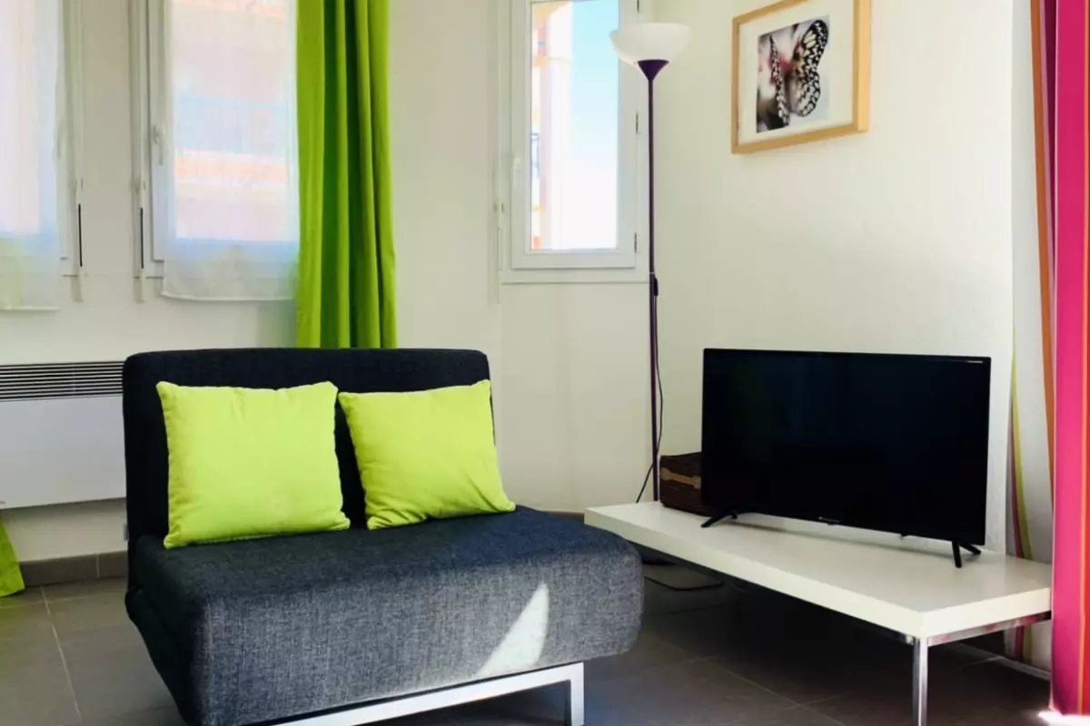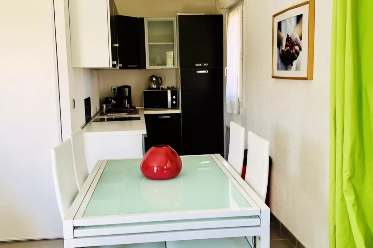 The accommodation is bright, charming, cozy and is composed of a main room with a convertible sofa, a beautiful living space opening onto a fully equipped kitchen, a shower with WC and can accommodate up to 3 people.