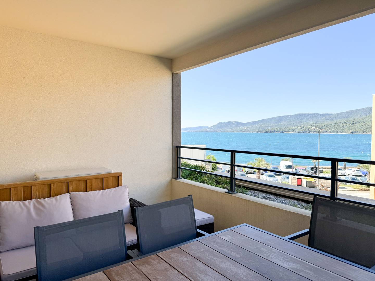 A furnished terrace overlooking the sea,