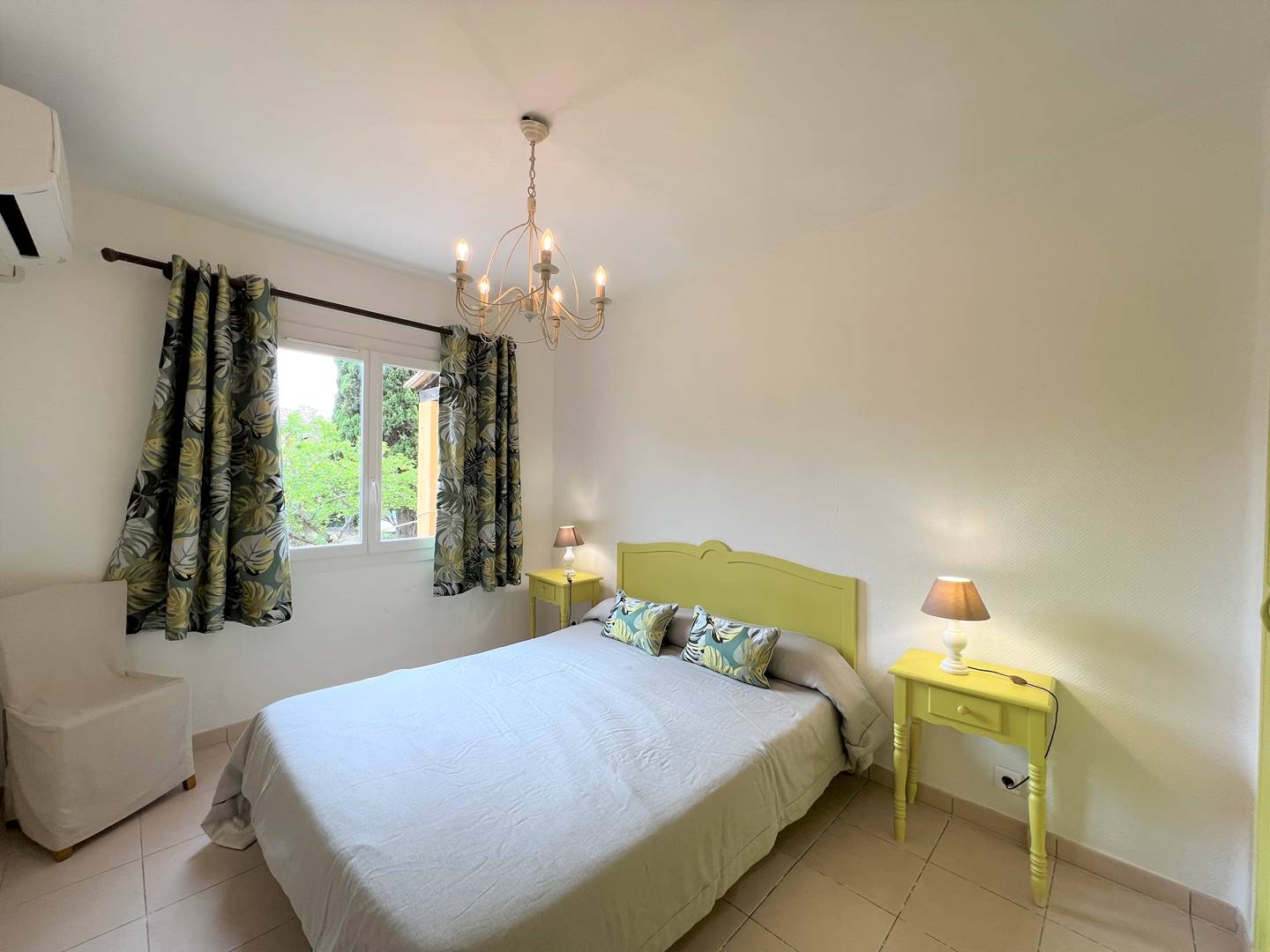 The terrace is furnished with tables, garden chairs, deckchairs and a barbecue. This accommodation consists of a bedroom with a double bed of 160 x 200 cm, a second bedroom with twin beds of 90 x 200 cm, a living room with a sofa convertible into a double bed (sleeping 160 x 200 cm wide), a single bed in an alcove located in the hall between the living room and the bedrooms, a bathroom with washing machine and separate toilet.