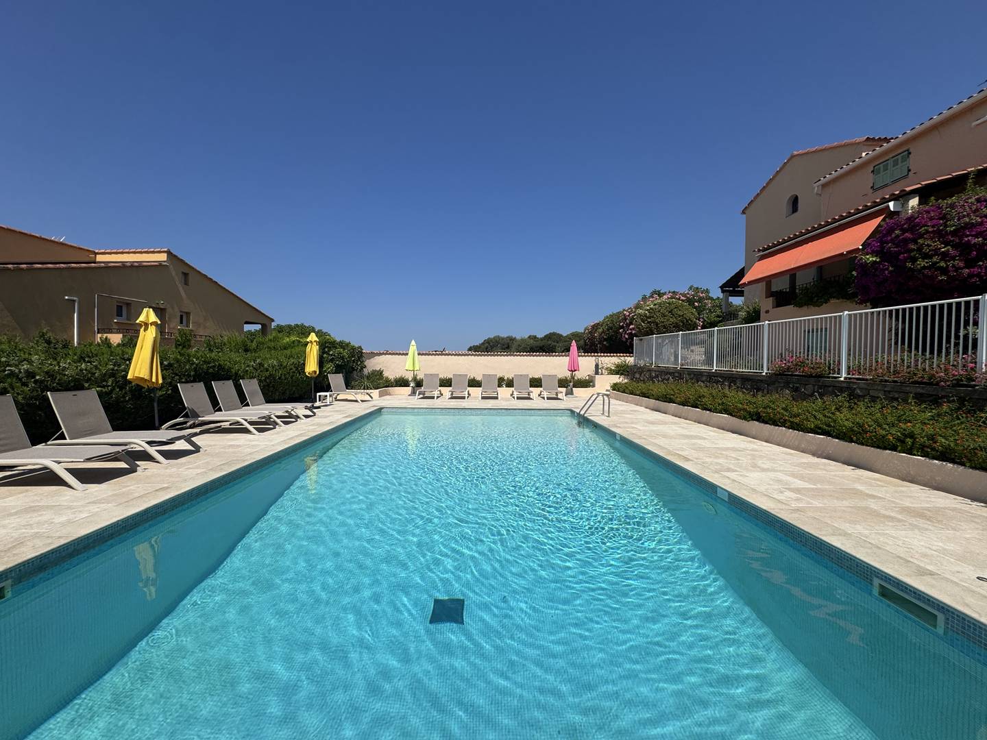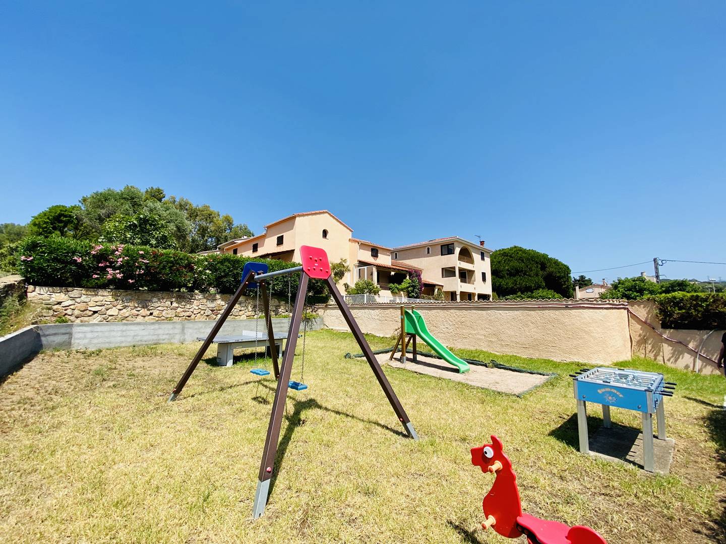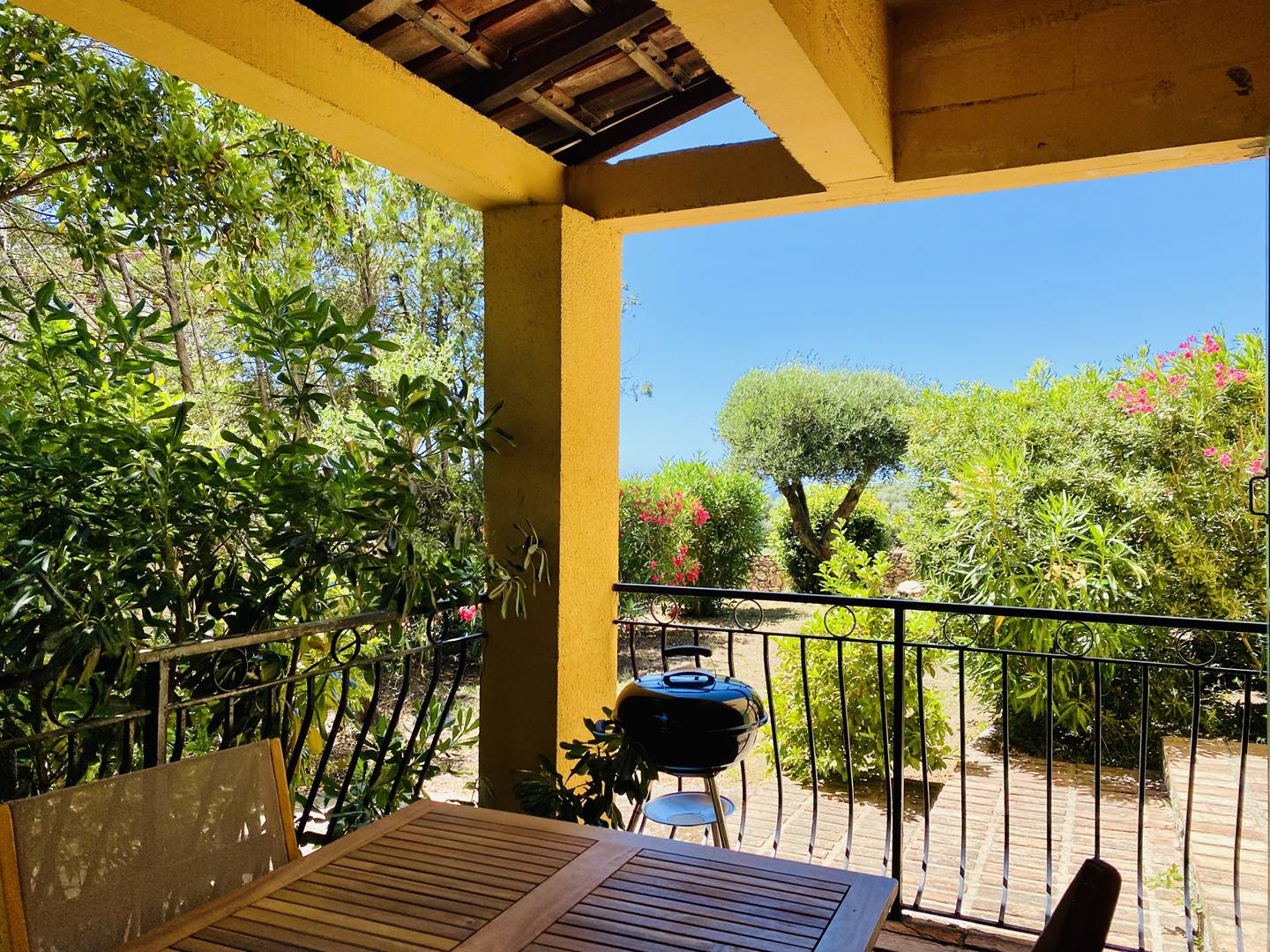 The Marie Diane residence is a set of furnished accommodation located in Propriano in southern Corsica. Its many facilities such as its swimming pool and its playground for children make it an ideal place for holidays with family or lovers. Laurier Rose' is a comfortable apartment on the ground floor, in a set of 4 apartments, this charming 3-room apartment is rented for 2 to 5 people. It benefits from a very large terrace, partly covered, overlooking a wooded and private garden.
