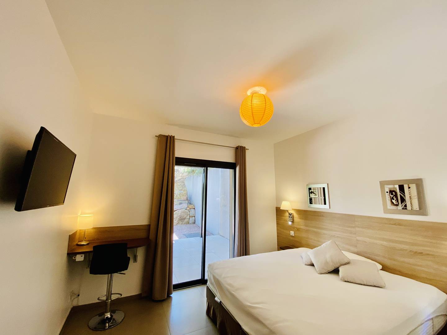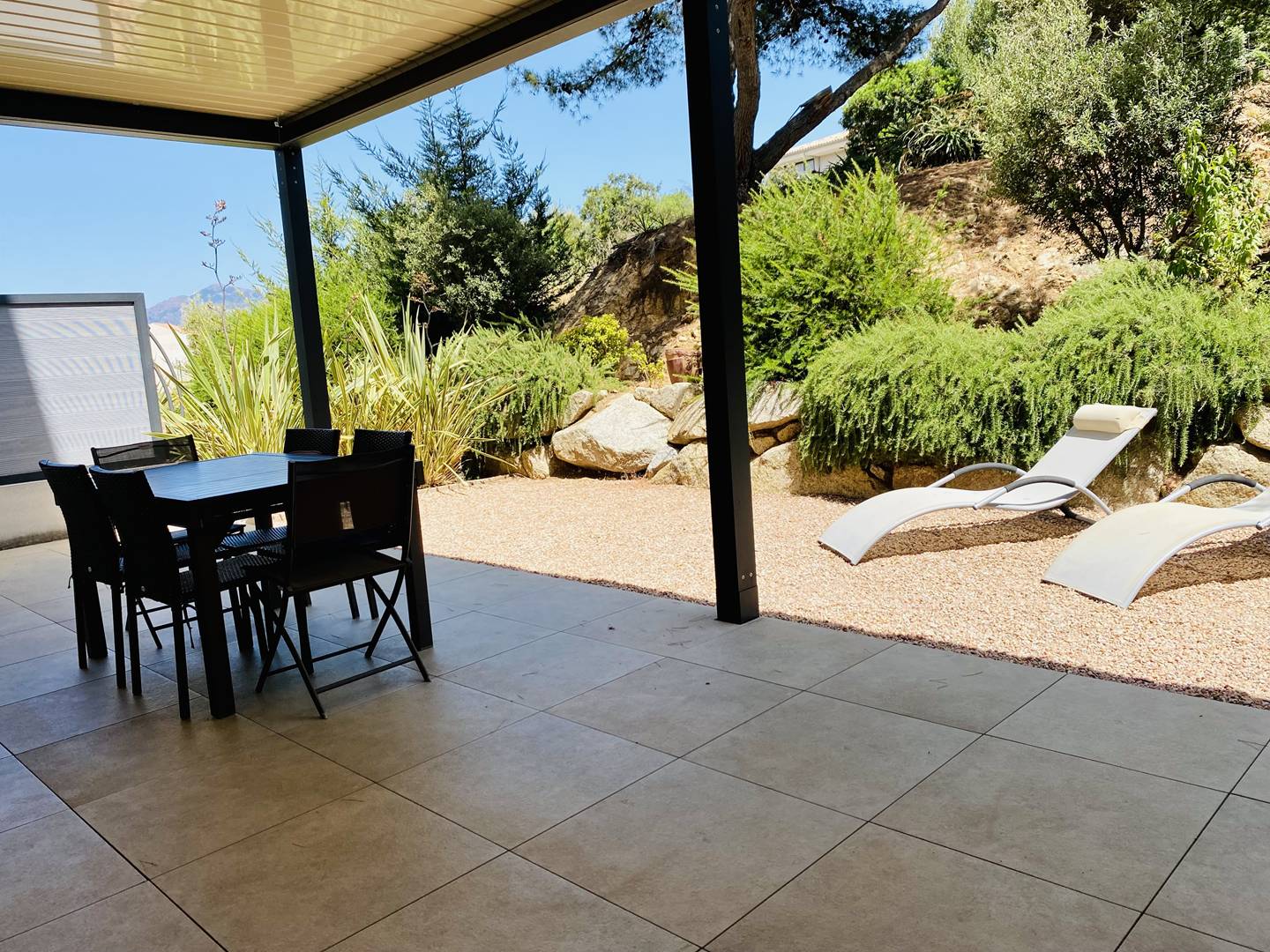 1 bedroom apartment in the city center near the beach Located just a few meters from the town center of Propriano and the beaches, come and stay in this beautiful two-room apartment, fully equipped for your comfort. It is composed as follows: - a beautiful bedroom with king size bed, large wall cabinet and office area, - a living room, with open kitchen, high table, lounge area - a large bathroom with Italian shower and WC, - a 29m2 terrace covered with a motorized pergola allowing protection from the sun but also from the opposite and a garden the apartment has air conditioning, a wifi connection, a secure parking space in the basement , washing machine and dishwasher. Linen is provided (sheets and towels). For your convenience, we do the cleaning after your departure, however we will ask you to put away any furniture that has been moved, empty the bins, wash and put away the dishes. Otherwise 100 € could be deducted from your deposit. Animals and parties are not allowed in this accommodation. When you arrive, you will have to leave a deposit in the amount of 500 € and pay the tourist tax, depending on the booking platform. Arrivals and departures outside the contractual hours are possible independently, consult us for more details.