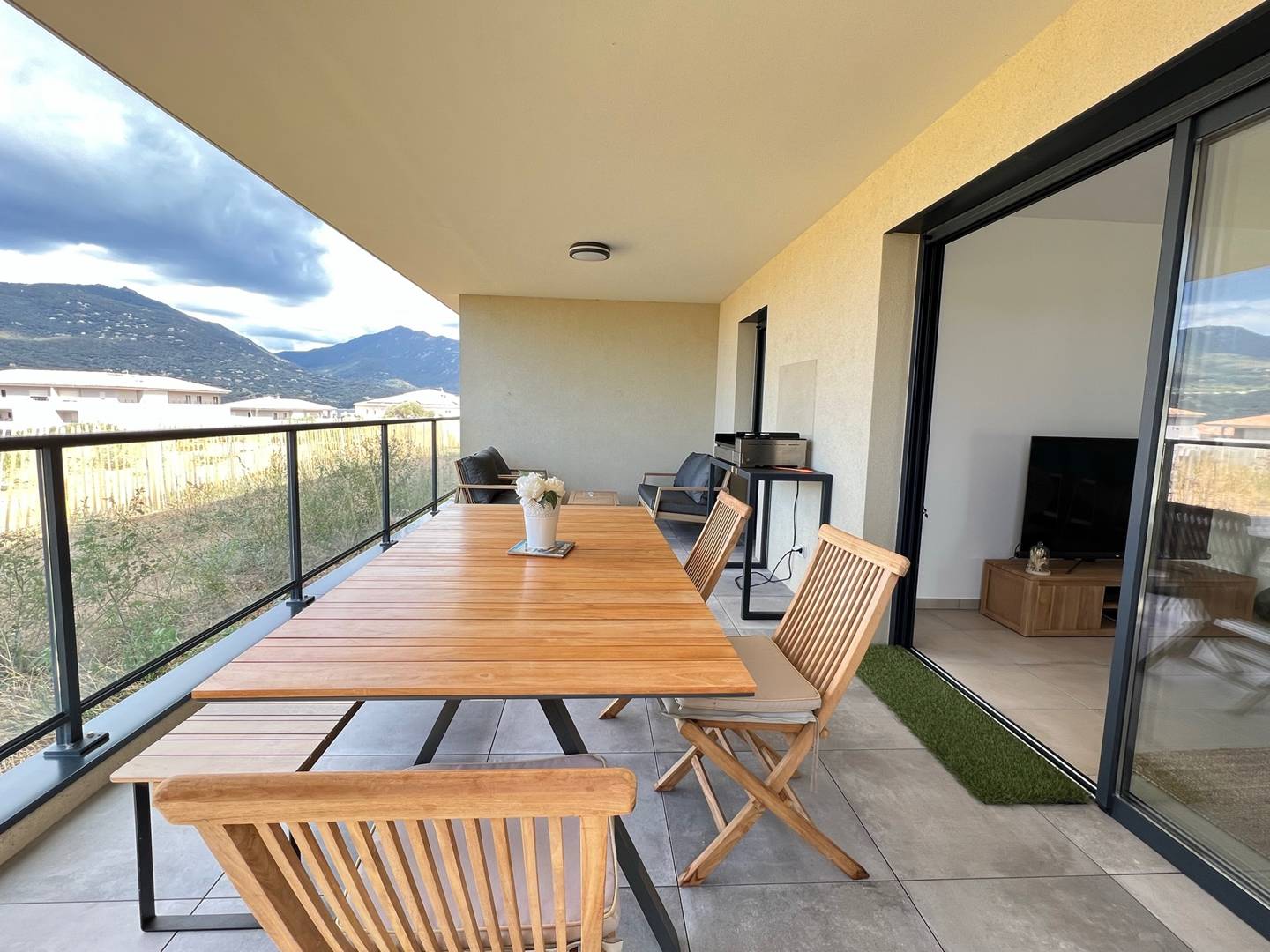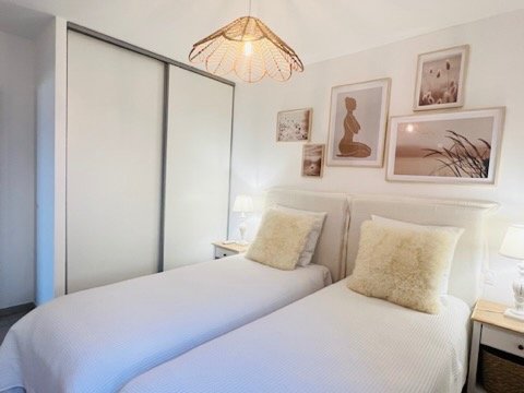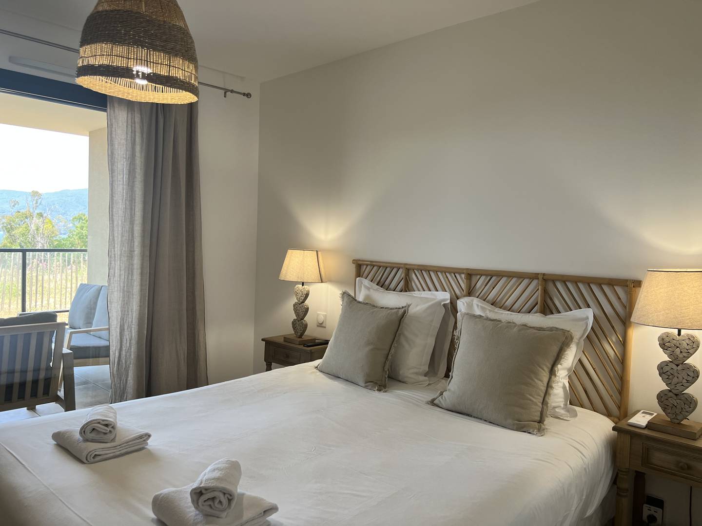 Nice apartment for 4 people near the city center Located a few minutes walk from the city center of Propriano, amenities and the beaches, this very beautiful apartment with elegant decoration is composed as follows: A beautiful fully equipped kitchen open to the living room , A bedroom with a 160 cm double bed, A second bedroom with two 80 cm single beds that can be pushed together to form a double bed (on request). A bathroom with shower and WC and a separate WC A laundry room. You will appreciate its beautiful terrace with an area of 21m2, furnished with a lounge area and a dining table offering a lovely view of the sea. The apartment is fully air-conditioned, it has free WIFI access and a parking space. private. Household linen is provided (sheets and towels). For your comfort we carry out the cleaning after your departure, on the other hand we will ask you to arrange the furniture possibly moved, to empty the dustbins, to wash and arrange the crockery. Failing this, €100 could be deducted from your deposit. Pets and parties are not allowed in this accommodation. Upon your arrival you will have to deposit a deposit of €700 and pay, depending on the booking platform, the tourist tax. Arrivals and departures outside the contractual hours are possible independently, contact us for more details.