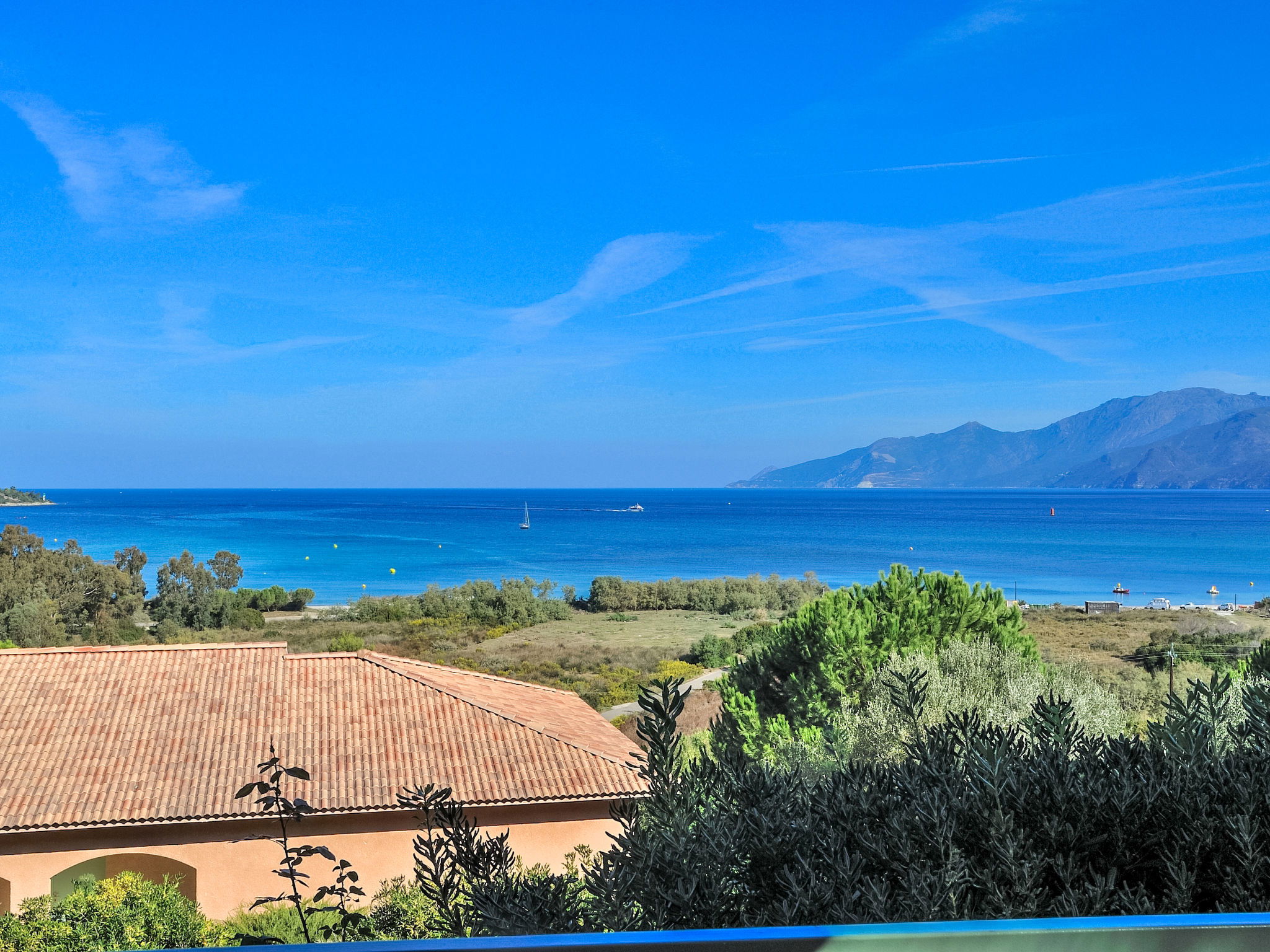 "Suarella", 3-room apartment 48 m2. Practical furnishings: living/sleeping room with 1 double sofabed, dining table and TV can be hired. 1 room with 1 french bed. Exit to the balcony. 1 room with 2 beds. Kitchenette (2 hot plates, electric coffee machine). Bathroom, sep. WC. No heating option. Balcony. Balcony furniture. Beautiful view of the sea and St. Florent. Facilities: baby cot for up to 2 year olds. Please note: non-smokers only. Maximum 1 pet/ dog allowed. Smoke alarm. Offer by a commercial proprietor according to Art. 155, IV, CGI