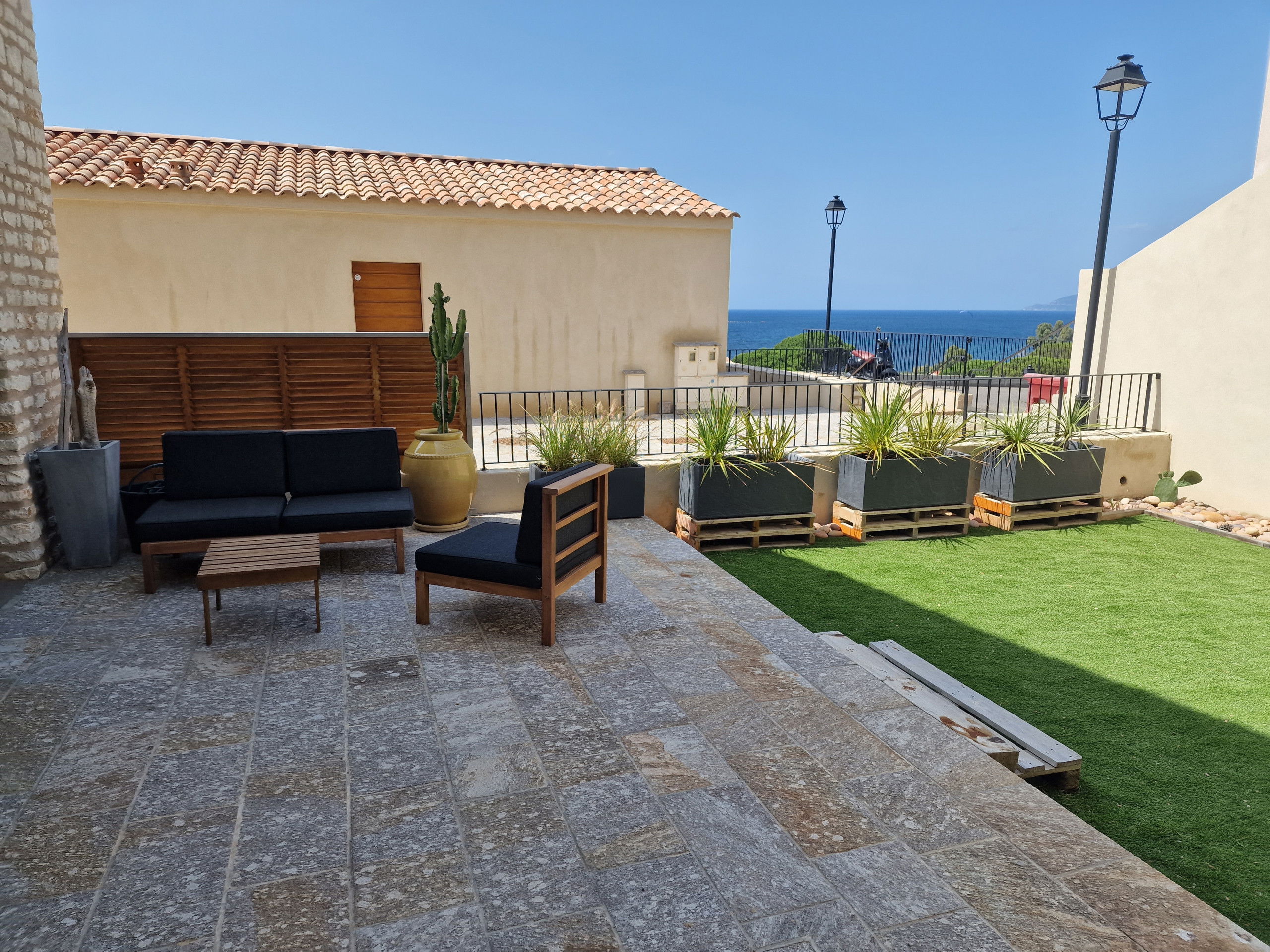 The apartment in Saint-Florent has 1 bedrooms and has capacity for 4 people. The apartment is homely, is a new build, and is 48 m². It has views of the sea. The house is situated in a residential neighborhood next to the sea.The is equipped with the following items: garden, fenced garden, 40 m² terrace, iron, hair dryer, air conditioning (hot/cold), air conditioning throughout the house, open-air parking in the adjoining building, 1 TV.In the induction open plan kitchen, refrigerator, oven, freezer, washing machine, dishwasher, dishes/cutlery, kitchen utensils, coffee machine, toaster and kettle are provided.