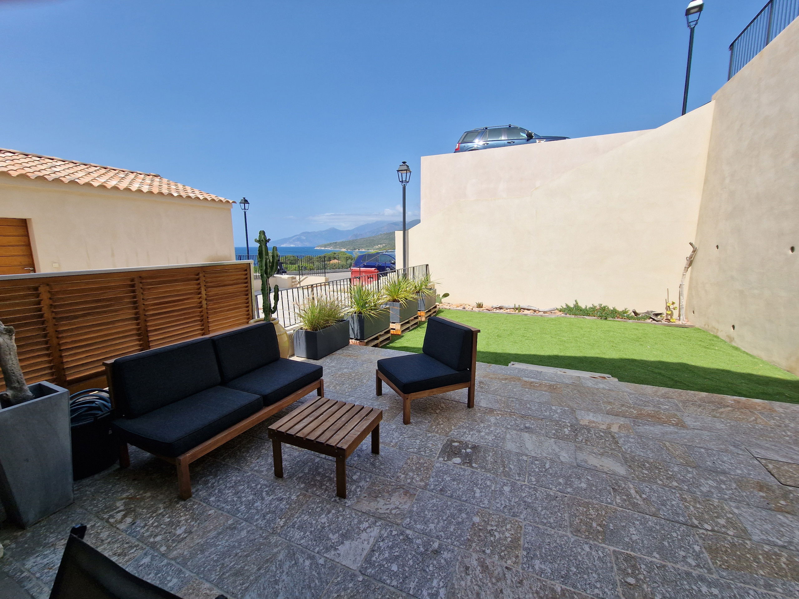 The apartment in Saint-Florent has 1 bedrooms and has capacity for 4 people. The apartment is homely, is a new build, and is 48 m². It has views of the sea. The house is situated in a residential neighborhood next to the sea.The is equipped with the following items: garden, fenced garden, 40 m² terrace, iron, hair dryer, air conditioning (hot/cold), air conditioning throughout the house, open-air parking in the adjoining building, 1 TV.In the induction open plan kitchen, refrigerator, oven, freezer, washing machine, dishwasher, dishes/cutlery, kitchen utensils, coffee machine, toaster and kettle are provided.