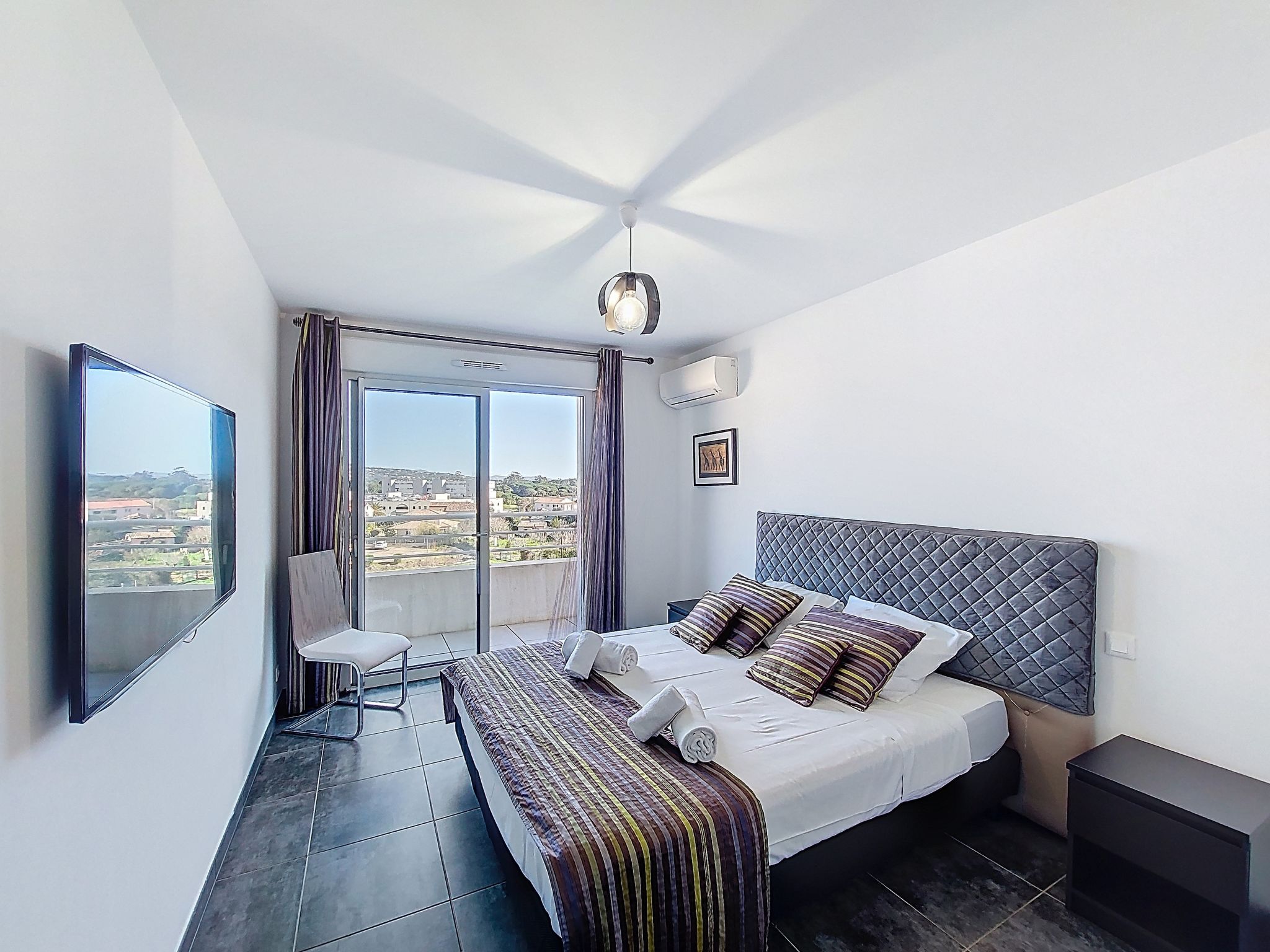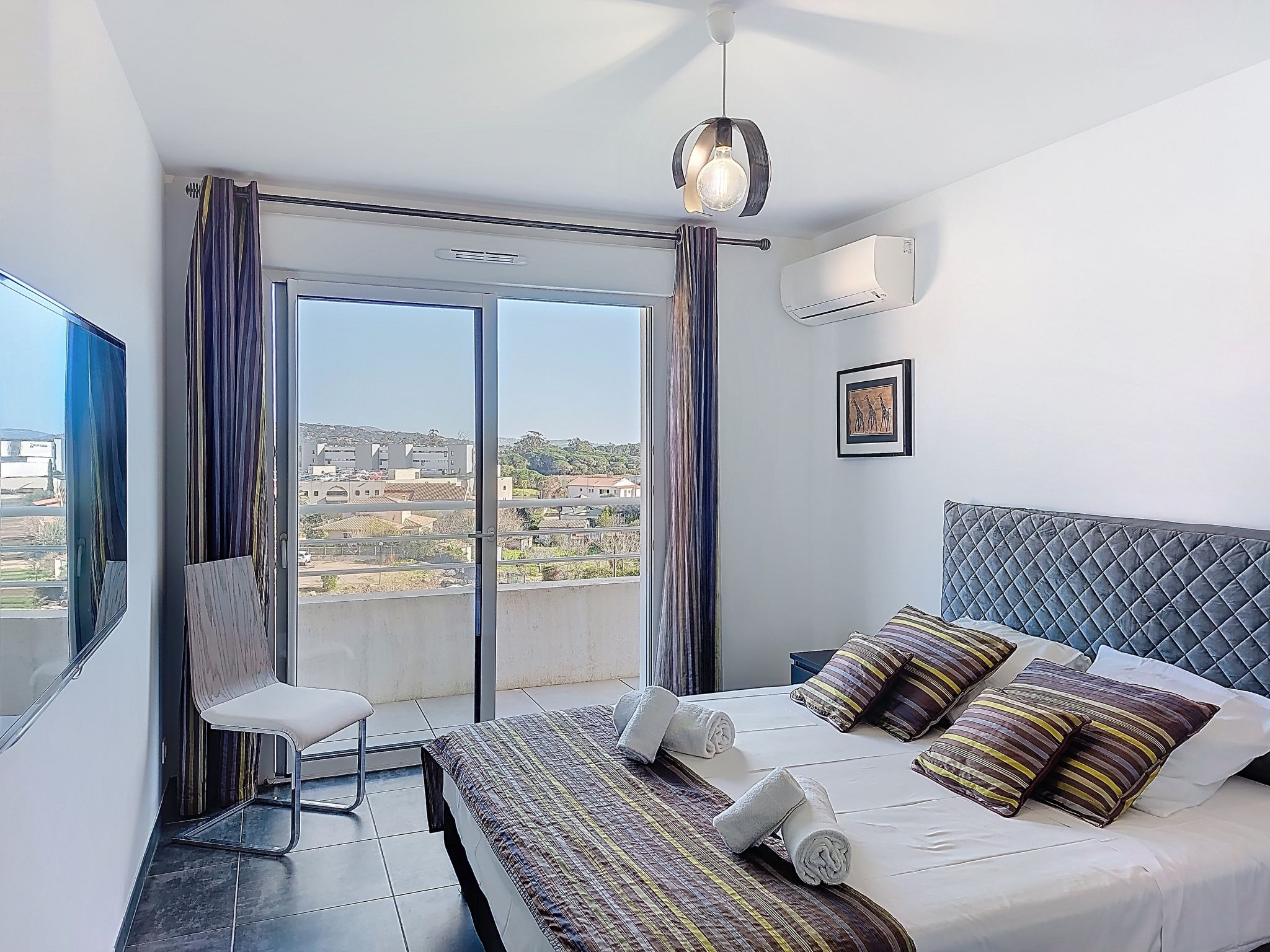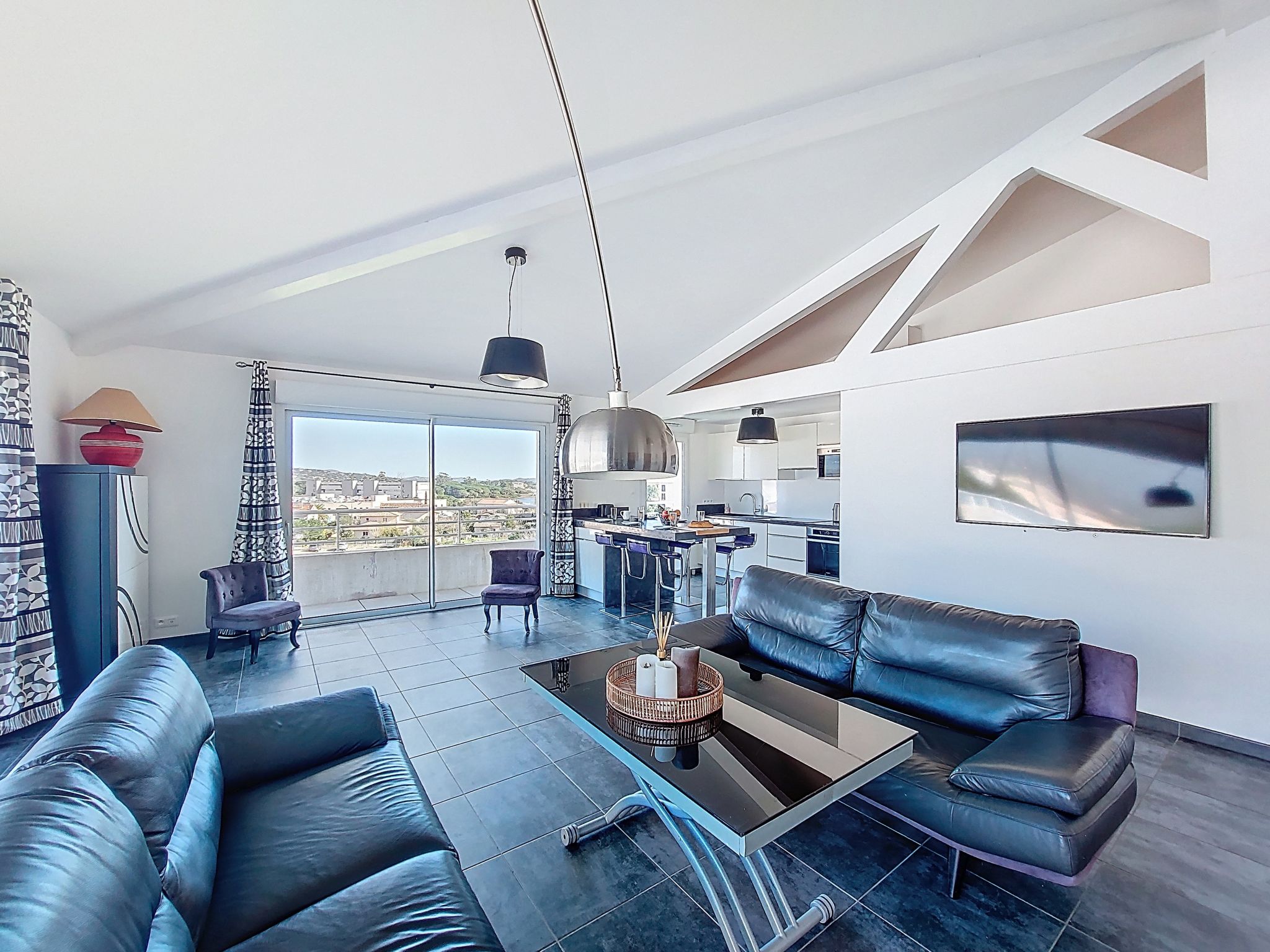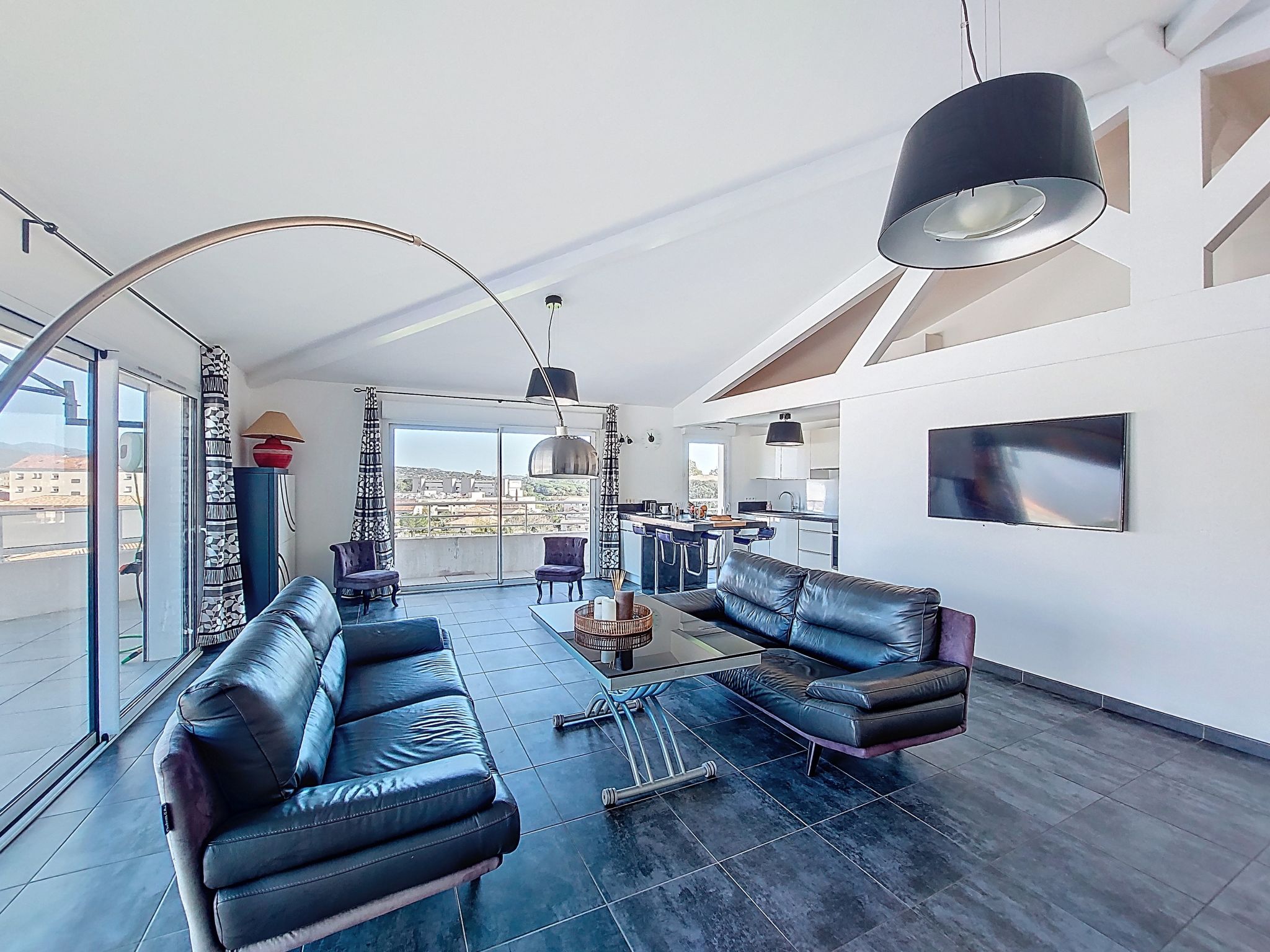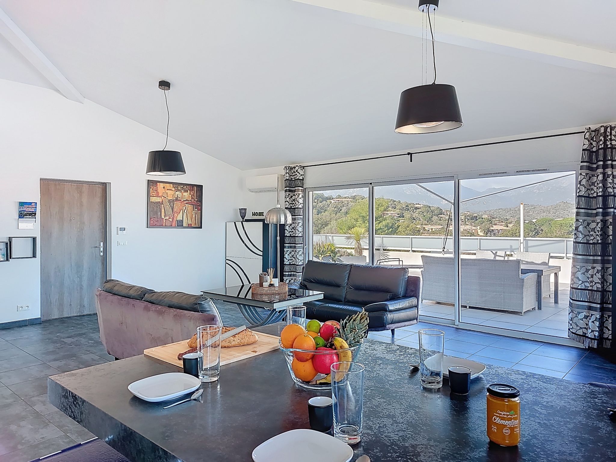 "La Boétie Penthouse", 4-room apartment 108 m2 on 3rd floor. Spacious, beautiful furnishings: large living/dining room with dining table and TV (flat screen). Exit to the terrace. 1 room with 1 french bed (160 cm, length 200 cm), TV (flat screen). 1 room with 1 french bed (160 cm, length 200 cm), TV (flat screen). Exit to the terrace. 1 room with 2 beds (80 cm, length 190 cm). Exit to the terrace. Open kitchen (oven, dishwasher, 4 induction hot plates, toaster, kettle, microwave, freezer, electric coffee machine, cooking island). 2 showers/WC, sep. WC. Electric heating, air-conditioning. Large terrace 80 m2 partly roofed. Terrace furniture, electric barbecue, deck chairs (4). View of the mountains and the countryside. Facilities: washing machine, iron, baby cot for up to 2 year olds, hair dryer. Internet (WiFi, free). Parking space n 1. Please note: non-smokers only. Smoke alarm. Offer by a private individual according to Art. 155, IV of CGI. 2A24700243305