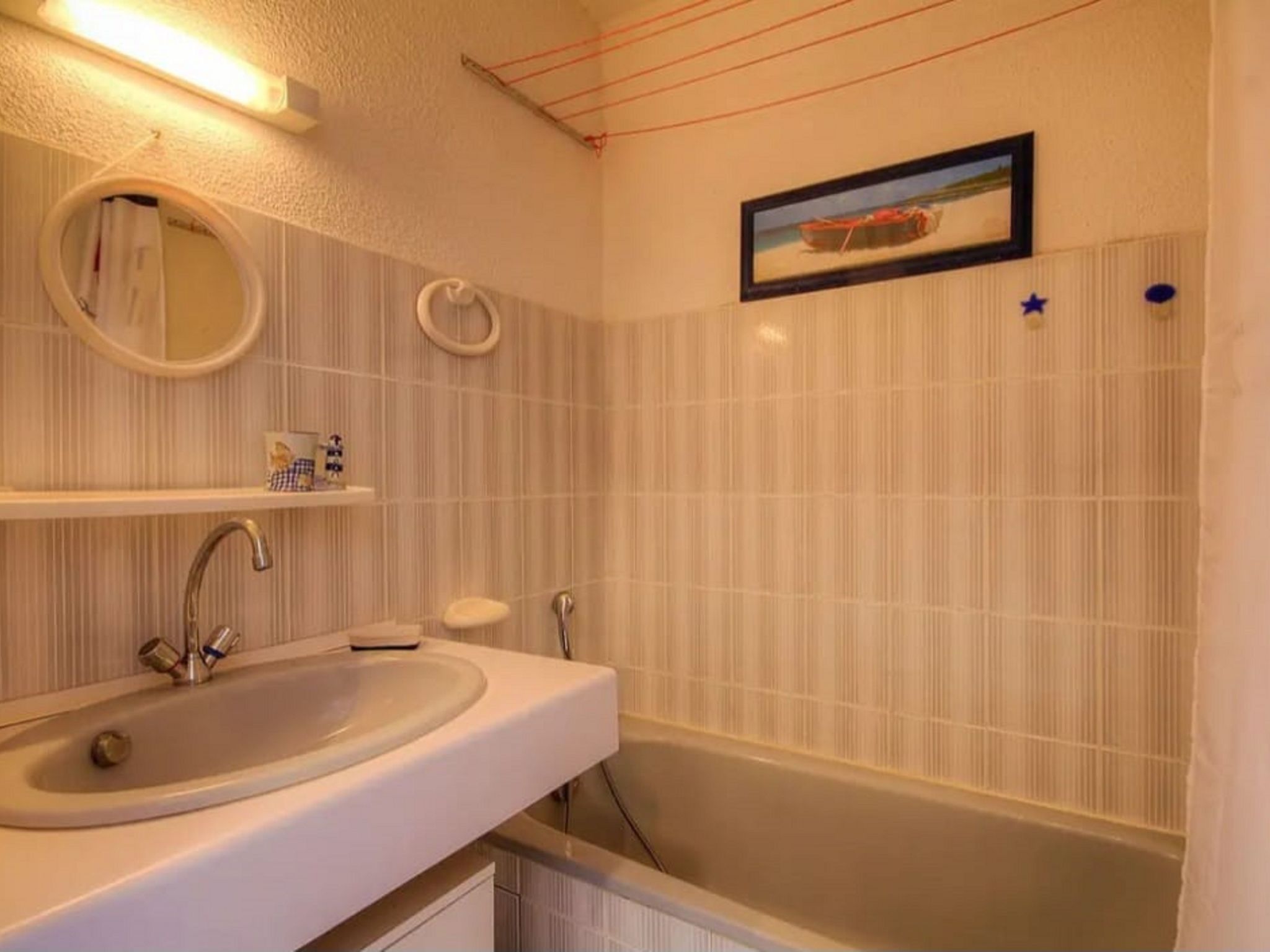The interior of the studio is fully equipped to meet all your needs. You'll find a bright, air-conditioned living area, a kitchenette with all the appliances you need to prepare your meals, a comfortable 140x190cm sofa bed for a good night's sleep, and a bathroom with a bathtub for your moments of relaxation.