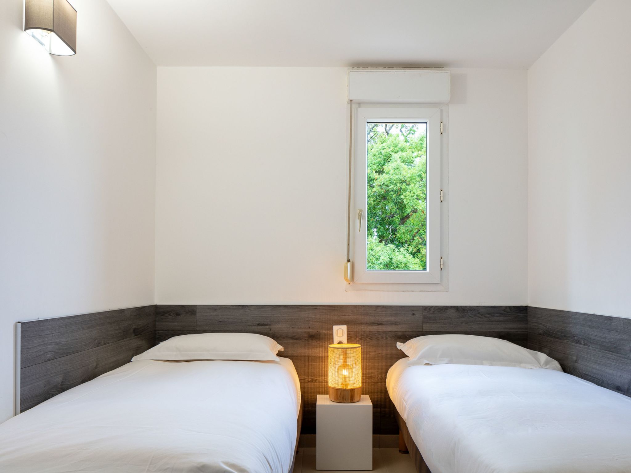 "MB4", 2-room apartment 35 m2. Bright, renovated in 2017, practical furnishings: living/sleeping room with 1 double sofabed, dining table and satellite TV. 1 room with 2 beds. Kitchenette (2 ceramic glass hob hotplates, microwave, freezer, electric coffee machine). Shower/WC. Electric heating, air-conditioning. Please note: suitable for families. Non-smokers only. Maximum 1 pet/ dog allowed. Smoke alarm. Offer by a commercial proprietor according to Art. 155, IV, CGI