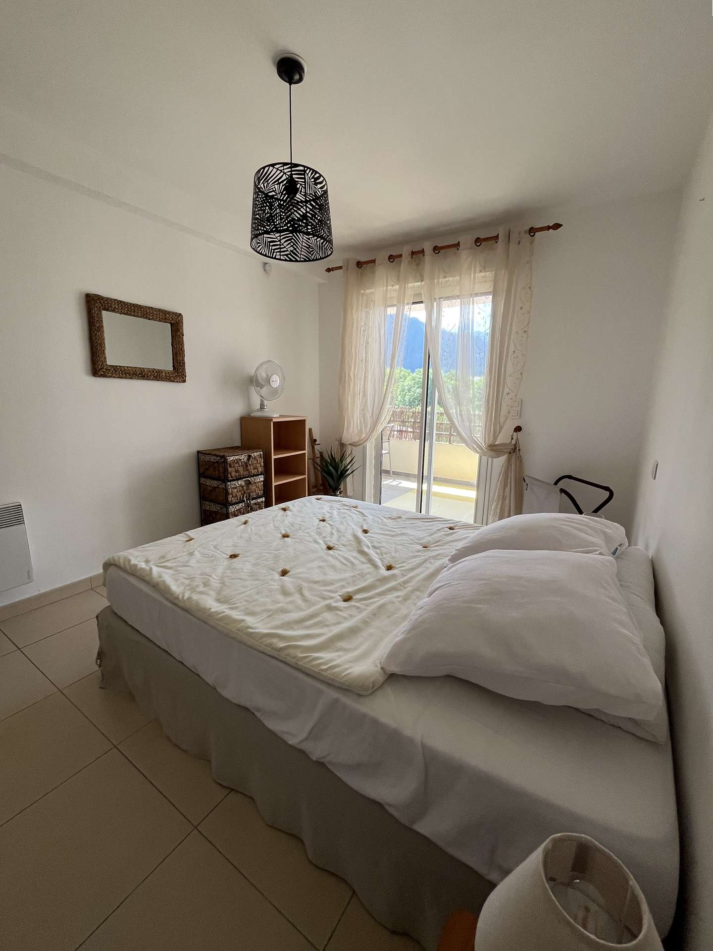 Au coeur de MORANI station balnéaire animée, dans une résidence récente, au 2ème étage avec ascenseur, joli 2 Pièces comprenant une entrée avec placard ( lave-linge et lave-vaisselle), un séjour climatisé avec canapé rapido convertible 2 couchages, télévision, un espace cuisine équipée, une chambre avec lit double et placard intégré, une salle d'eau avec douche et WC,