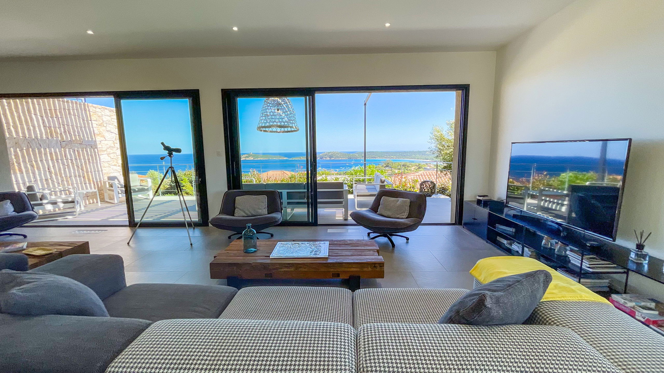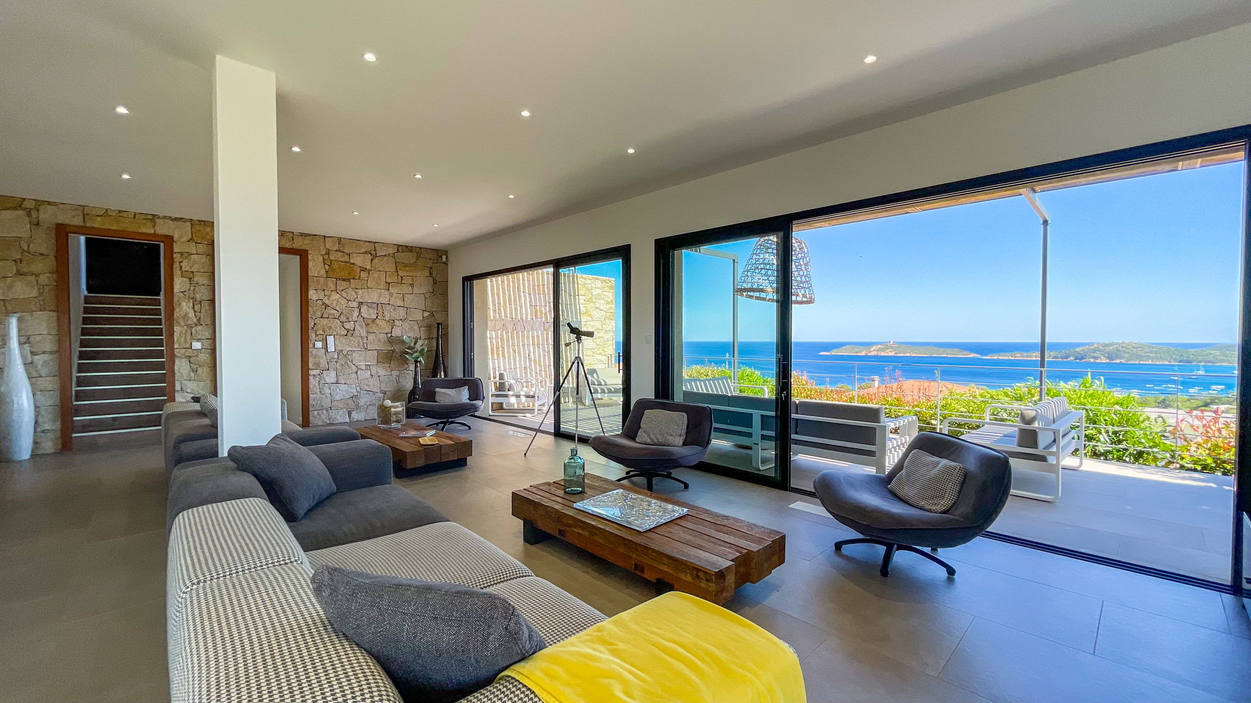 Bright living room with a splendid sea view on the Genoese tower of Pinarello.