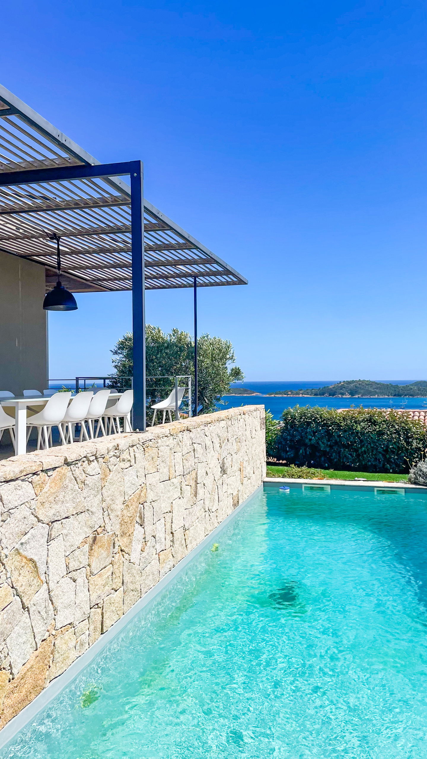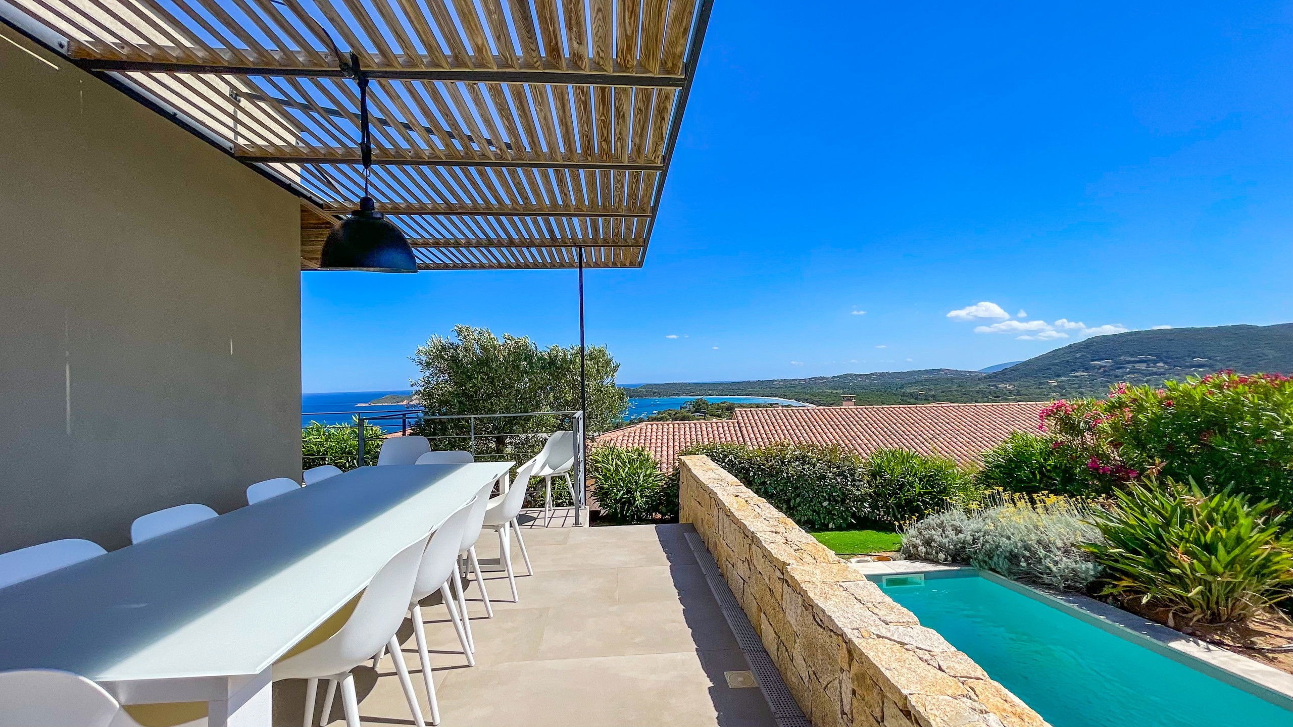 Magnificent villa of character located on the heights of the bay of Pinarello with sea and mountains view.