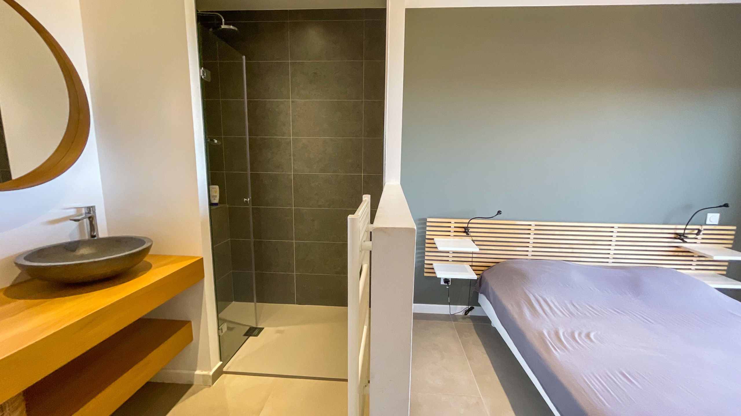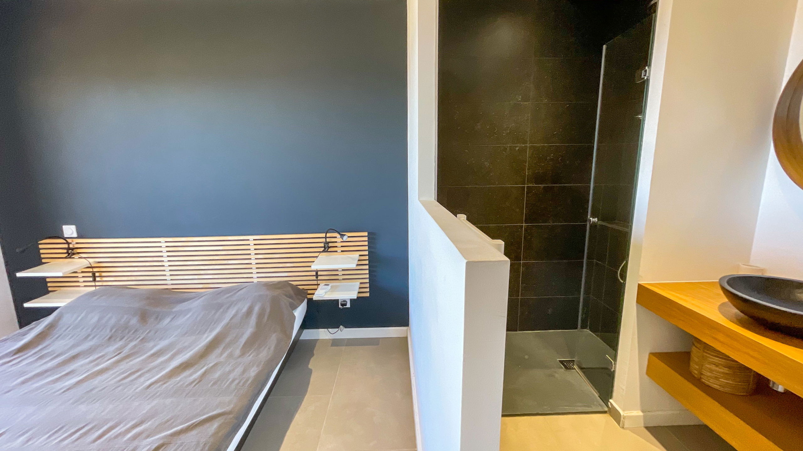 Room 6 : Master suite - Queen Size bed ( 160*200) Located on the upper floor with a very large terrace with sea view. Shower and toilet