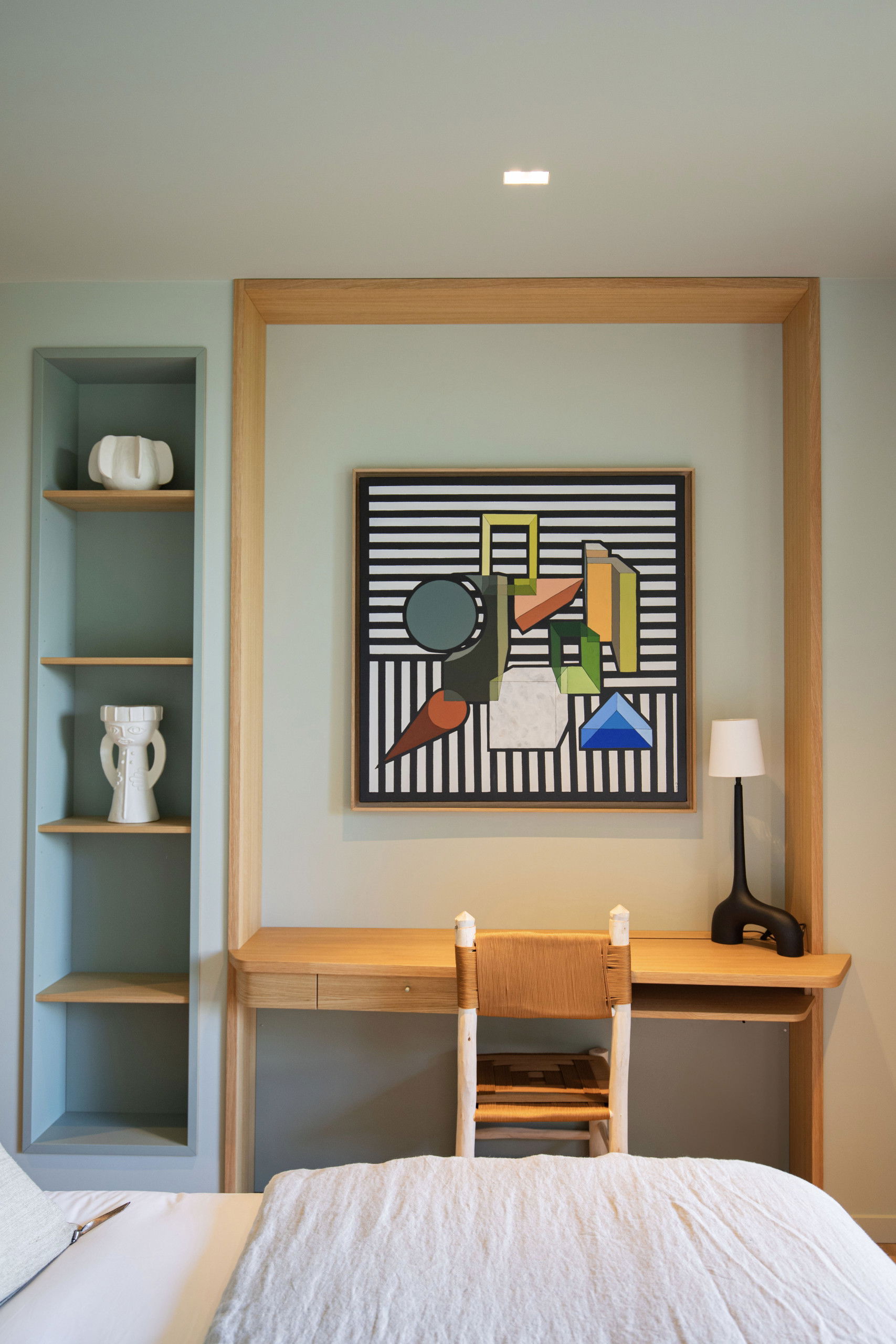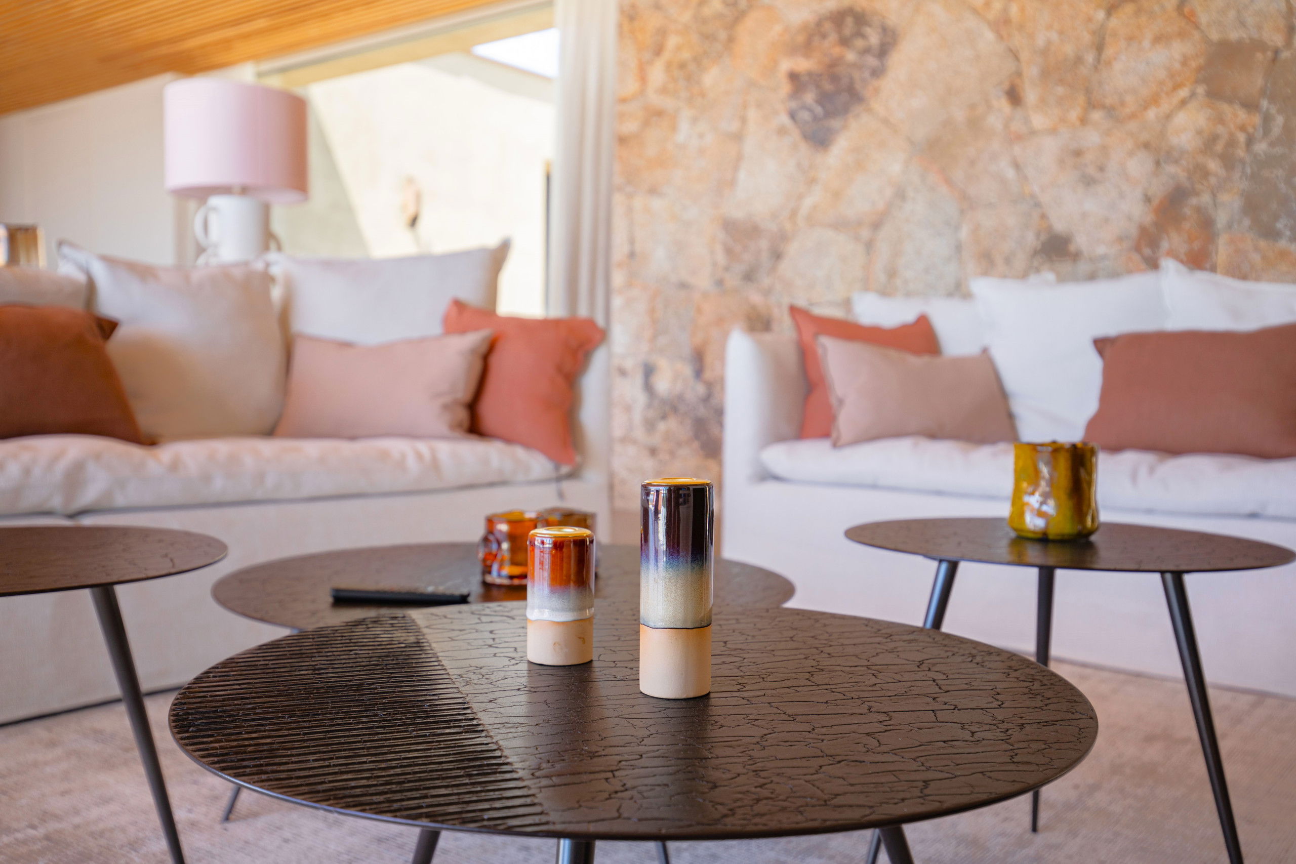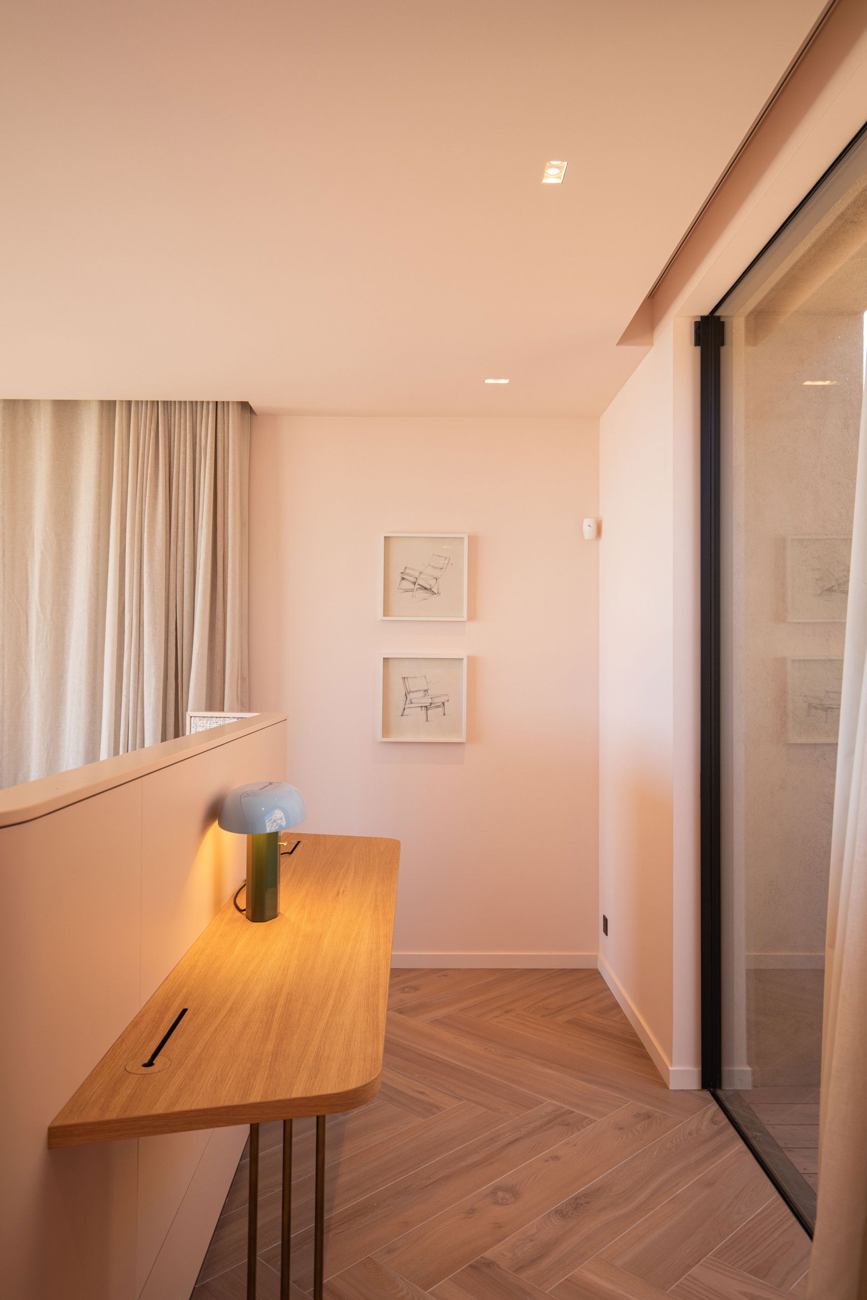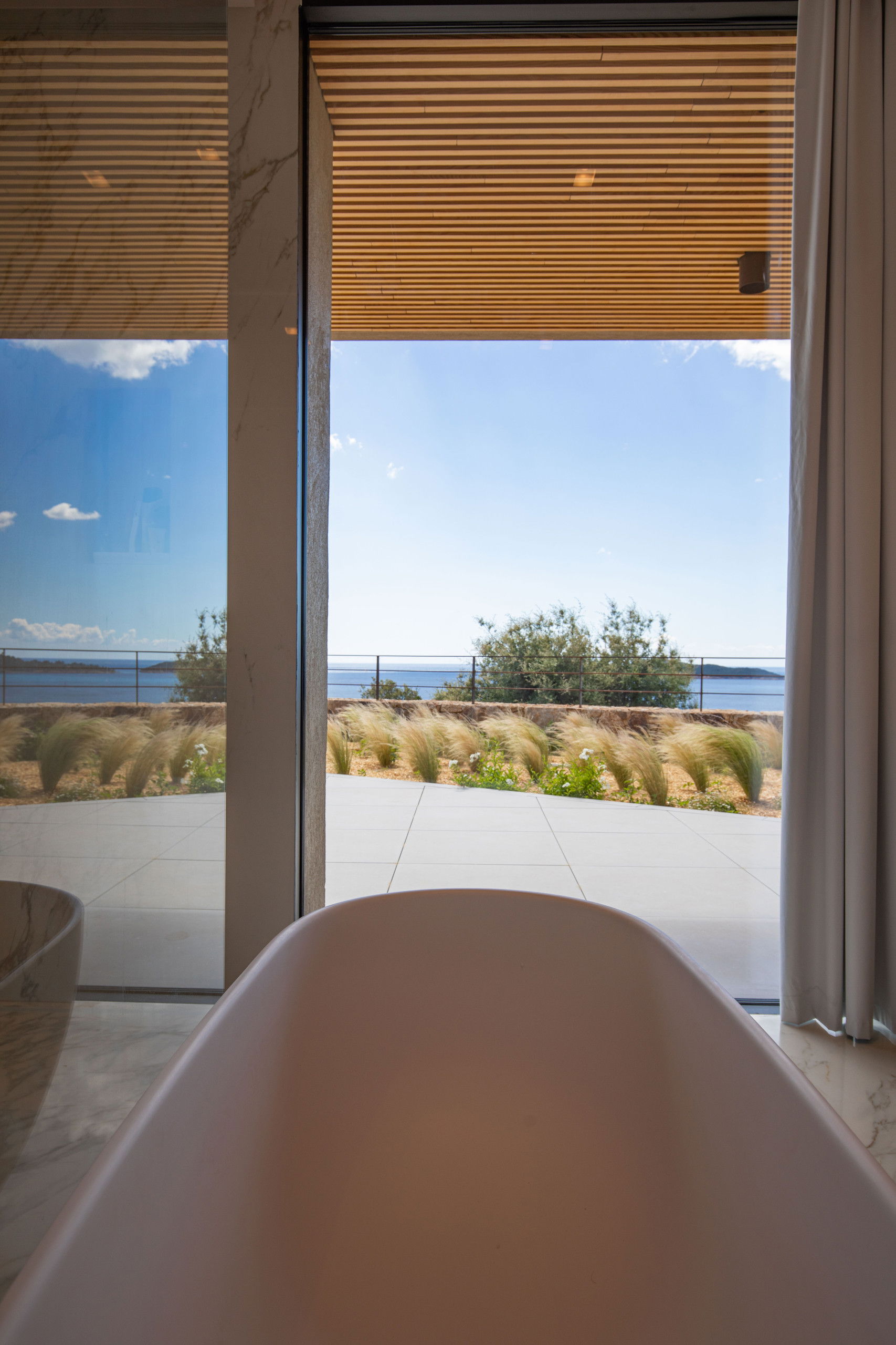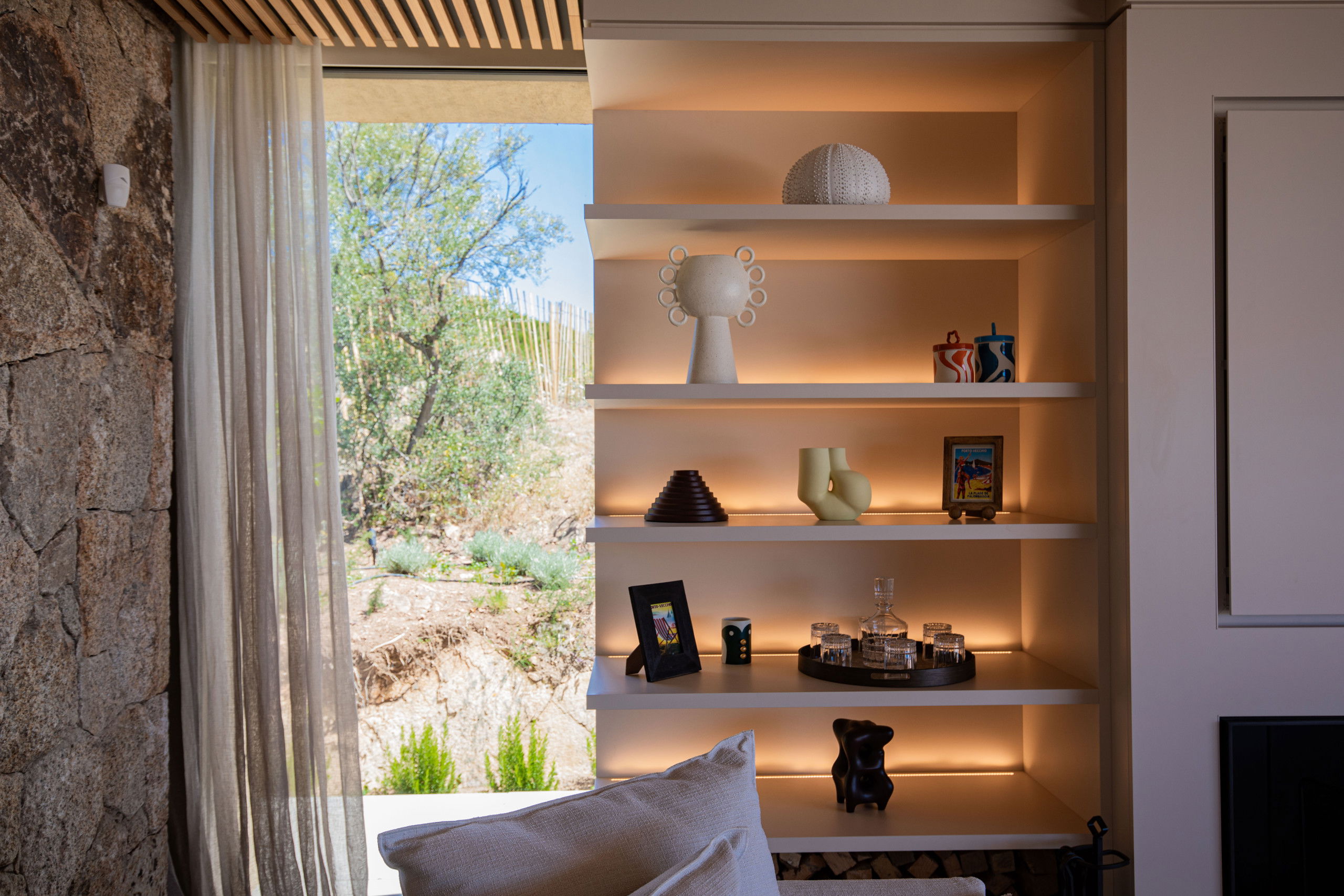 - Relaxation area with sofa, library and TV, opening onto a terrace with sea view.