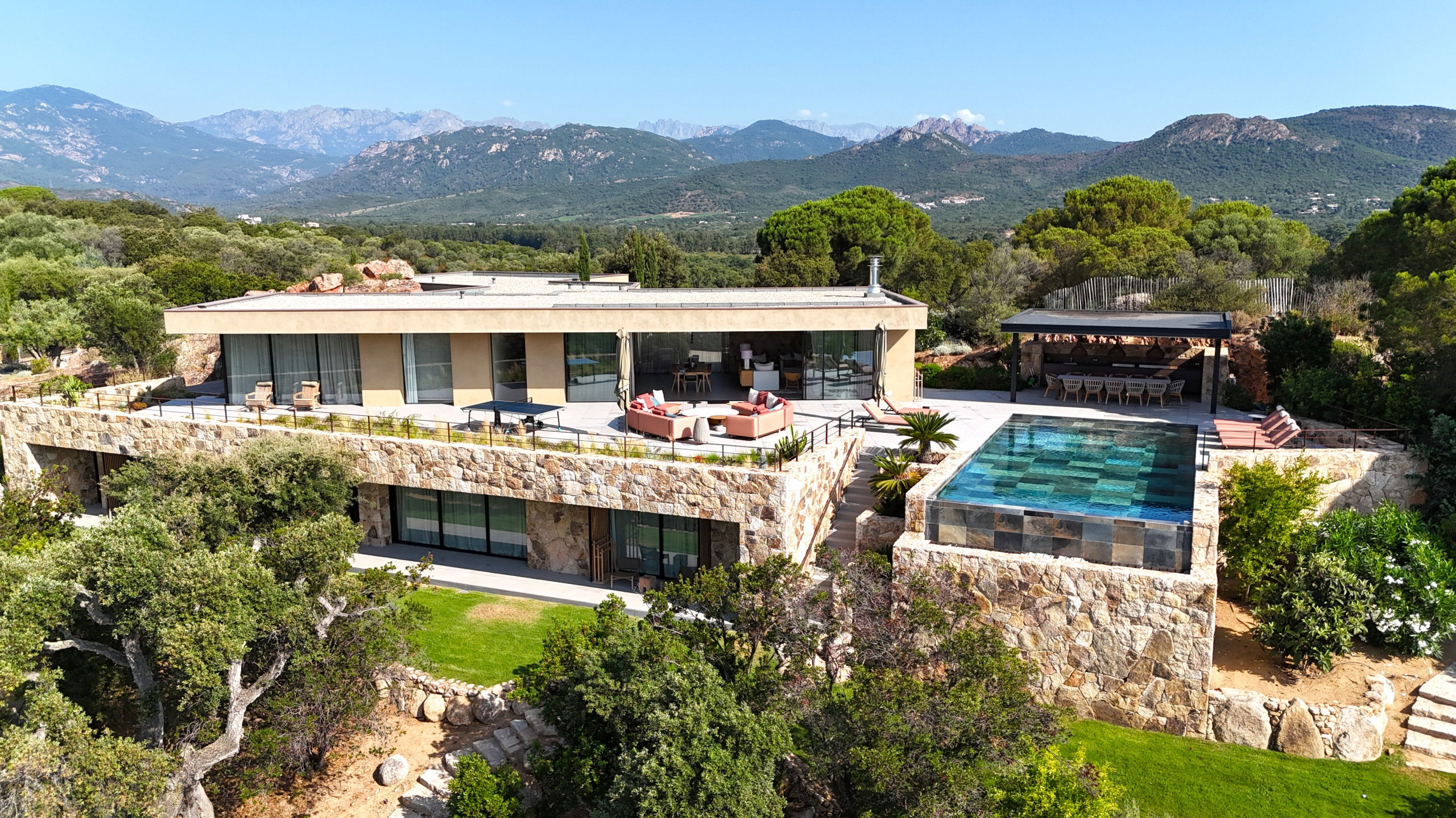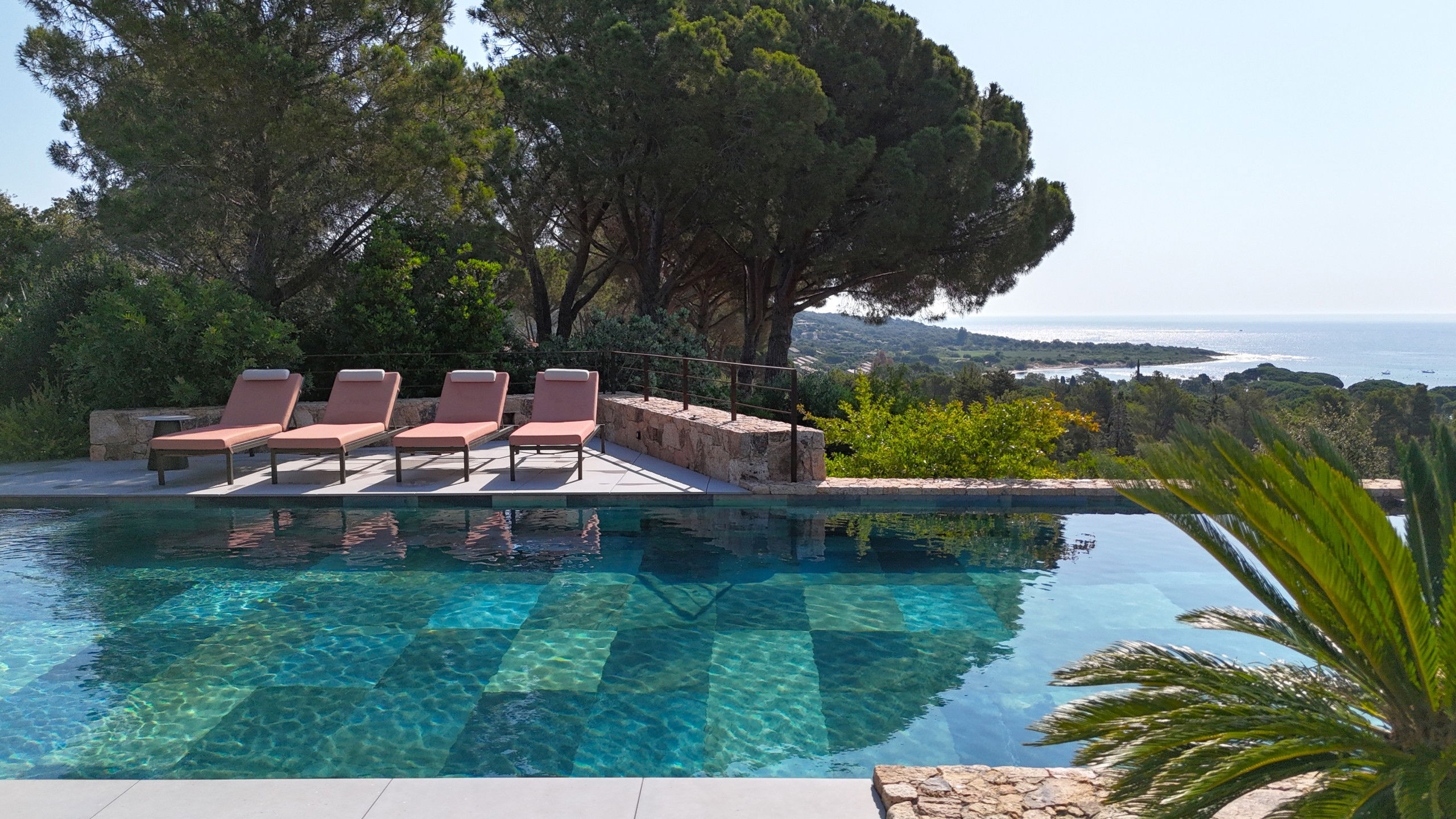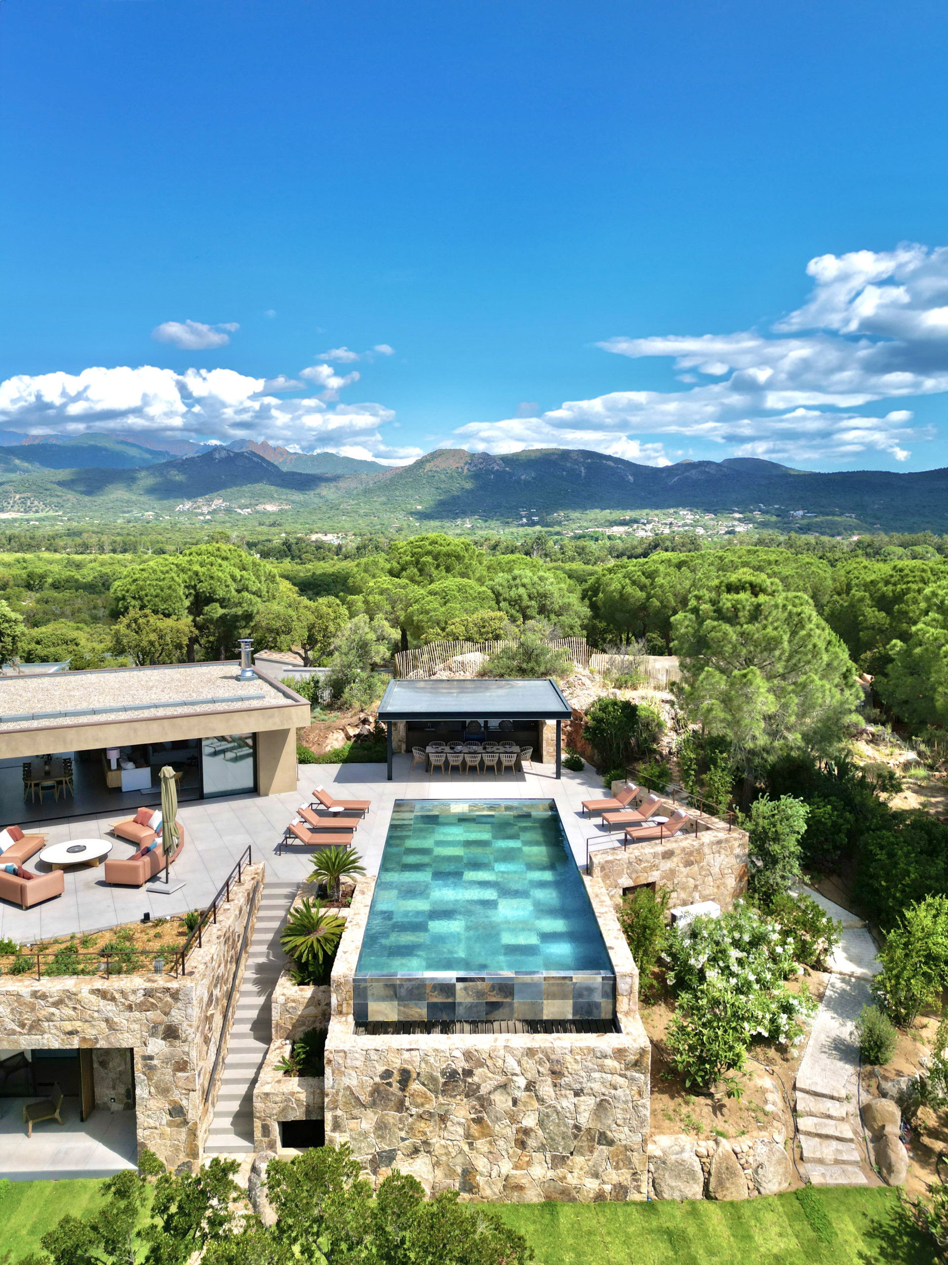 Welcome to this sumptuous 400 m² luxury villa, located in South Corsica, 750 m from Caramontinu beach near Pinarello in Sainte Lucie de Porto-Vecchio.