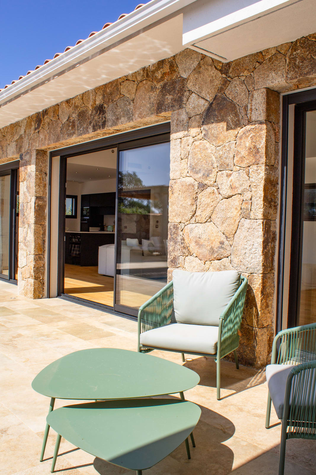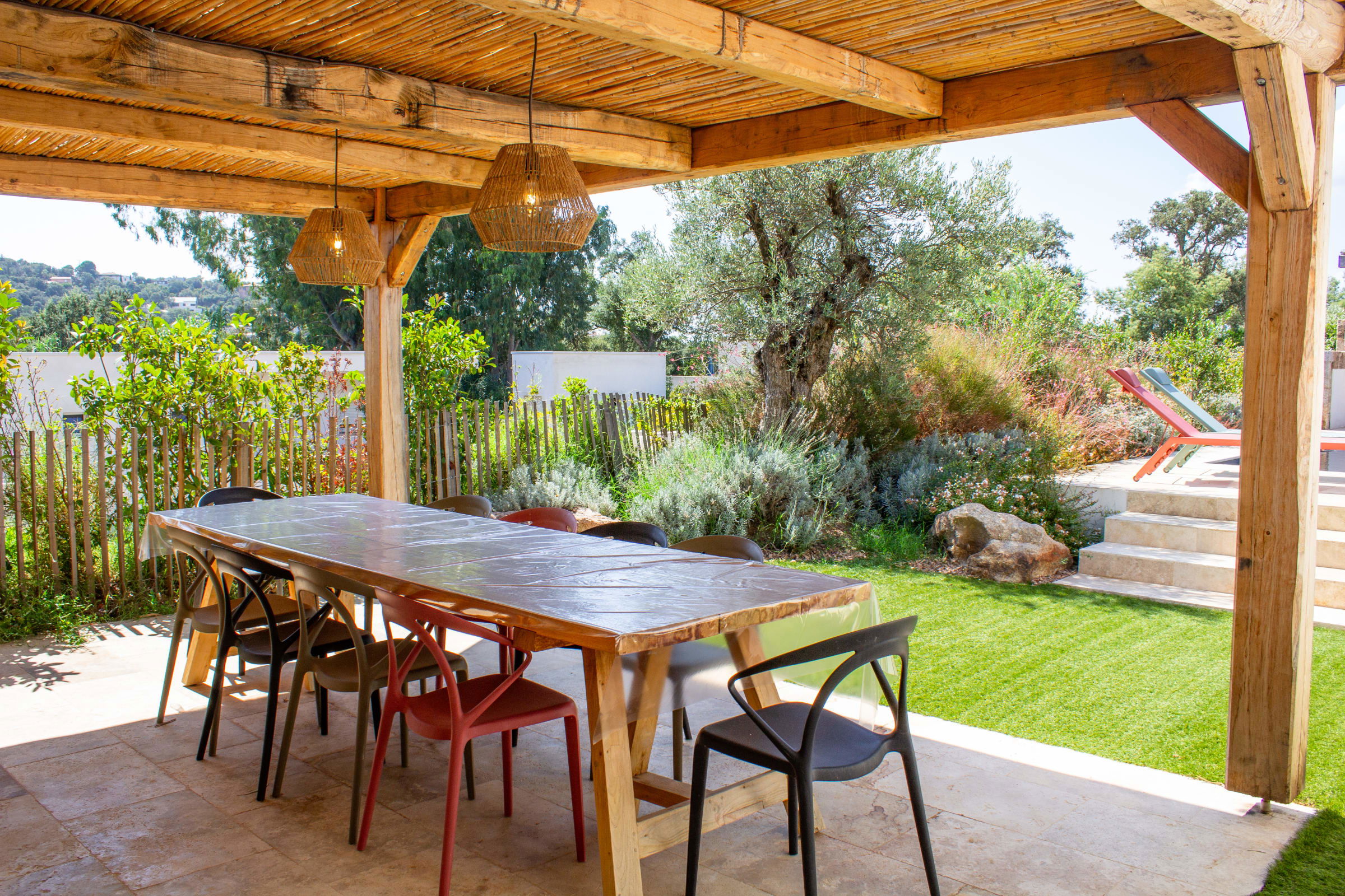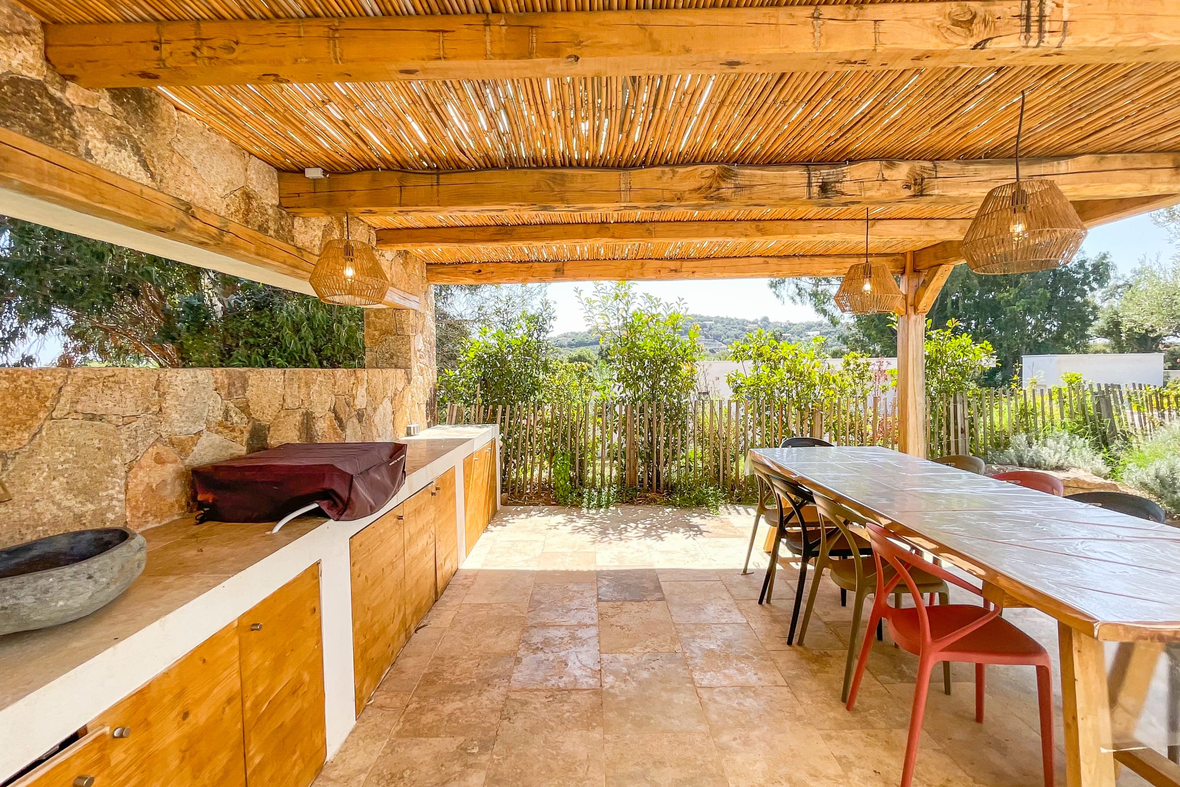 The villa has a large furnished terrace, fully equipped with an outdoor living room, a large dining table, and a gas plancha, is ideal for your outdoor meals.