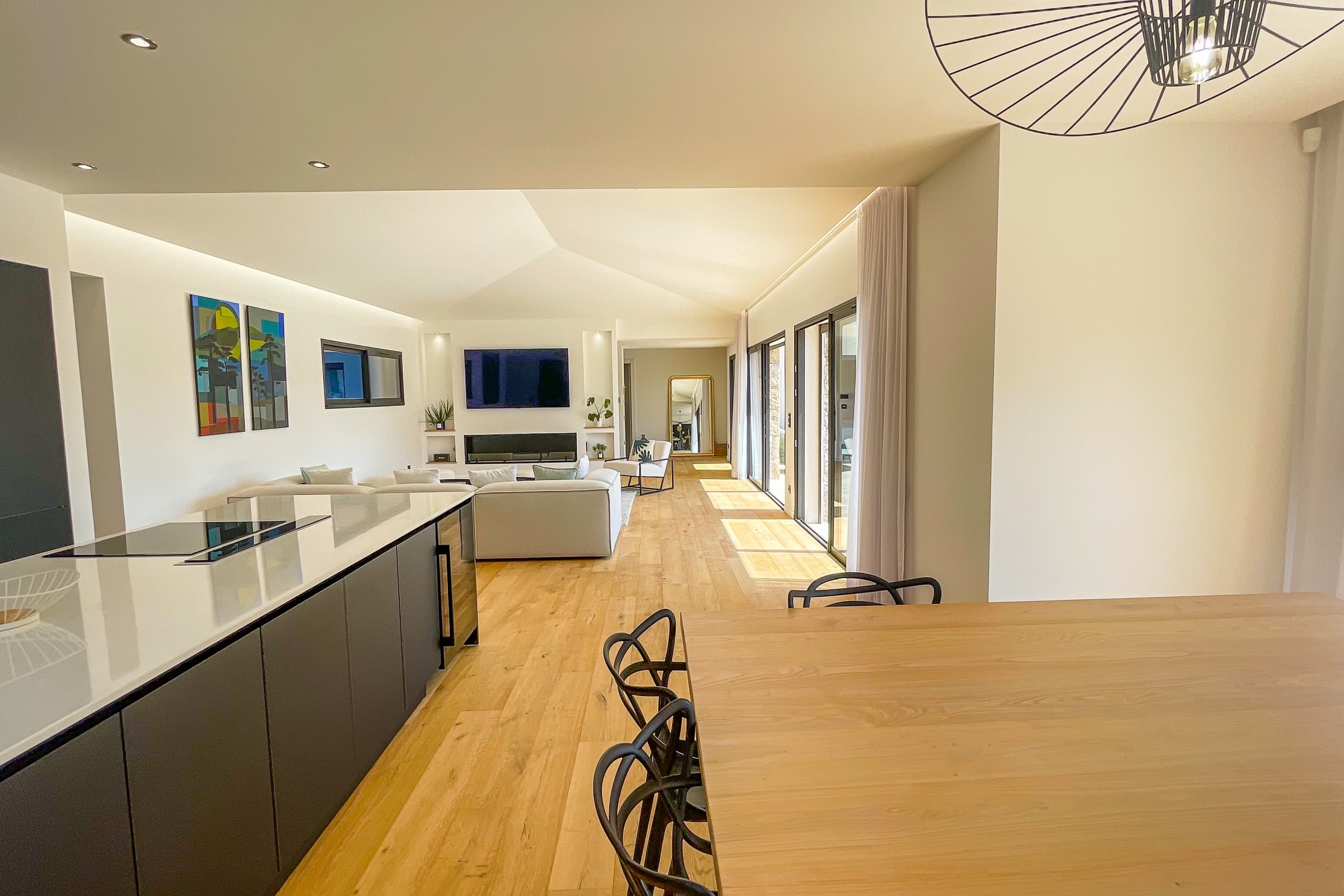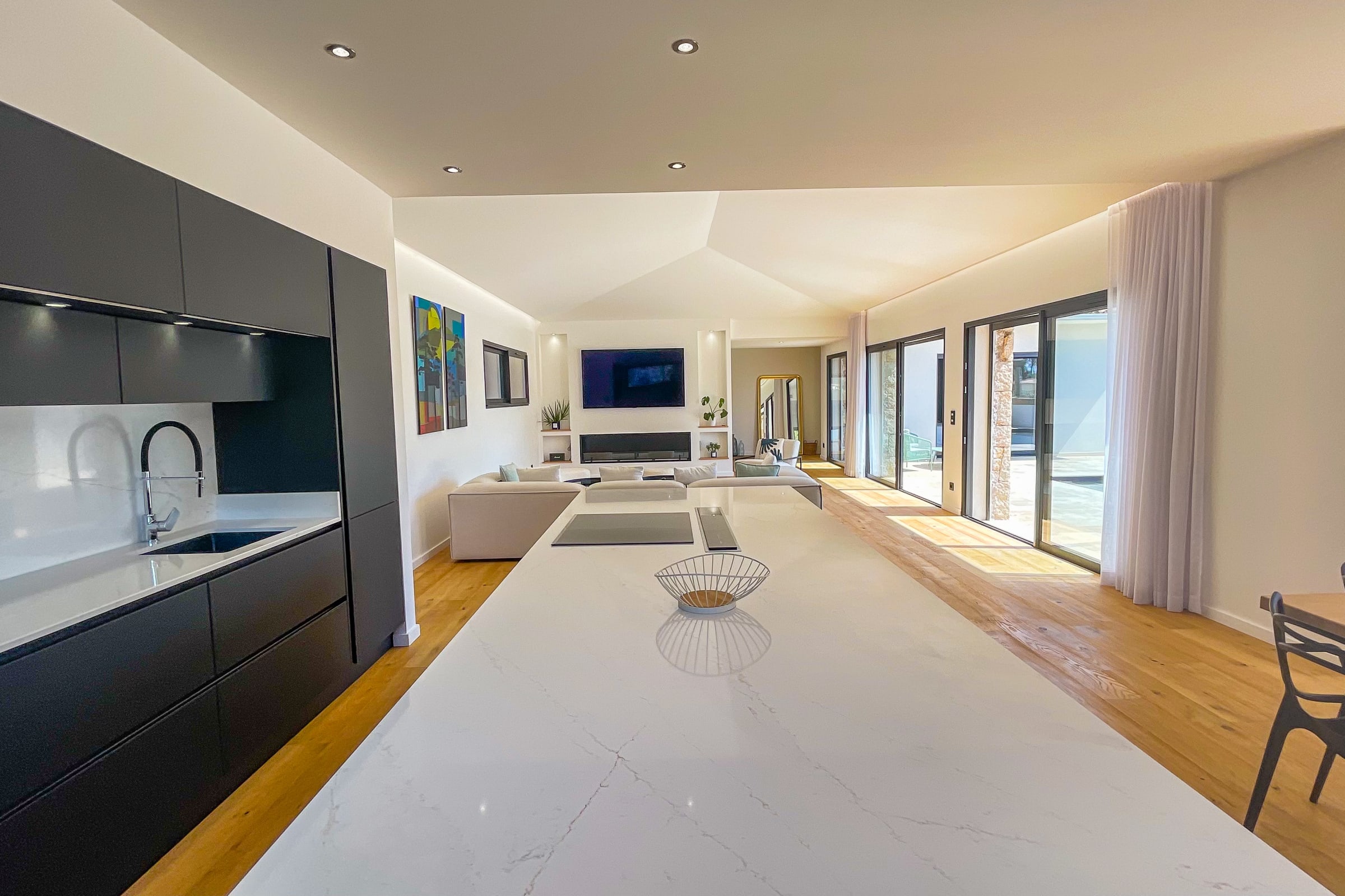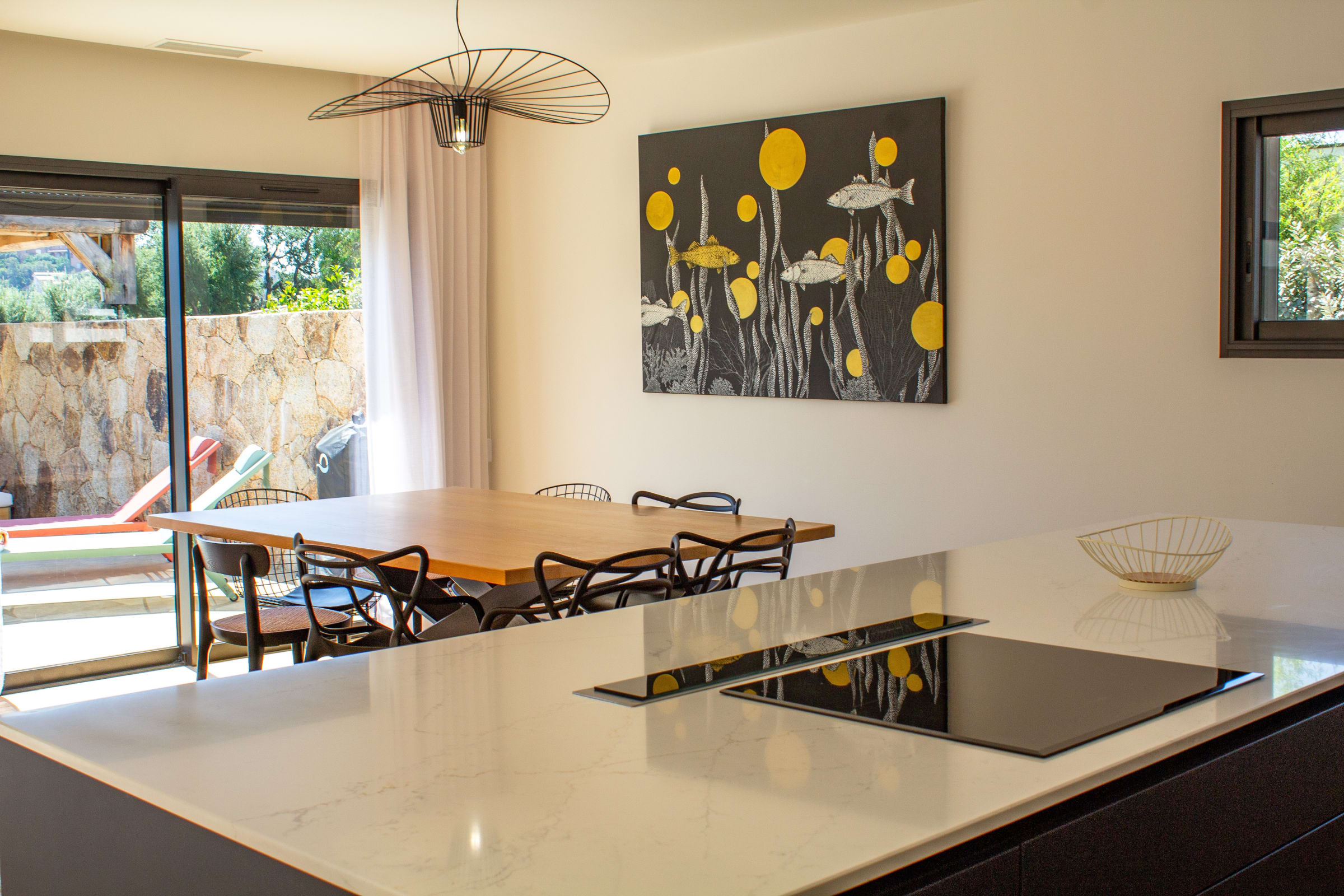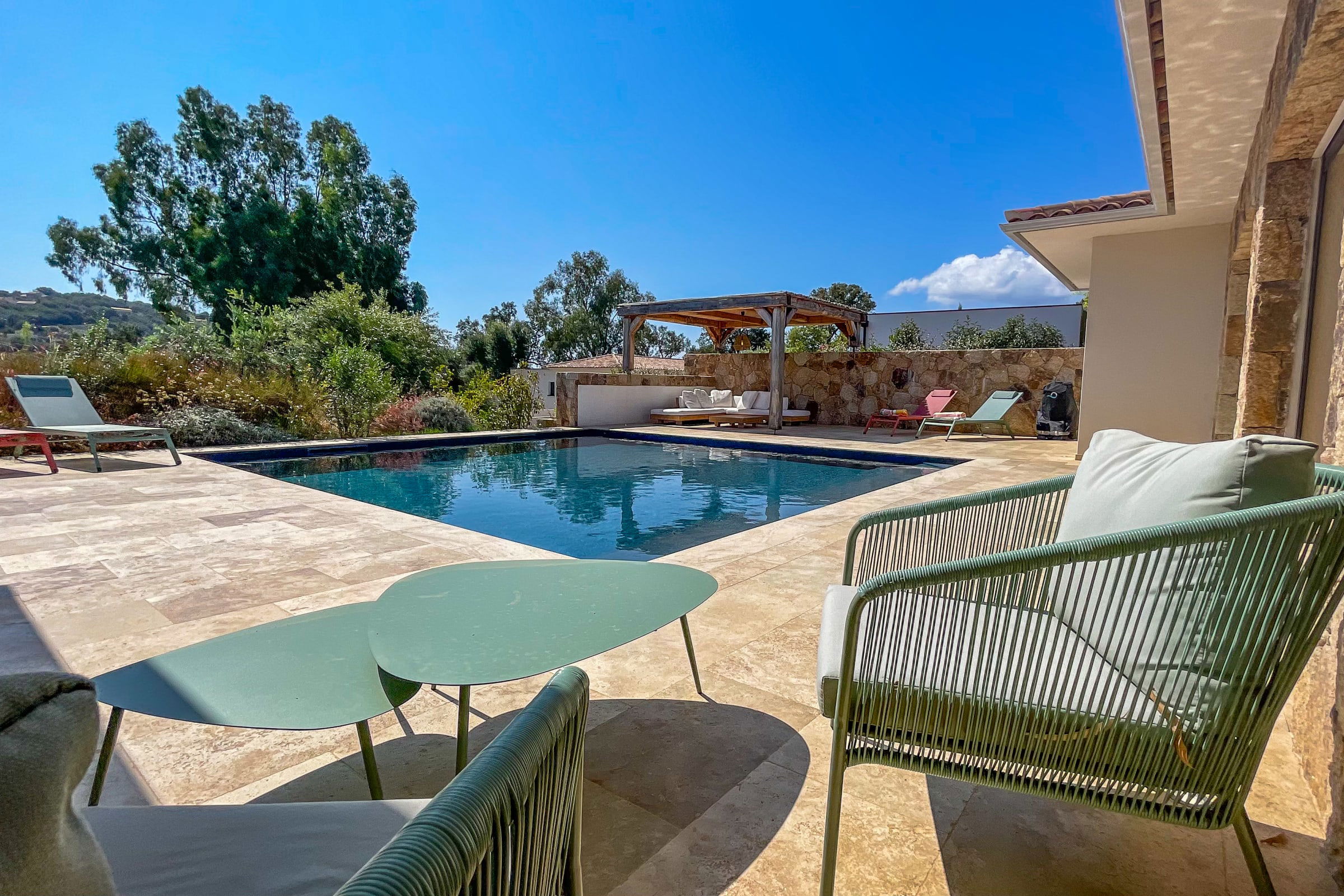 The villa has a large furnished terrace, fully equipped with an outdoor living room, a large dining table, and a gas plancha, is ideal for your outdoor meals.