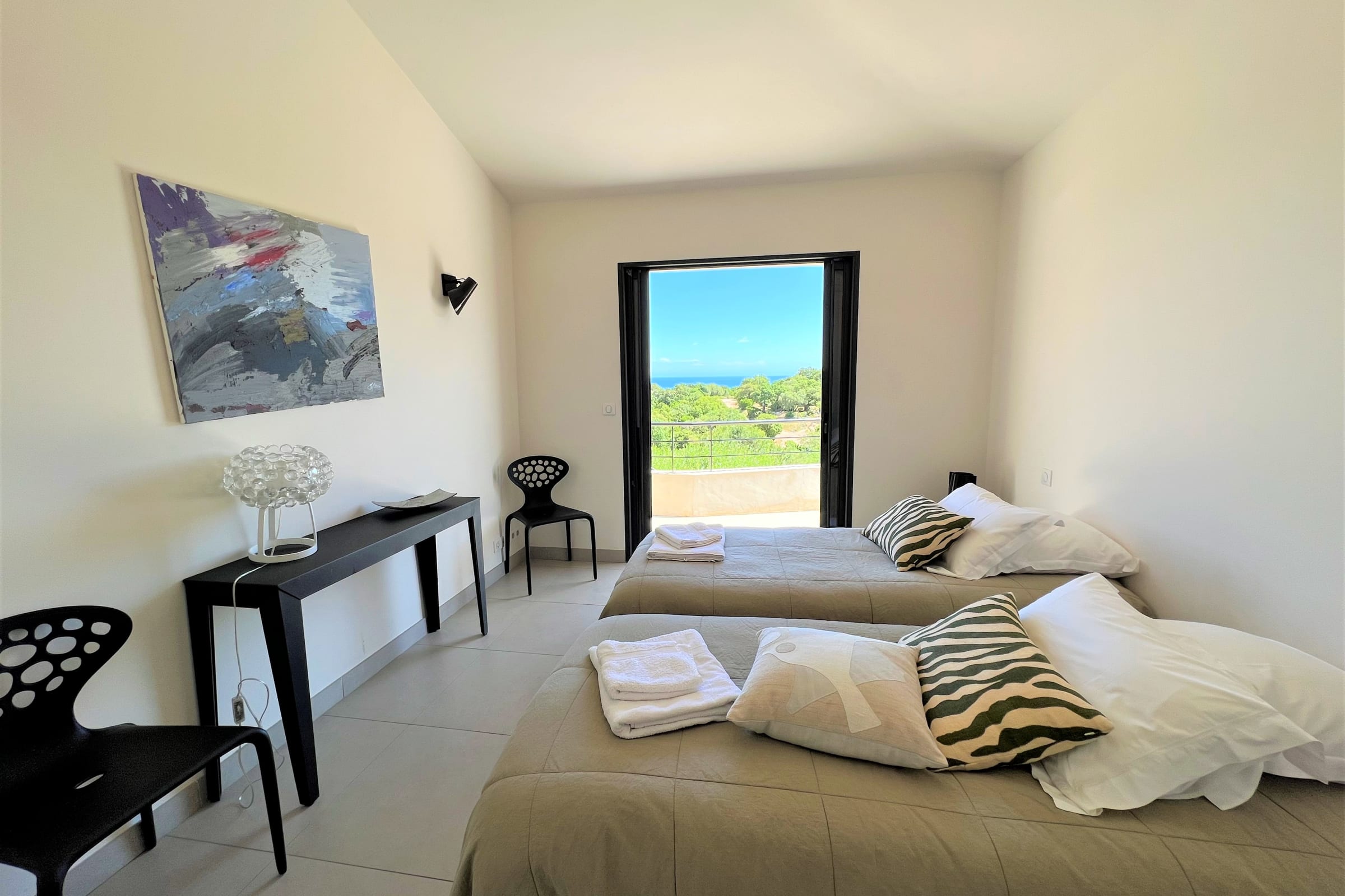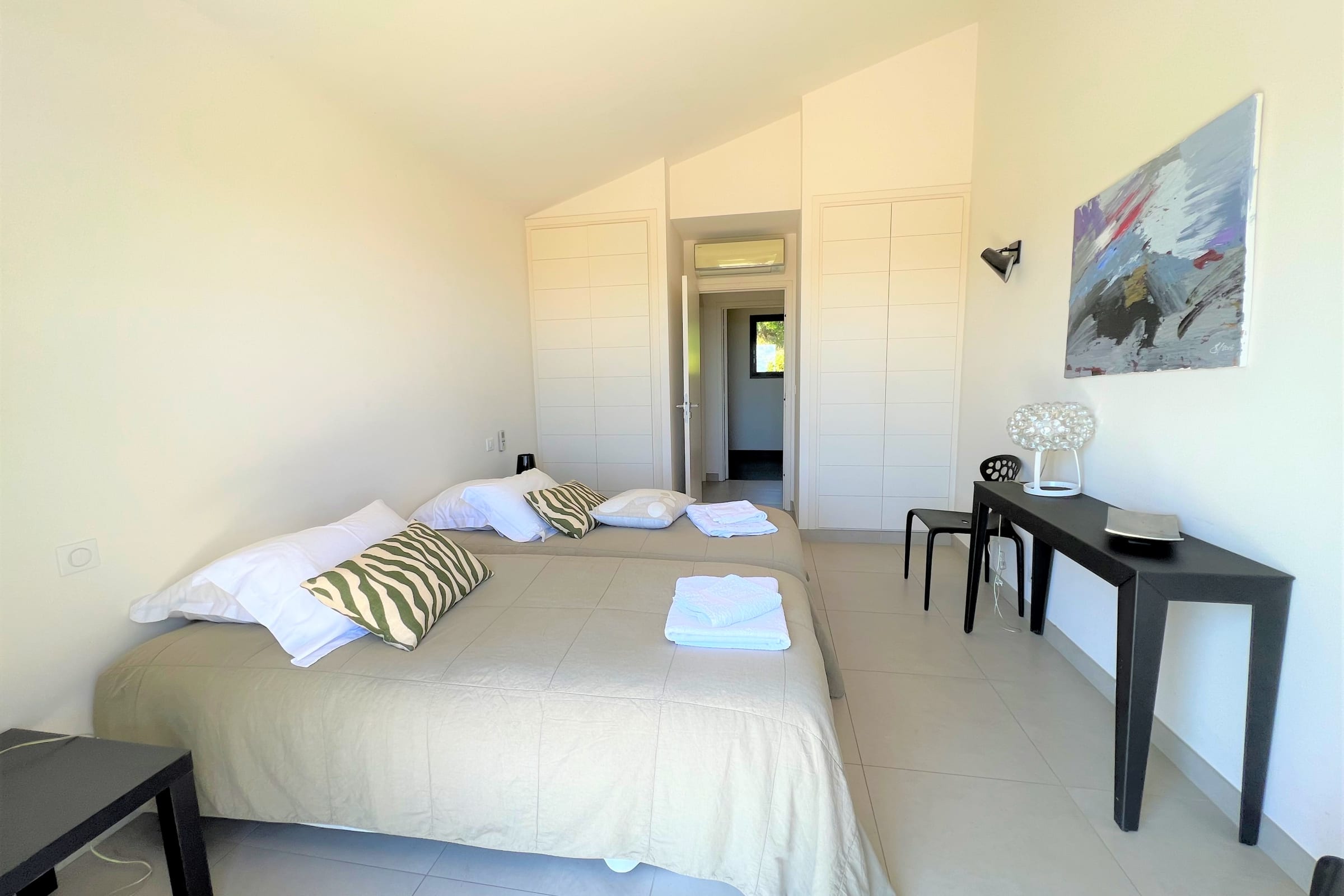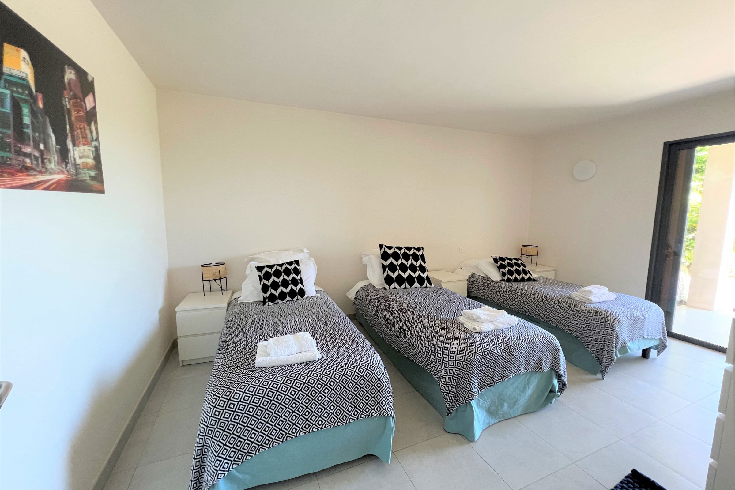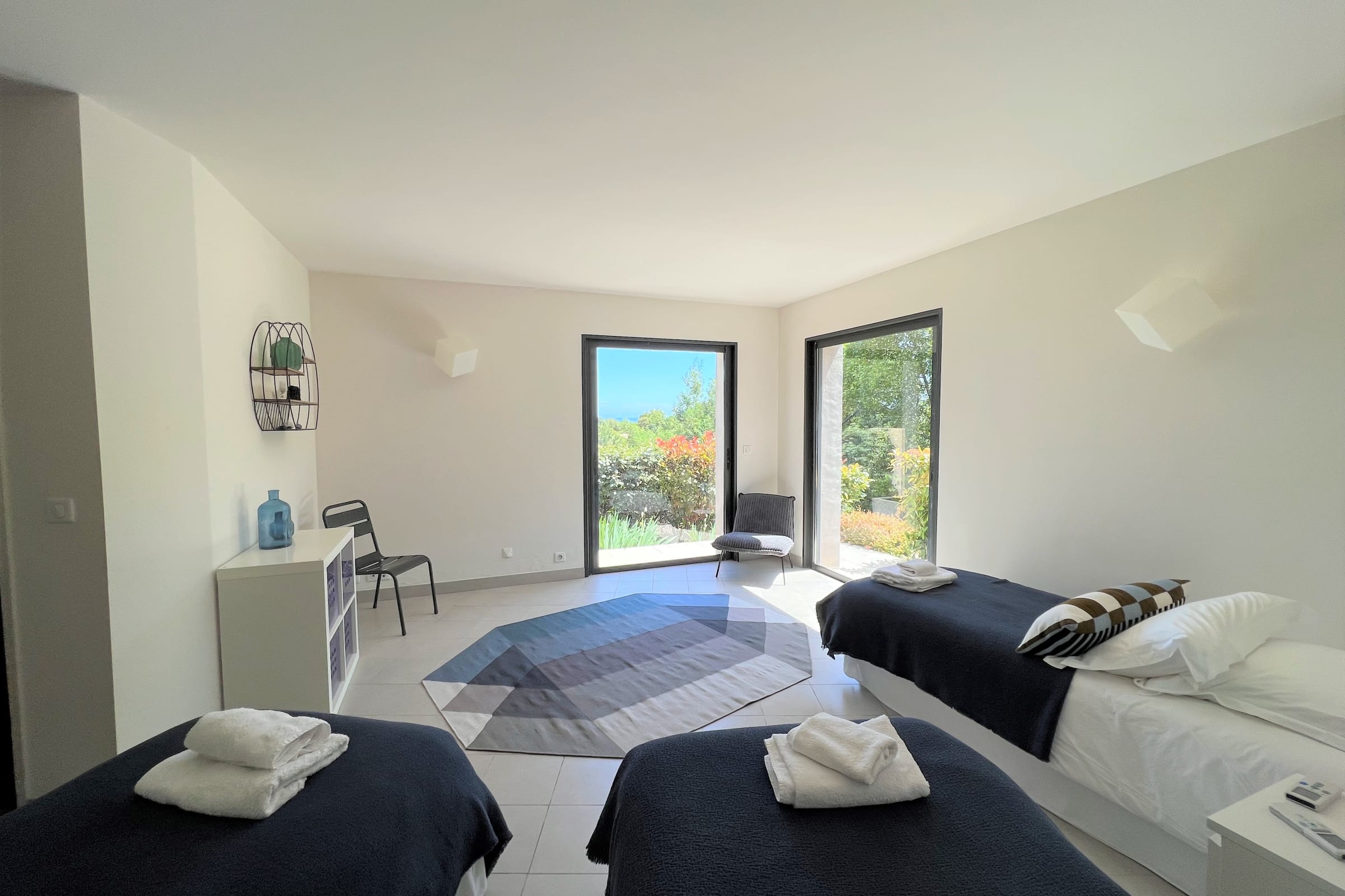 Bedroom 2 – 2 single beds 90 * 200 (possibility of combining the two beds to form a 180 * 200). Sea view and terrace access.