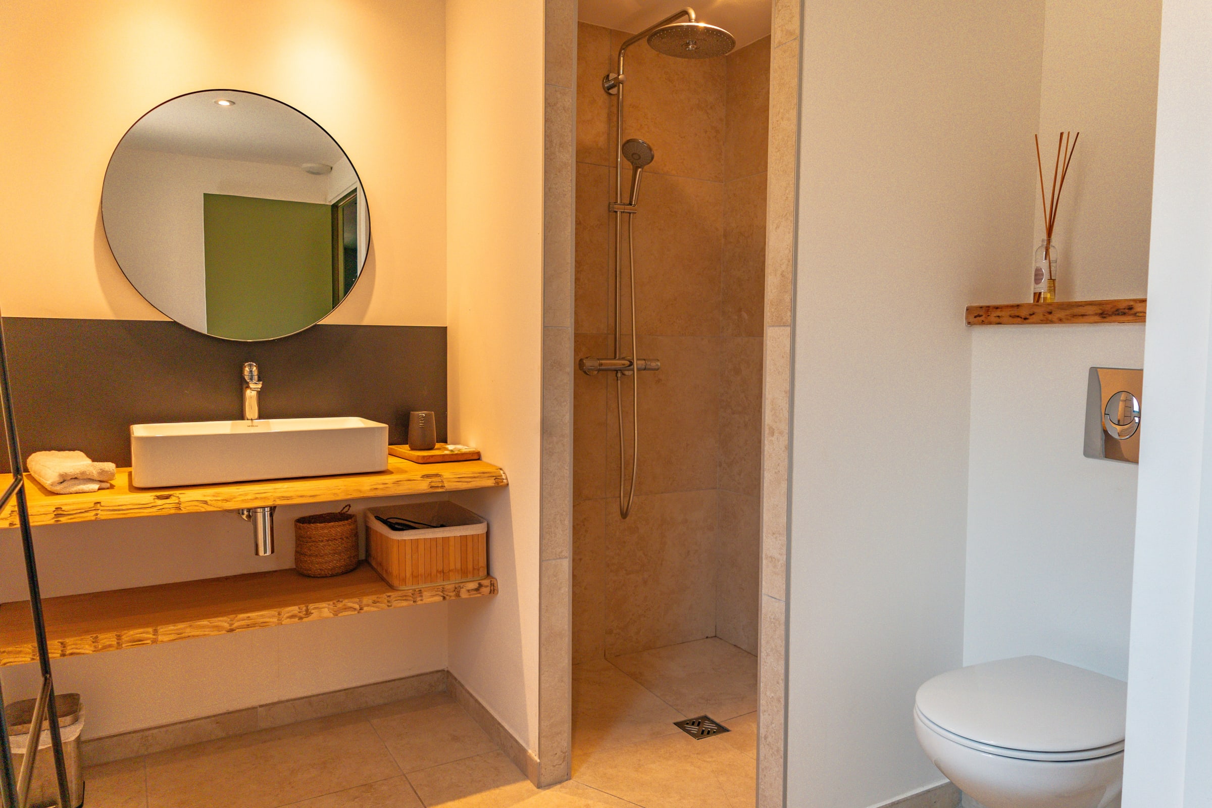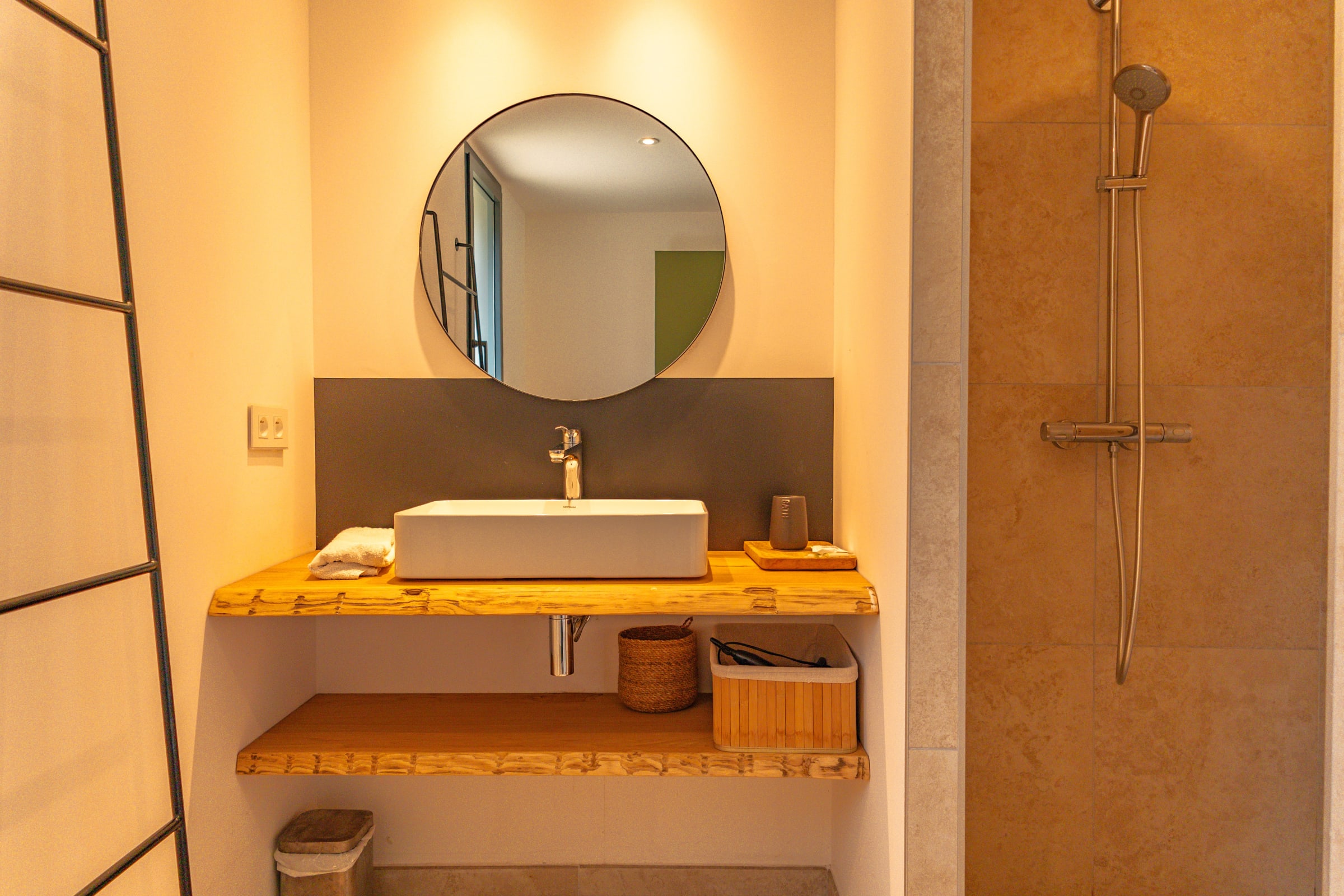 Bedroom 1: master suite with Queen Size bed (160 * 200) with shower room, TV, access to terrace and swimming pool.
