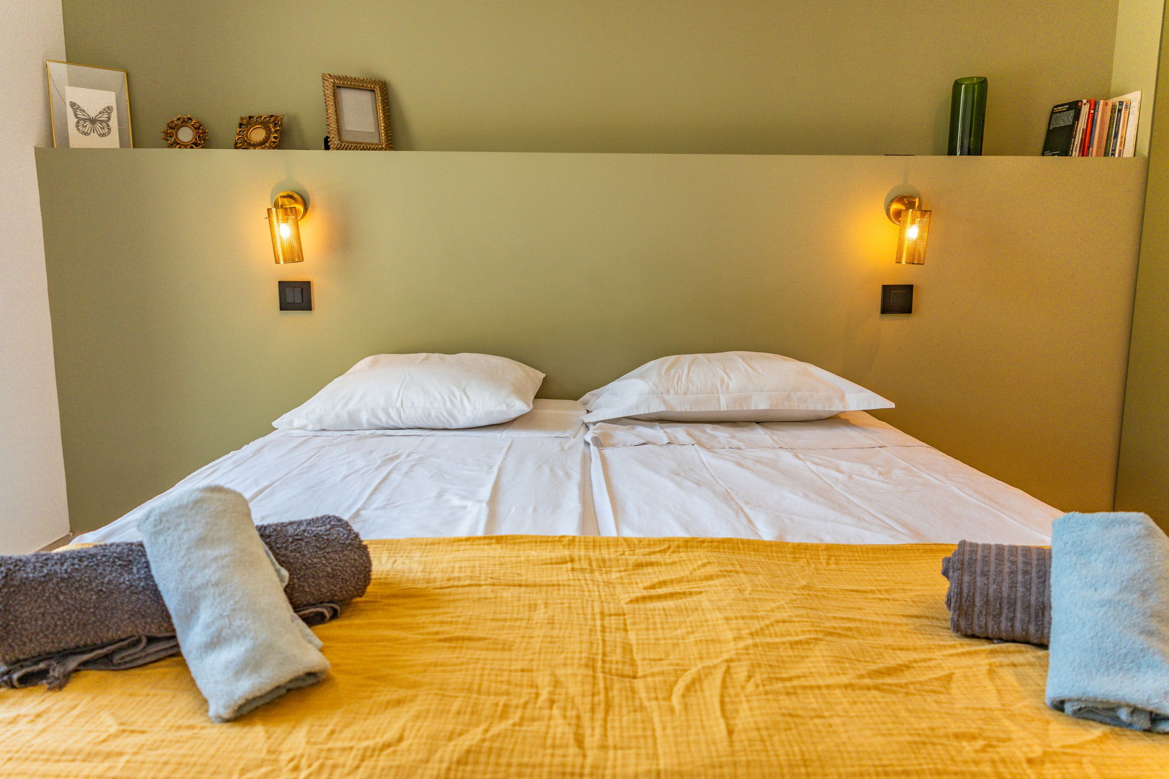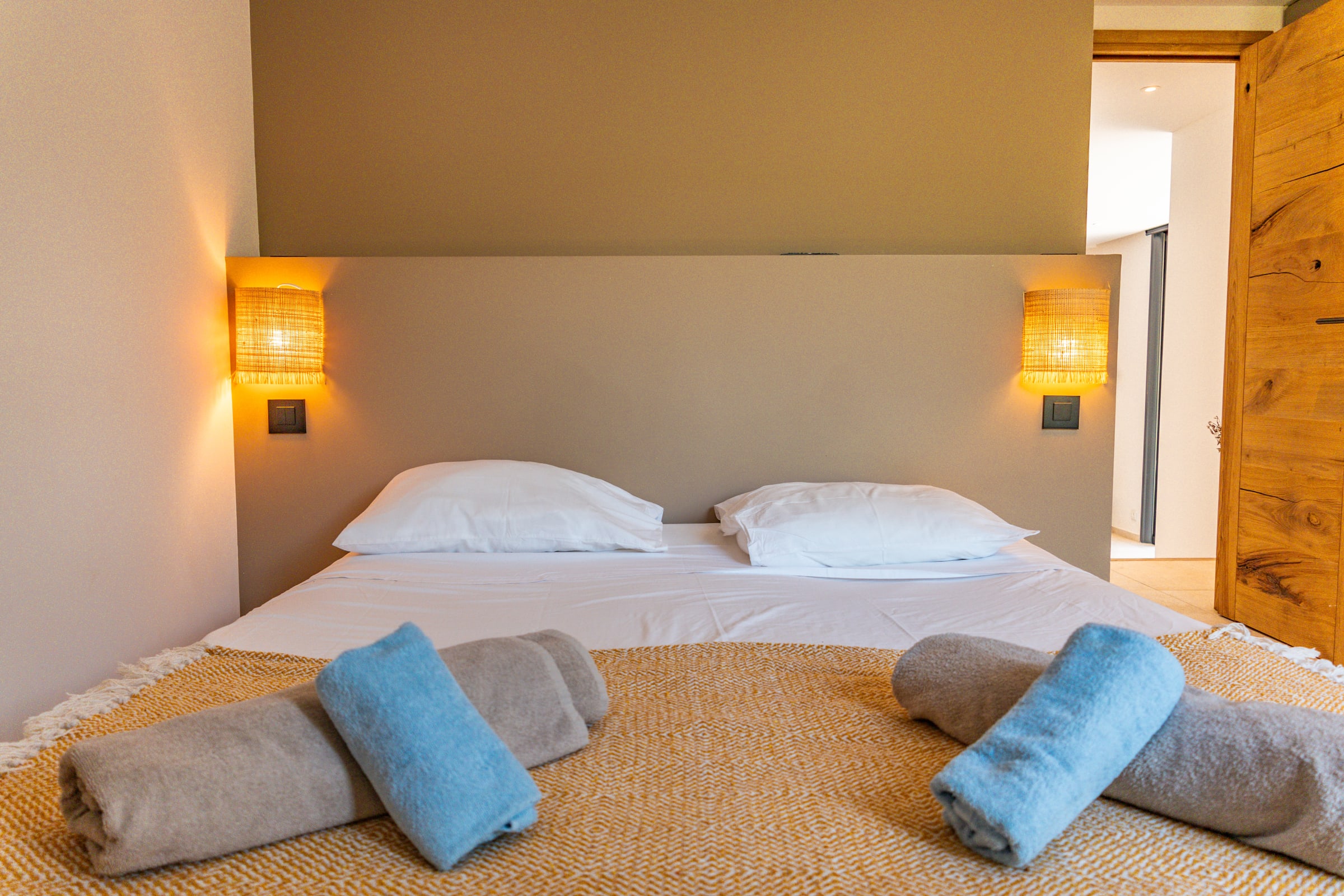 Bedroom 4: Queen Size bed (160 * 200) with access to terrace and swimming pool.